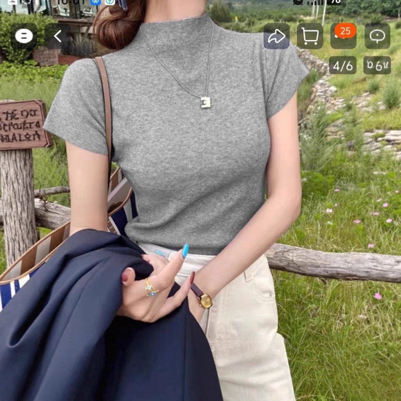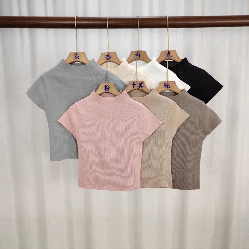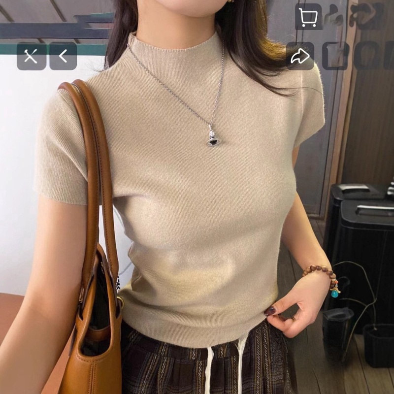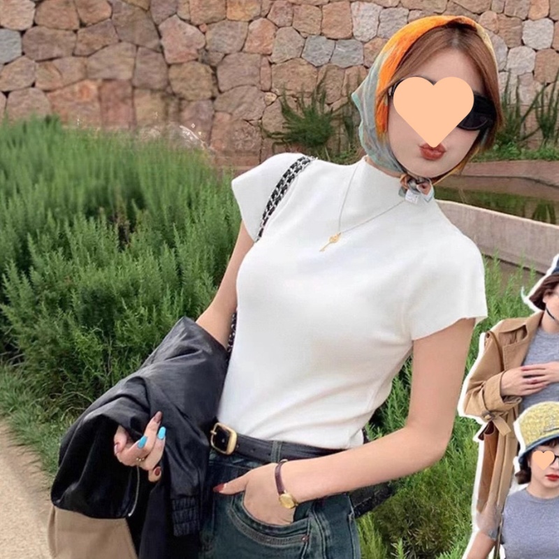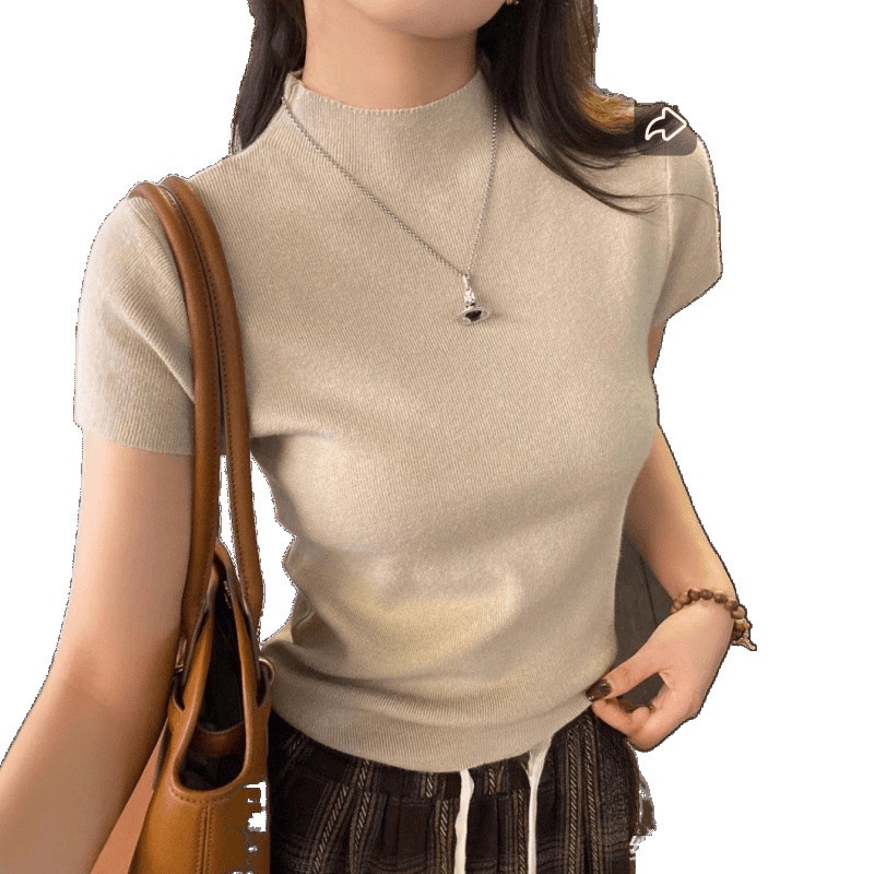 2025新款打底衫内搭T恤超好看修身独特漂亮半高领针织短袖上衣潮