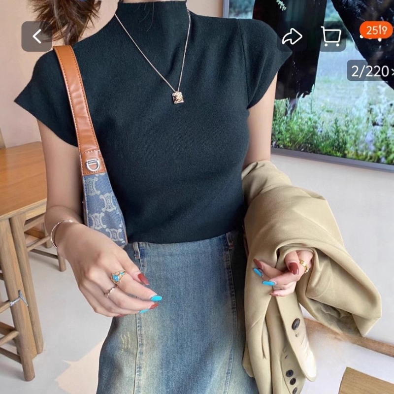 新款复古半高领修身针织衫女无袖百搭打底背心上衣