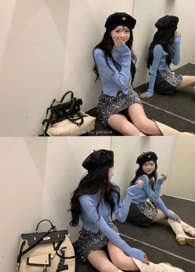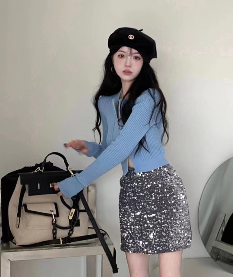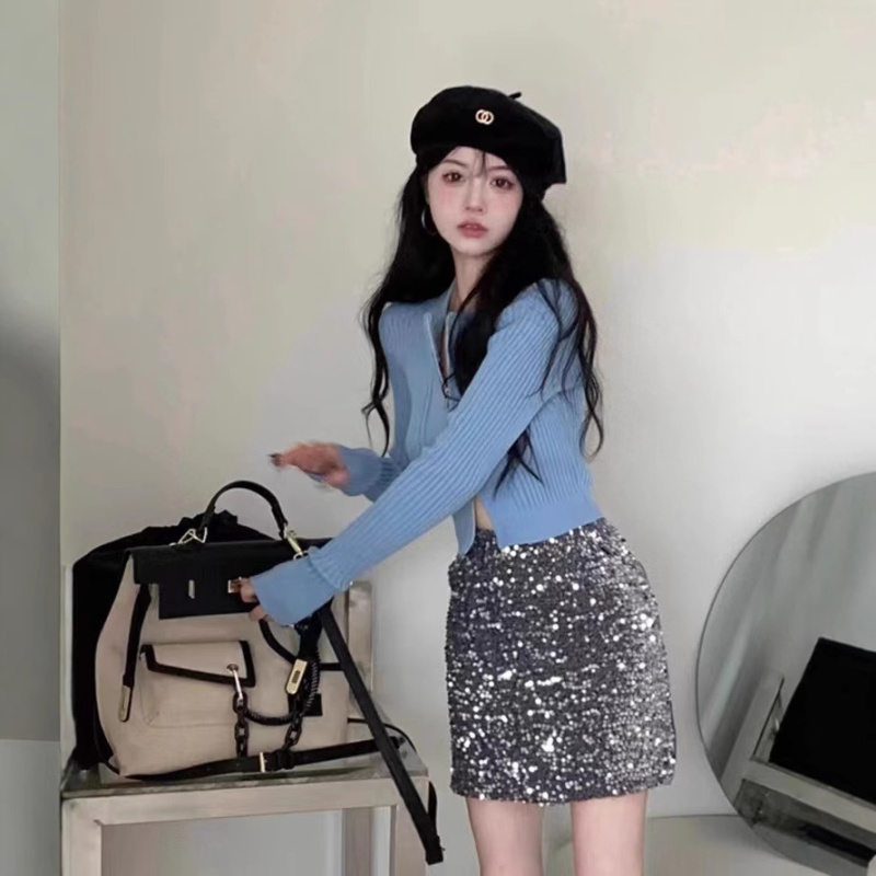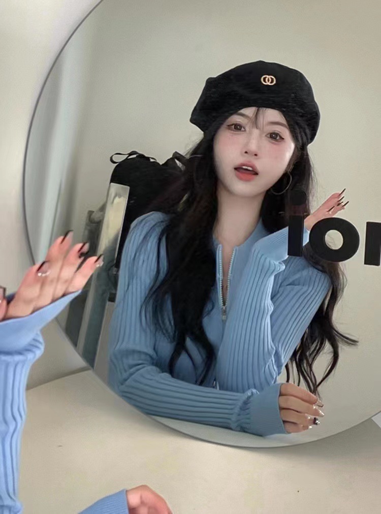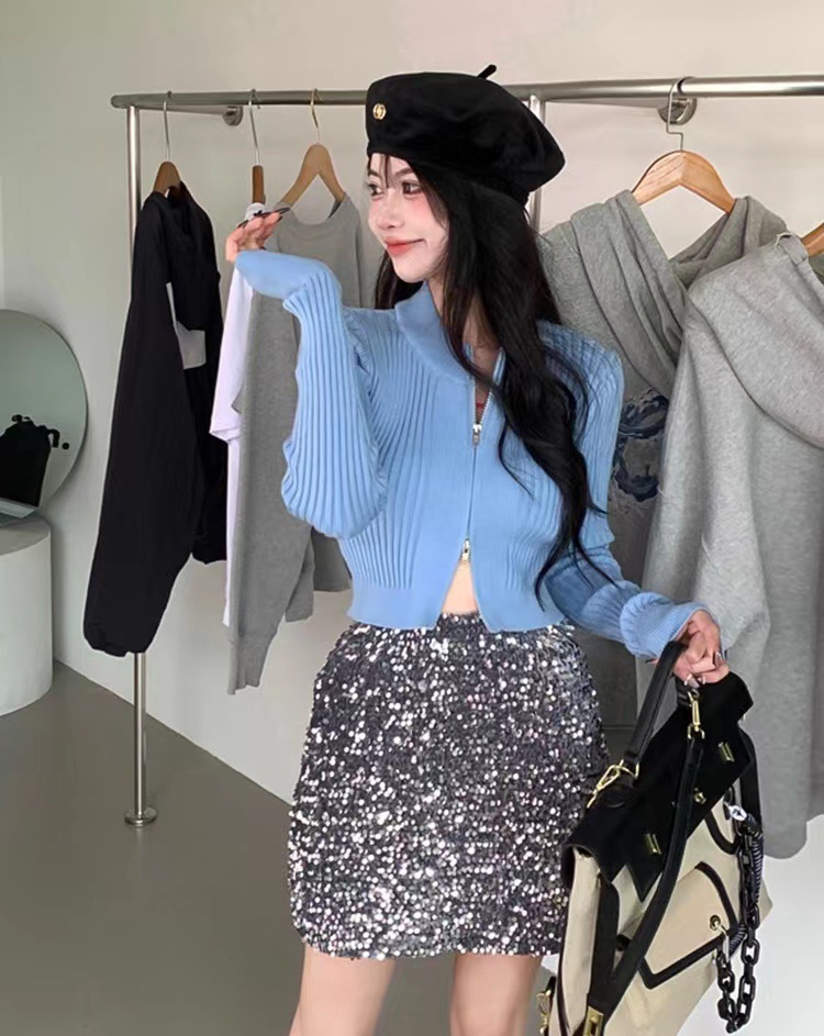 时尚辣妹修身短款长袖针织衫春秋季2024新款显瘦拉链开衫上衣女潮
