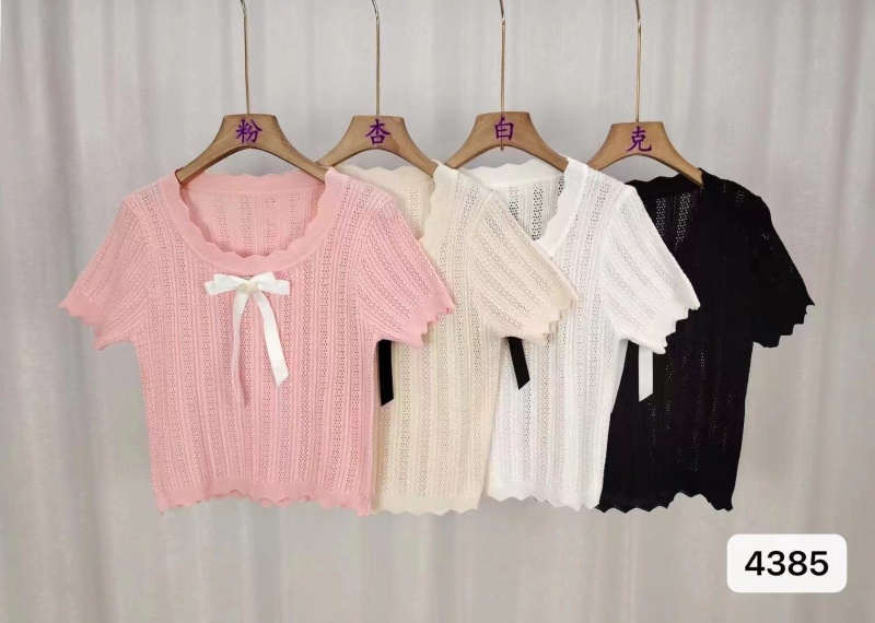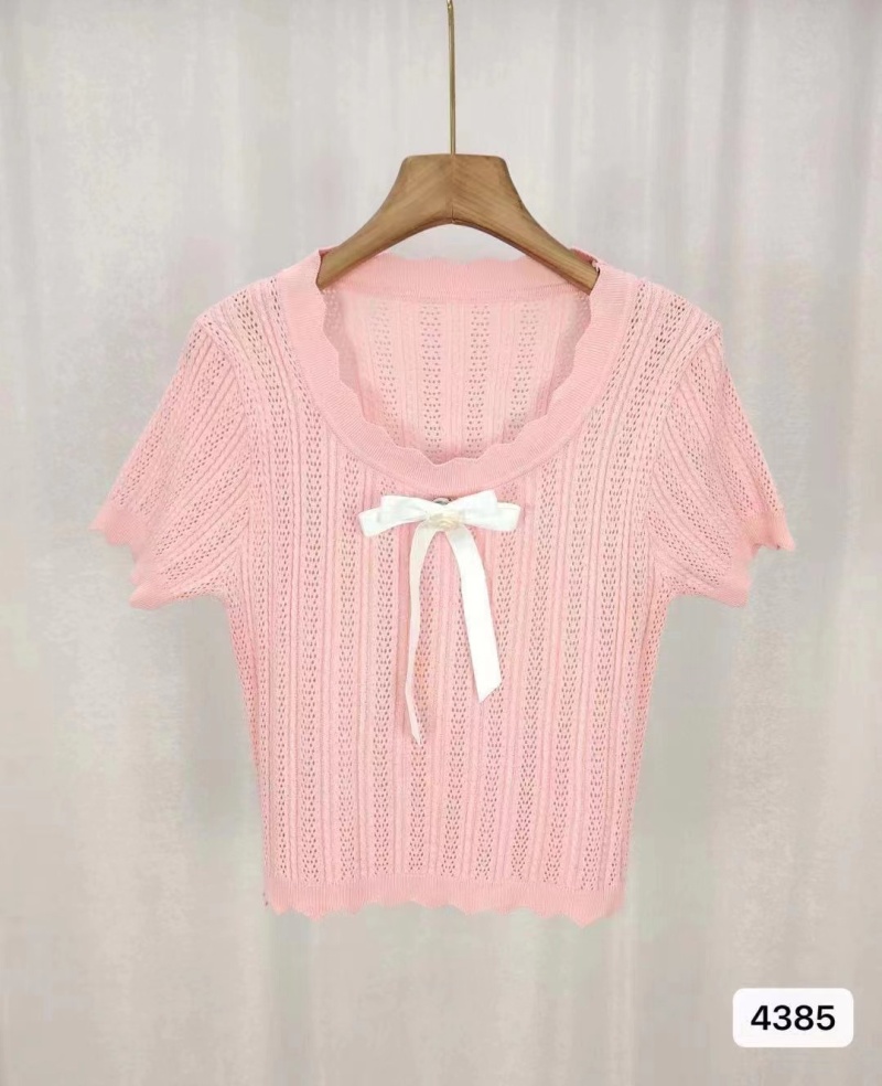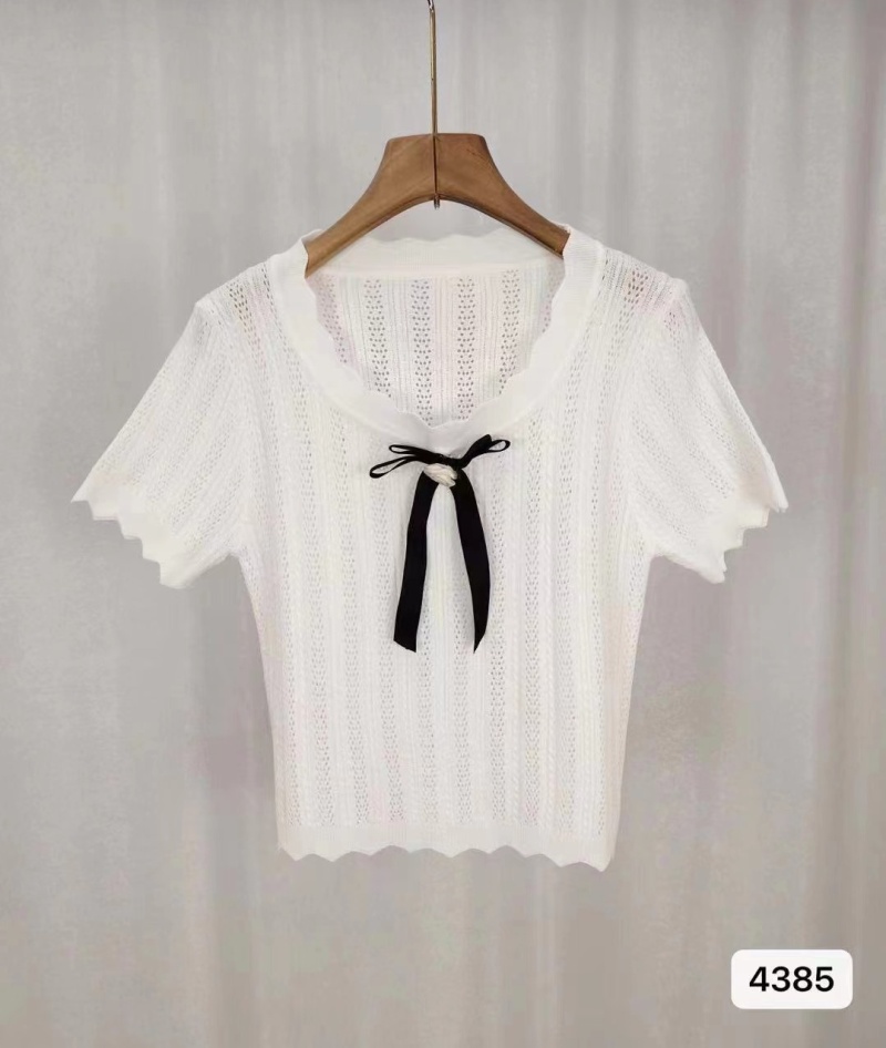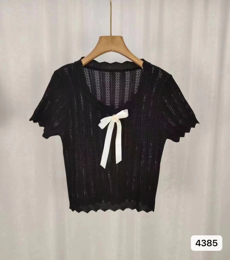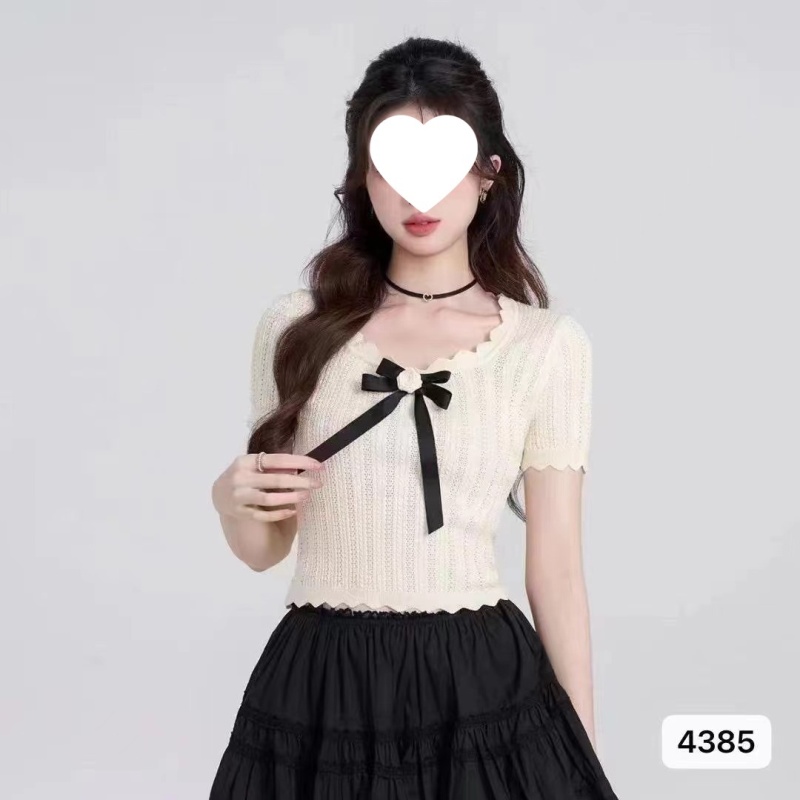 2024夏季新款纯欲甜美风蝴蝶结小众百搭镂空针织短袖短款上衣女潮