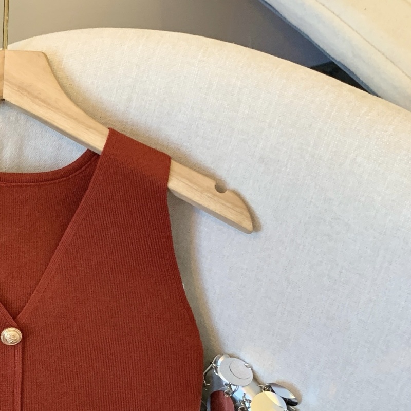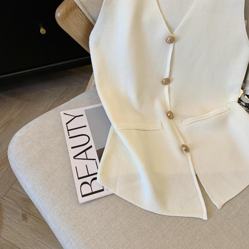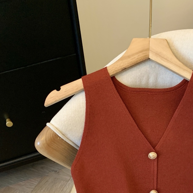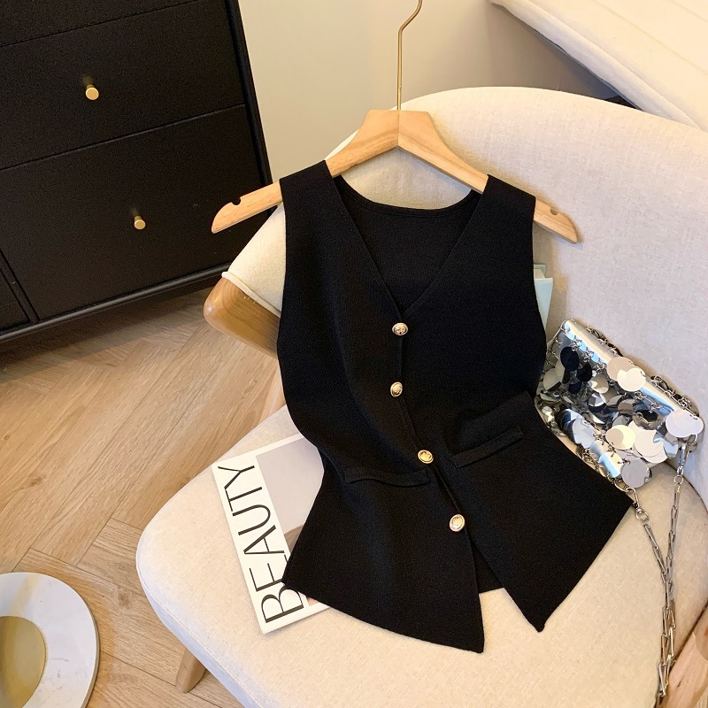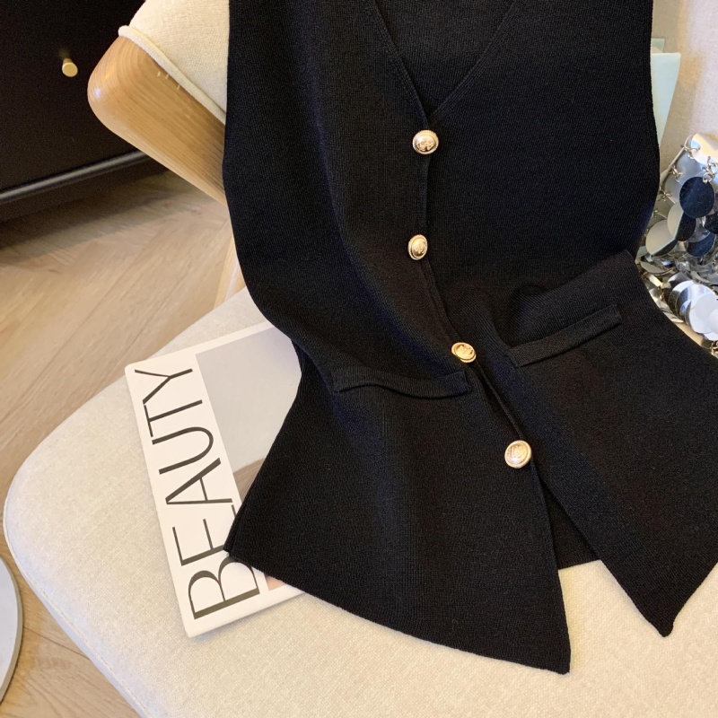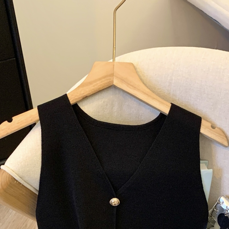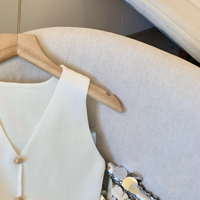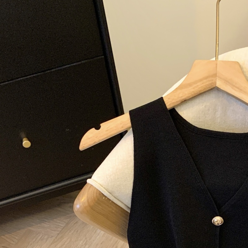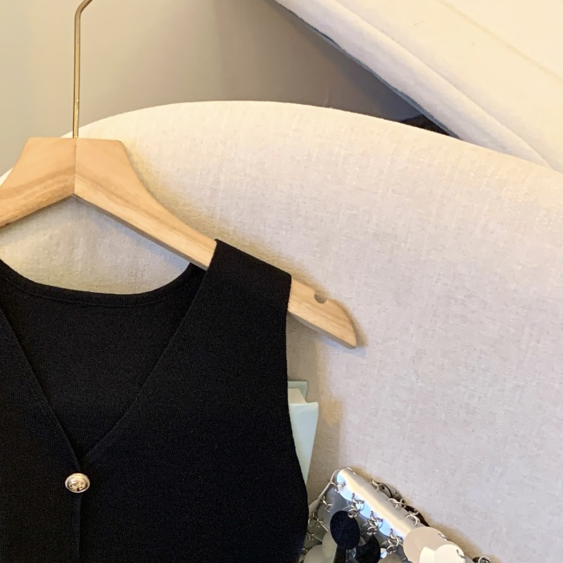 小香风V领针织无袖背心女秋季款高级感马夹开衫小众后背镂空上衣