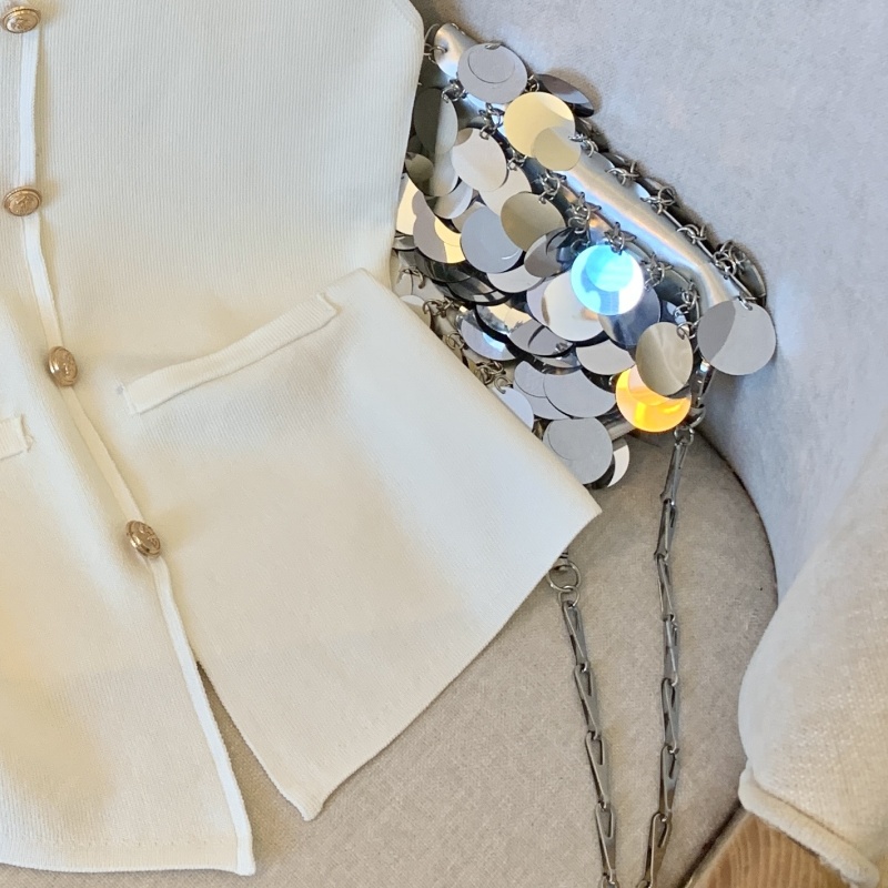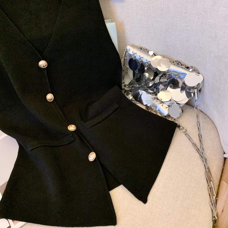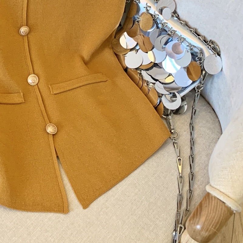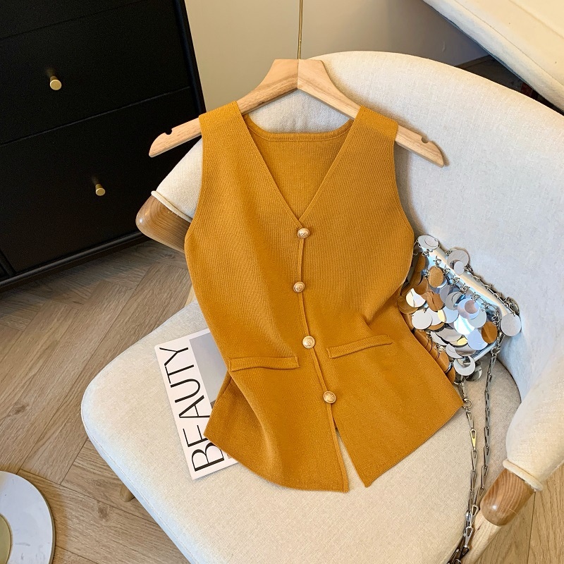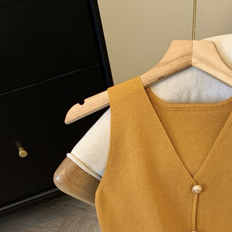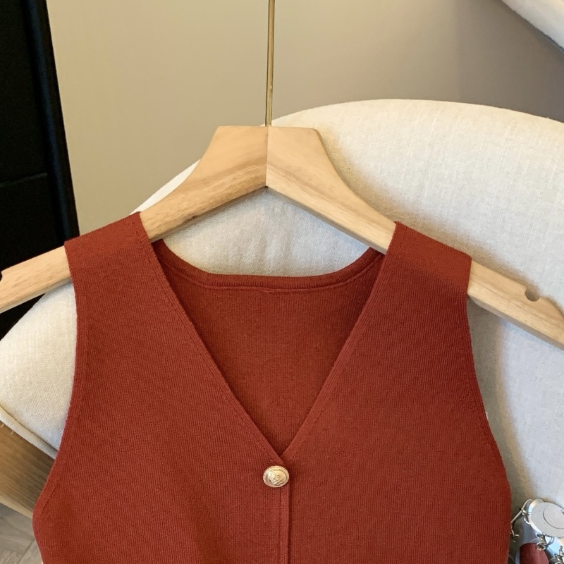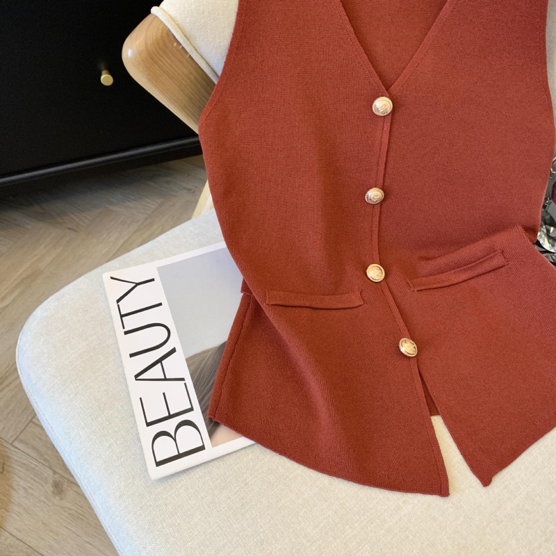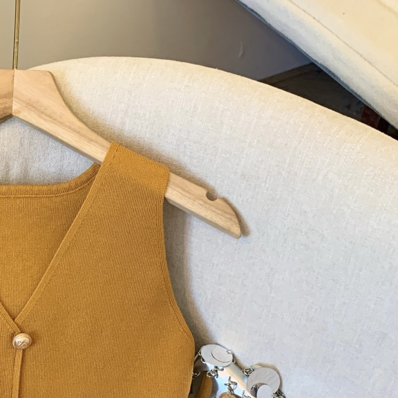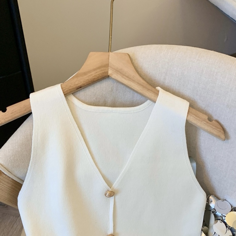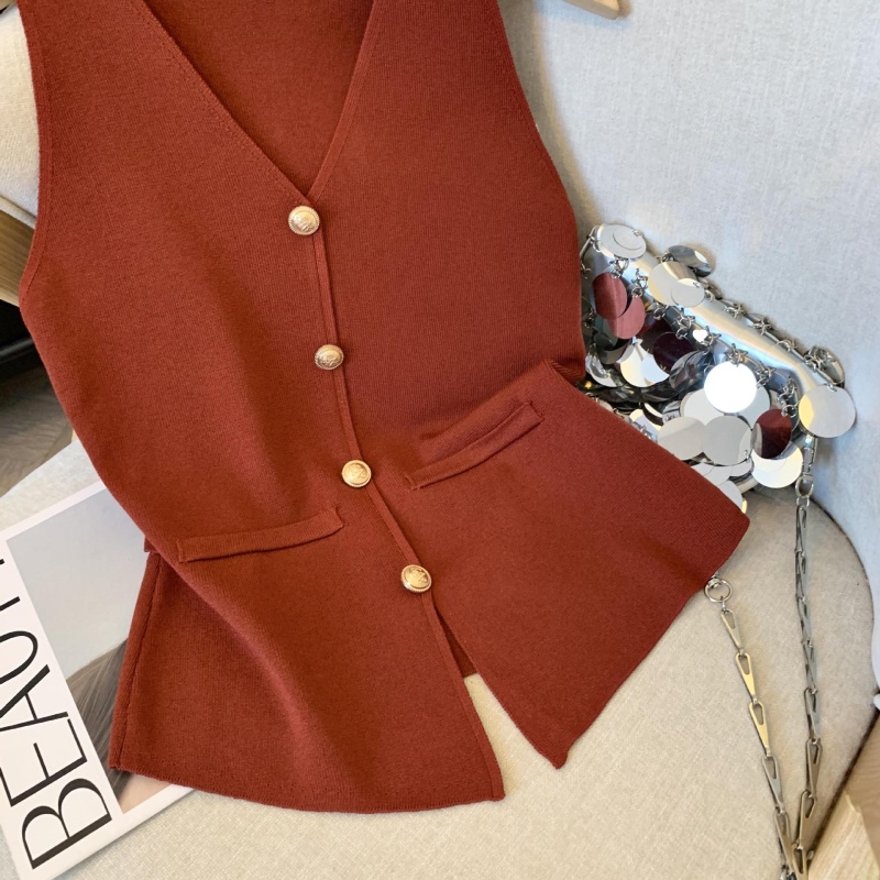 小香风V领针织无袖背心女秋季款高级感马夹开衫小众后背镂空上衣