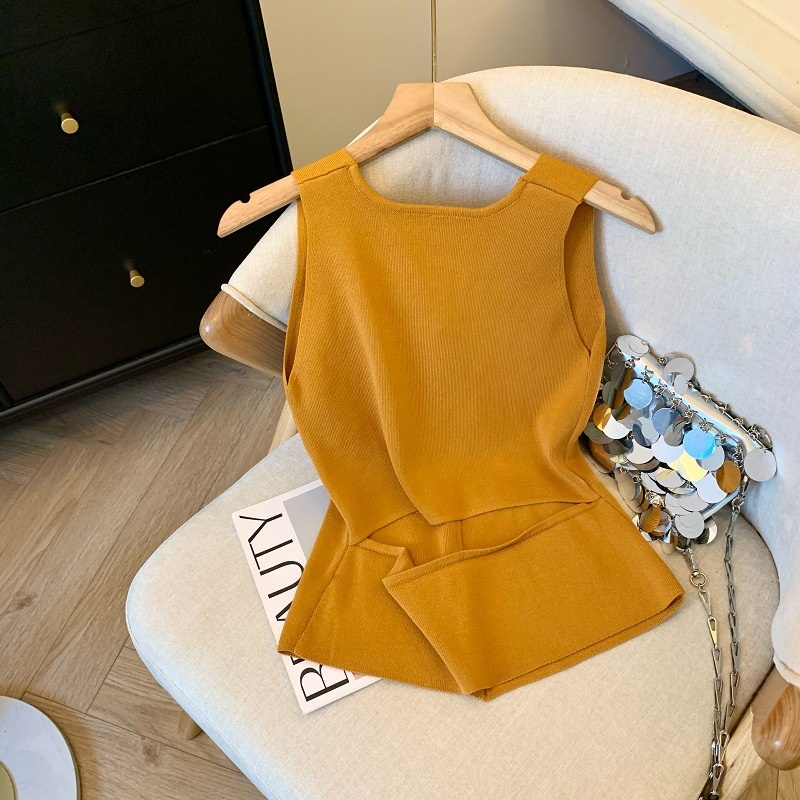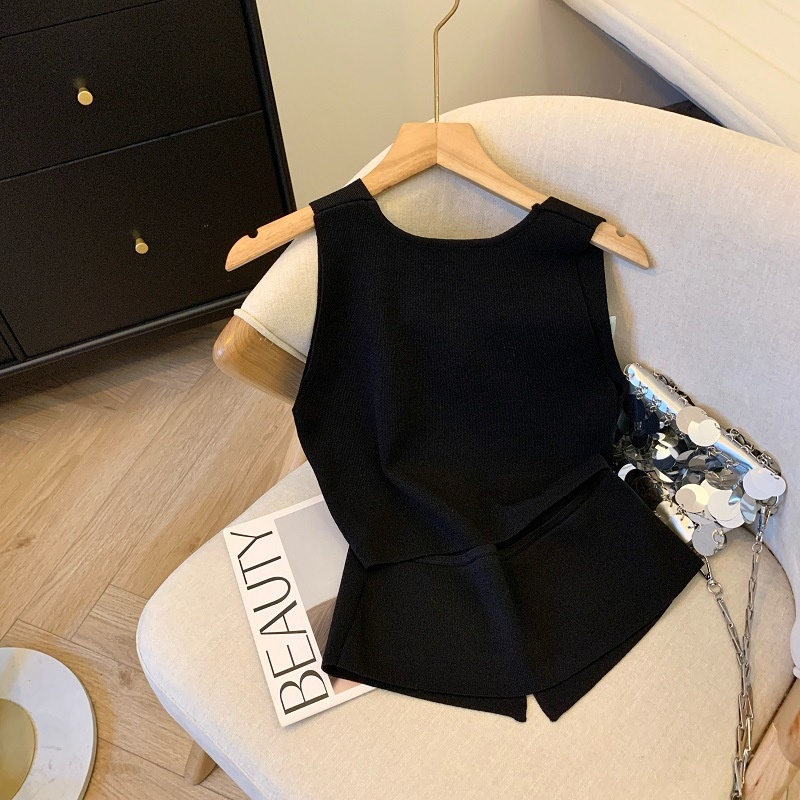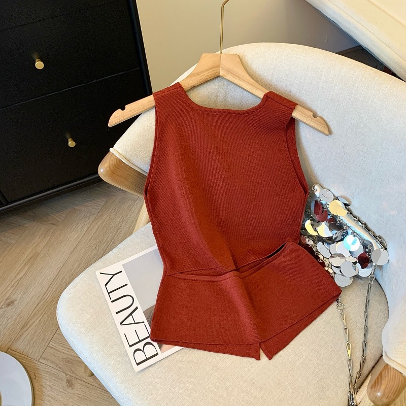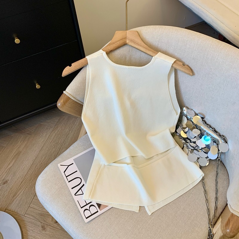 夏季新款针织吊带背心短款上衣镂空无袖设计感衫辣妹性感外穿内搭