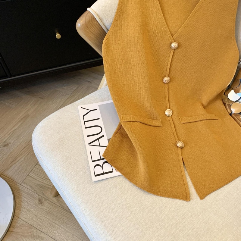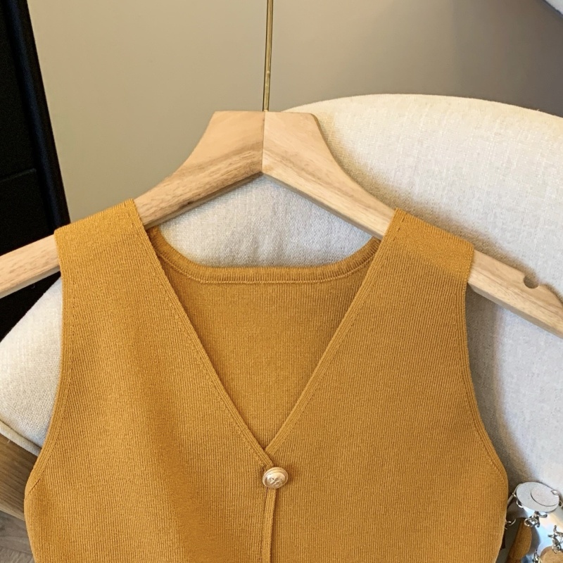 韩版网红辣妹穿搭上衣马甲纯欲气质小个子拼接棋盘针织背心上衣女