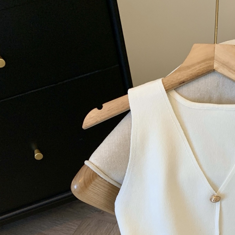 夏季短款纯色法式针织薄款挂脖吊带性感辣妹外穿露背加工定制上衣
