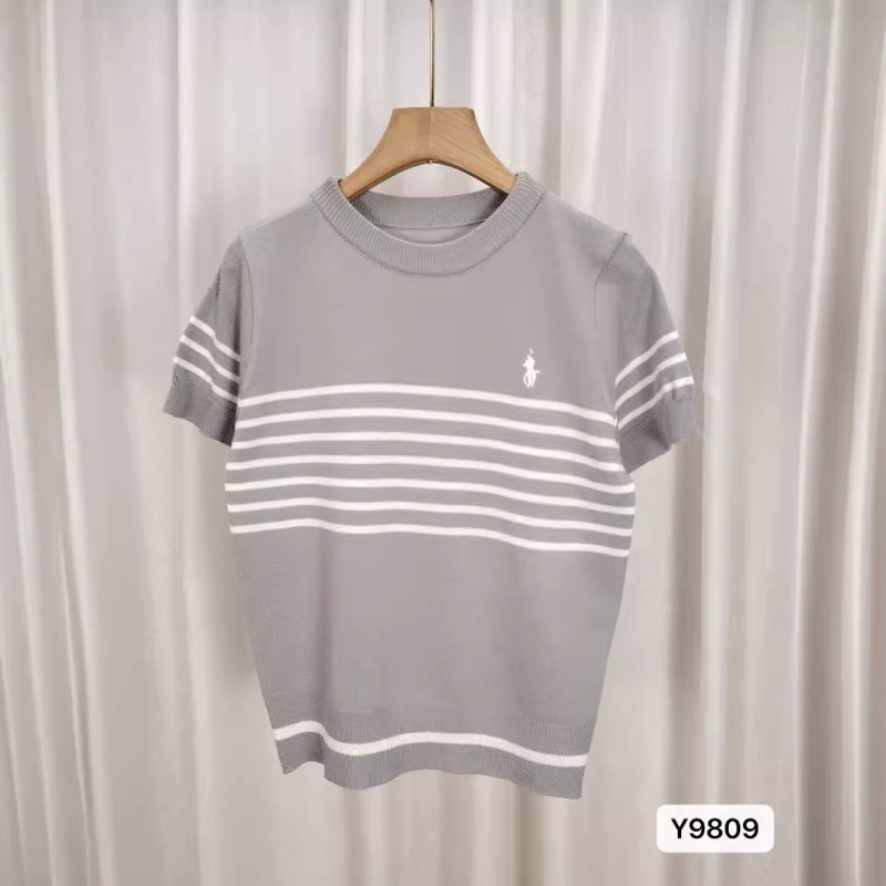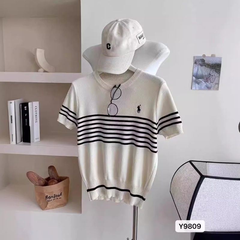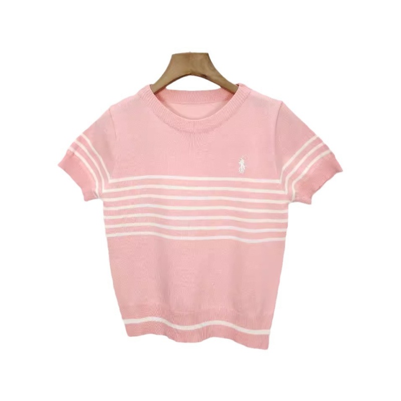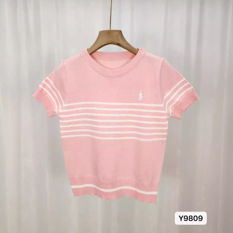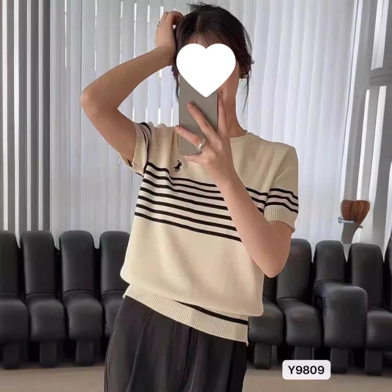 2024韩系修身百搭条纹针织冰女夏季宽松显瘦刺绣短款上衣T恤衫潮