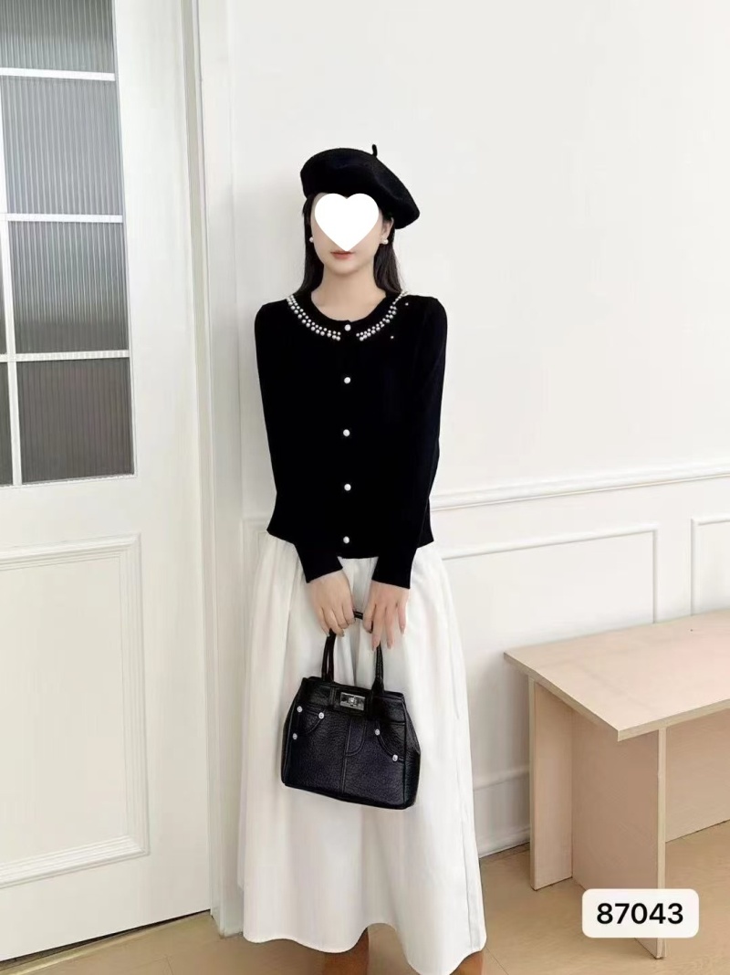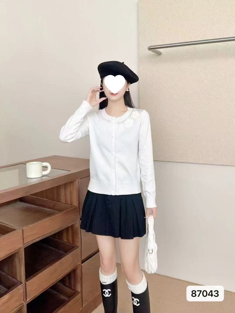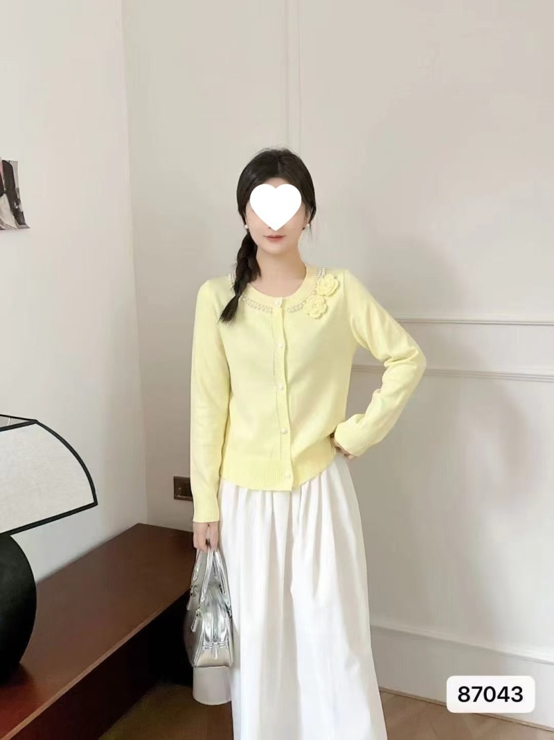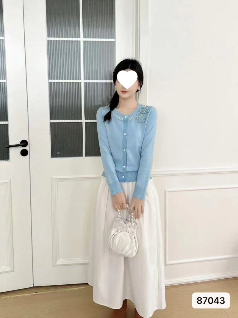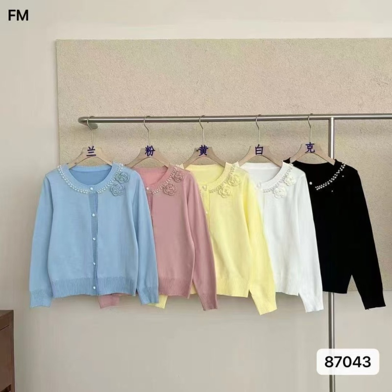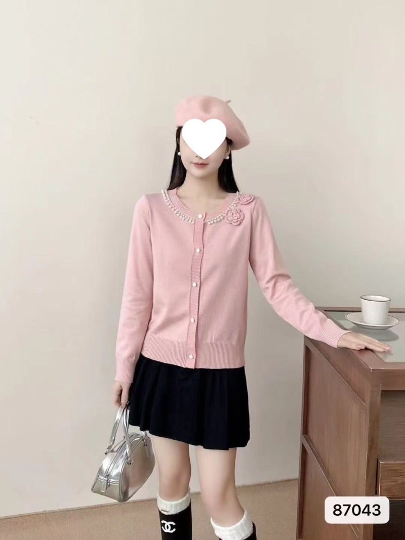 2024秋冬新款韩版时尚甜美清新小众钉珍珠立体花长袖开衫上衣女潮