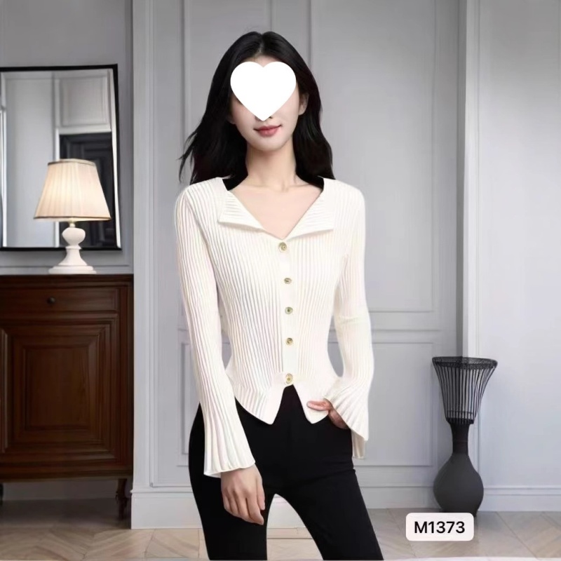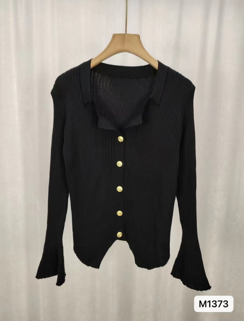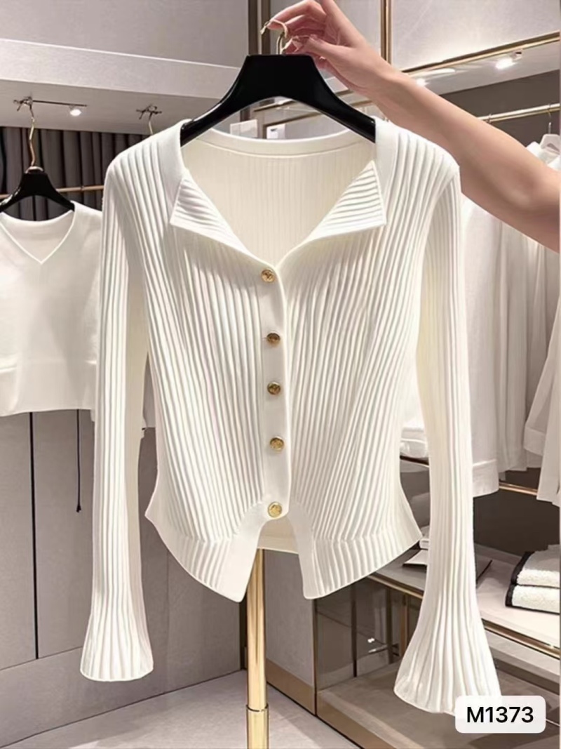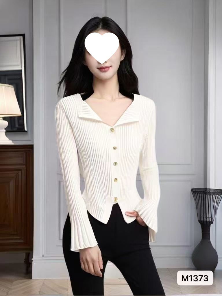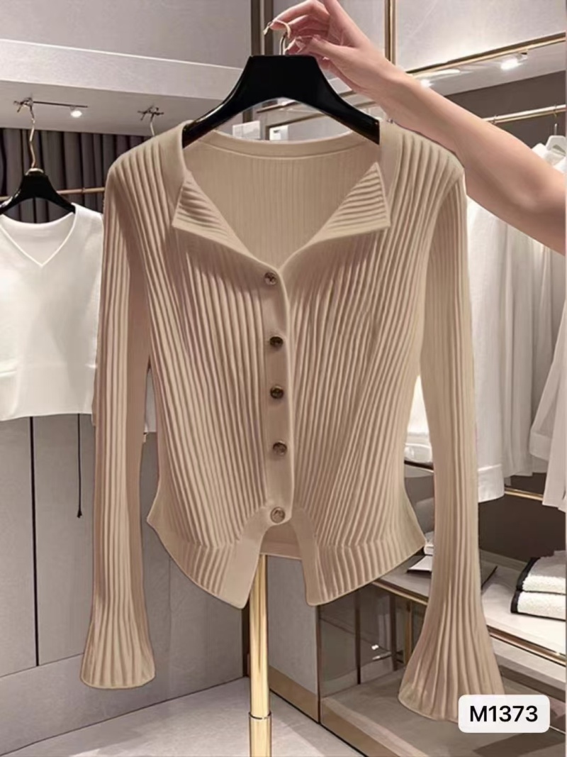 2024秋冬新款韩系百搭小众chic别致坑条显瘦喇叭袖长袖短款上衣女