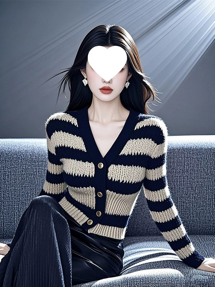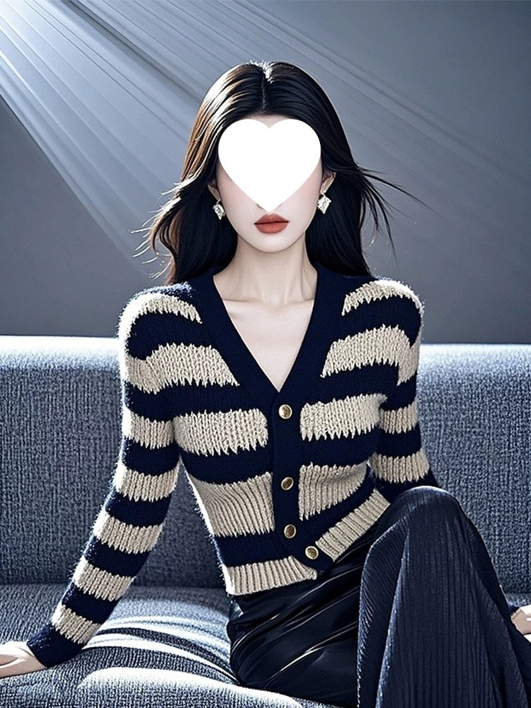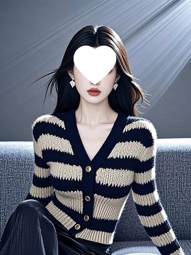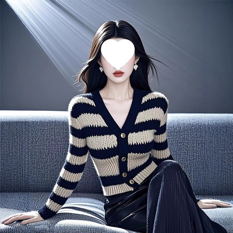 2024早秋季新款撞色条纹外搭长袖针织衫女冷淡系高级感慵懒风上衣