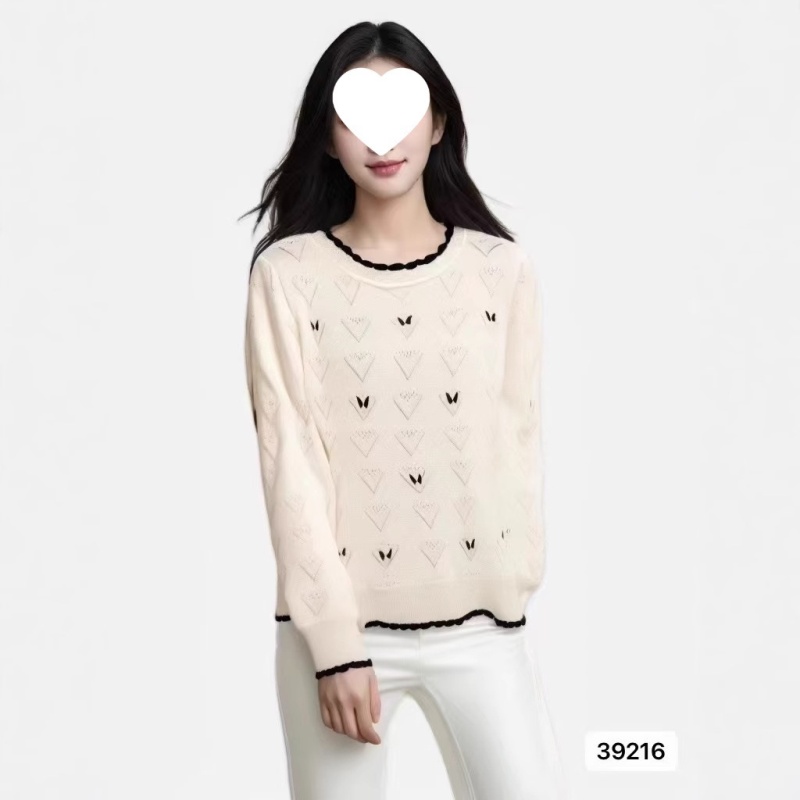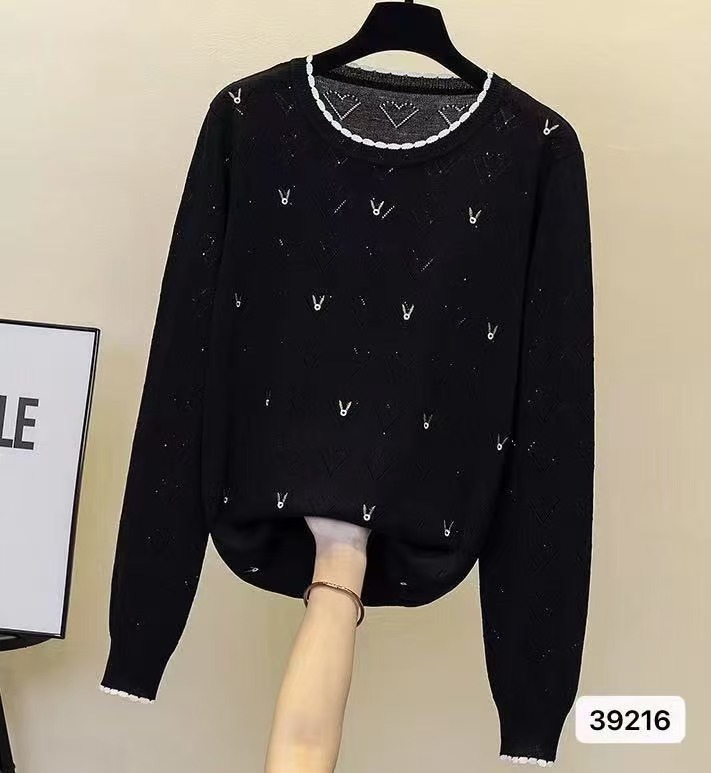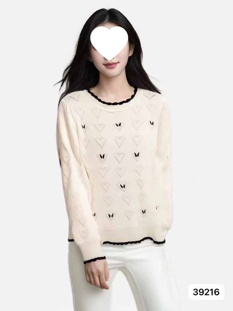 2024秋冬新款韩版洋气减龄显瘦修身圆领绣花爱心镂空长袖上衣女潮