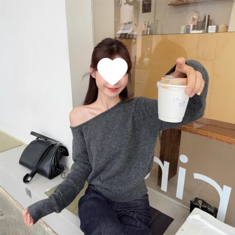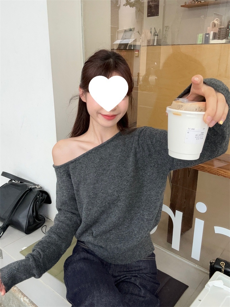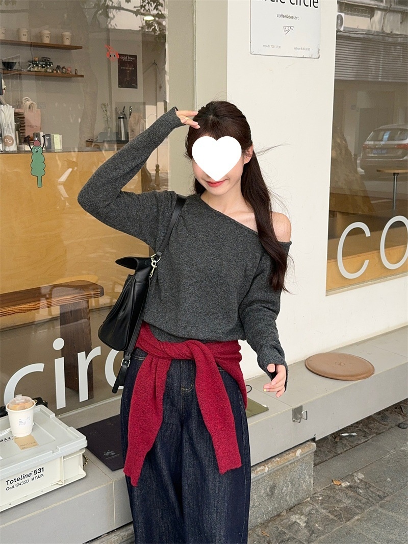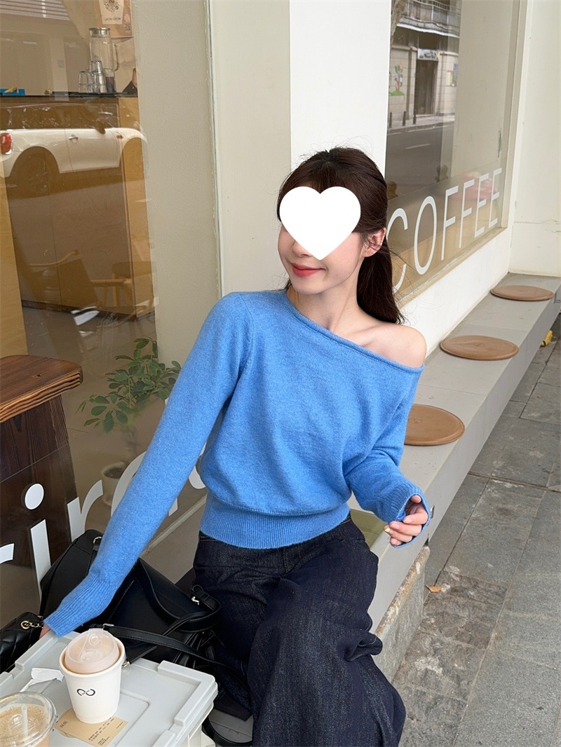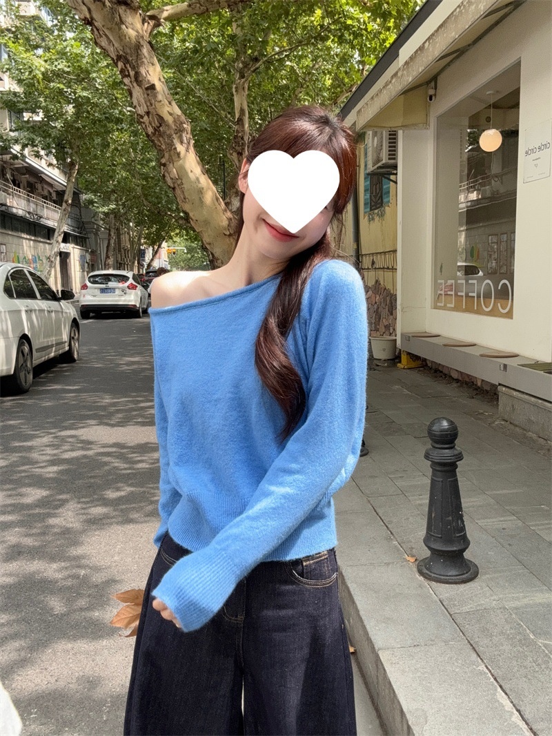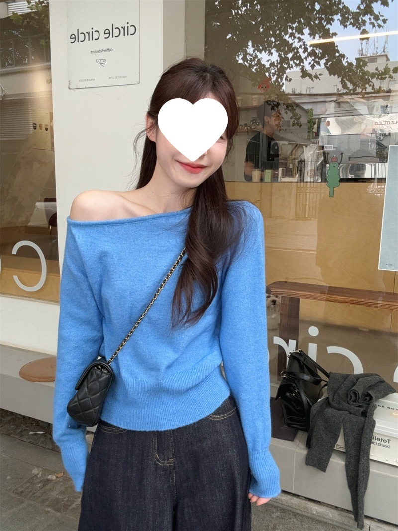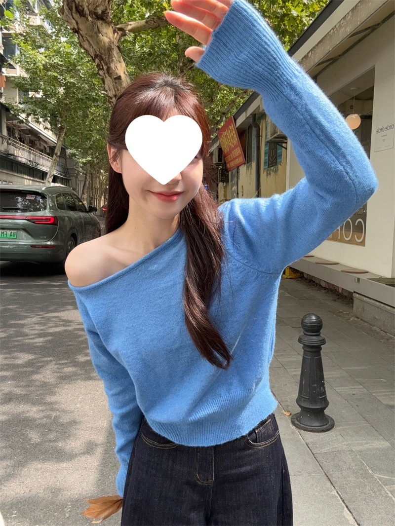 2024春秋季新款甜美清新小众减龄气质百搭设计感款式露肩短款上衣