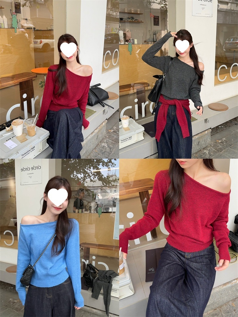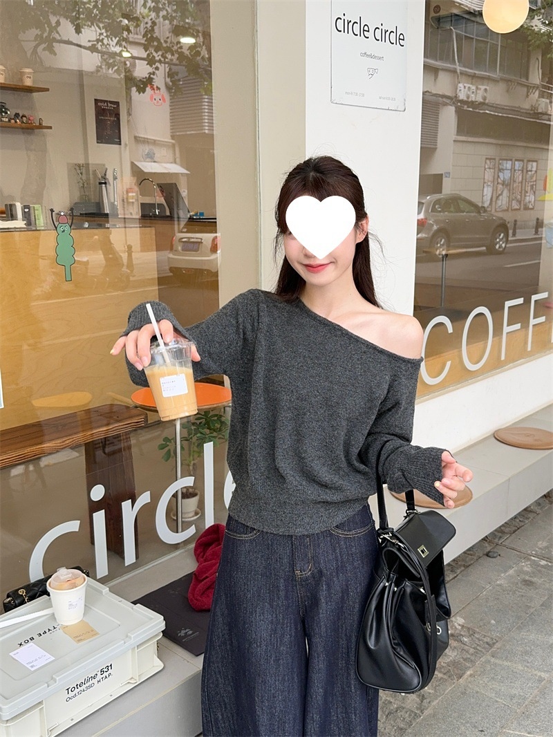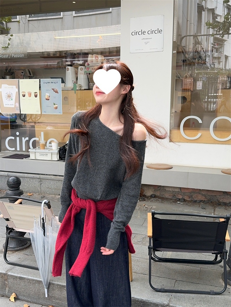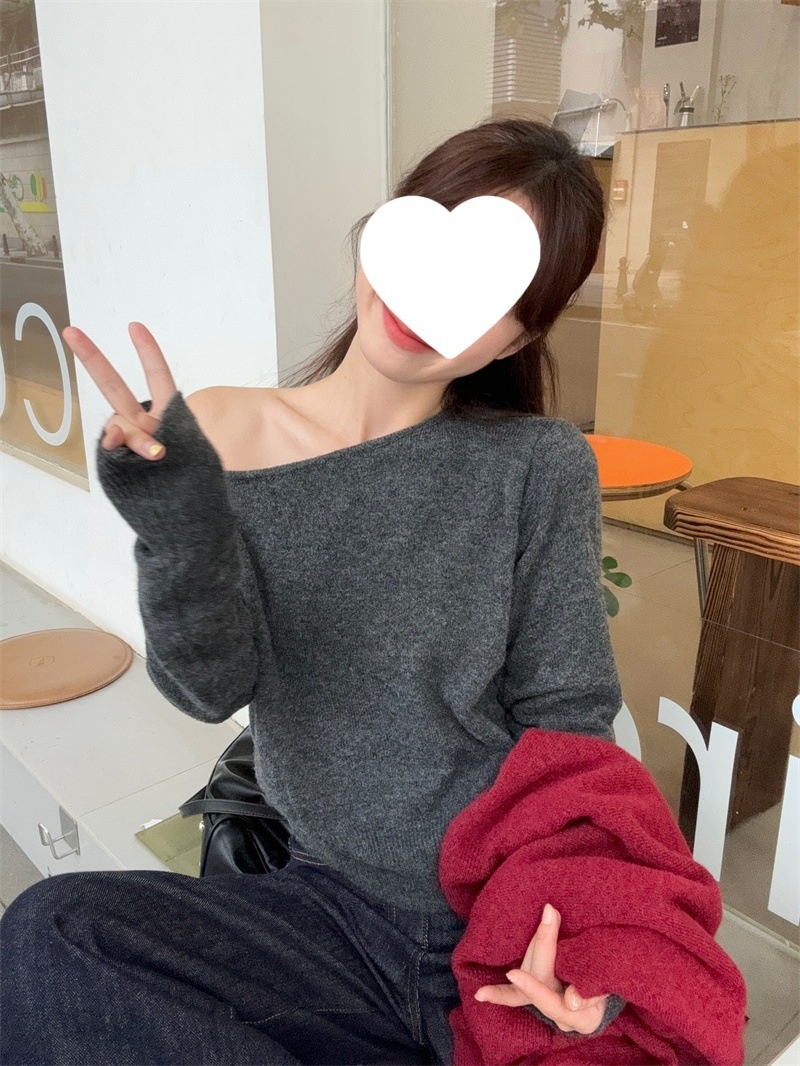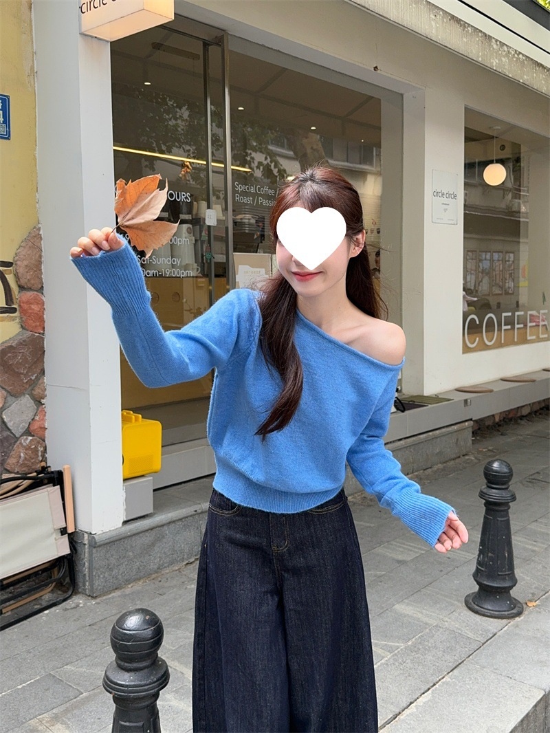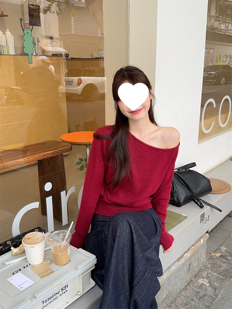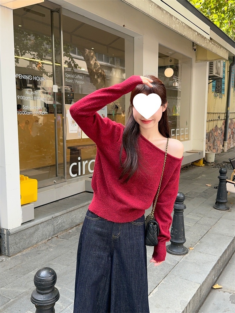 2024春秋季新款甜美清新小众减龄气质百搭设计感款式露肩短款上衣