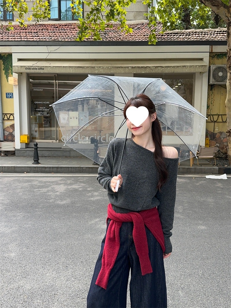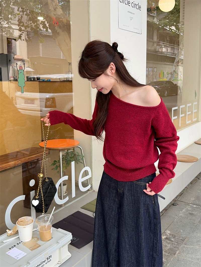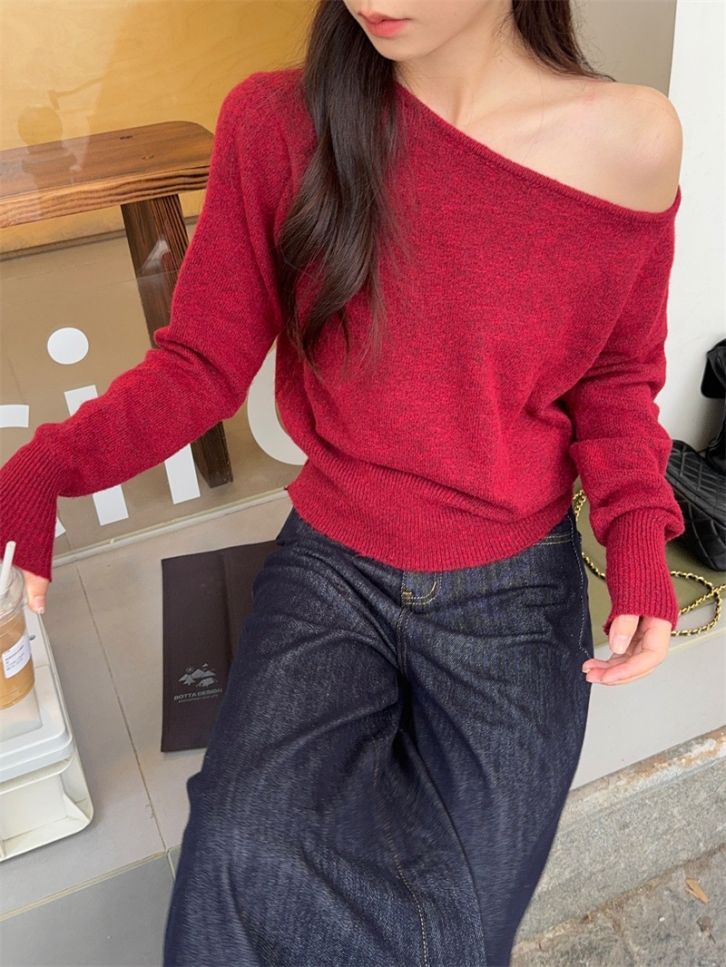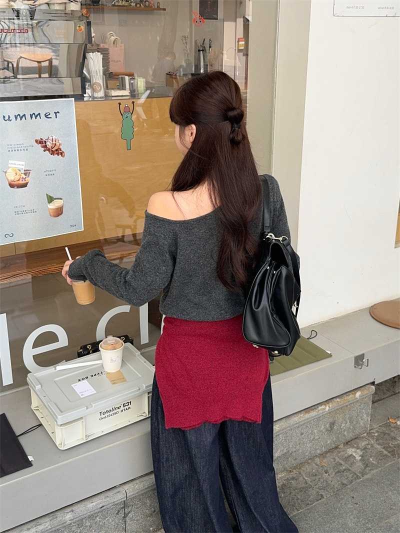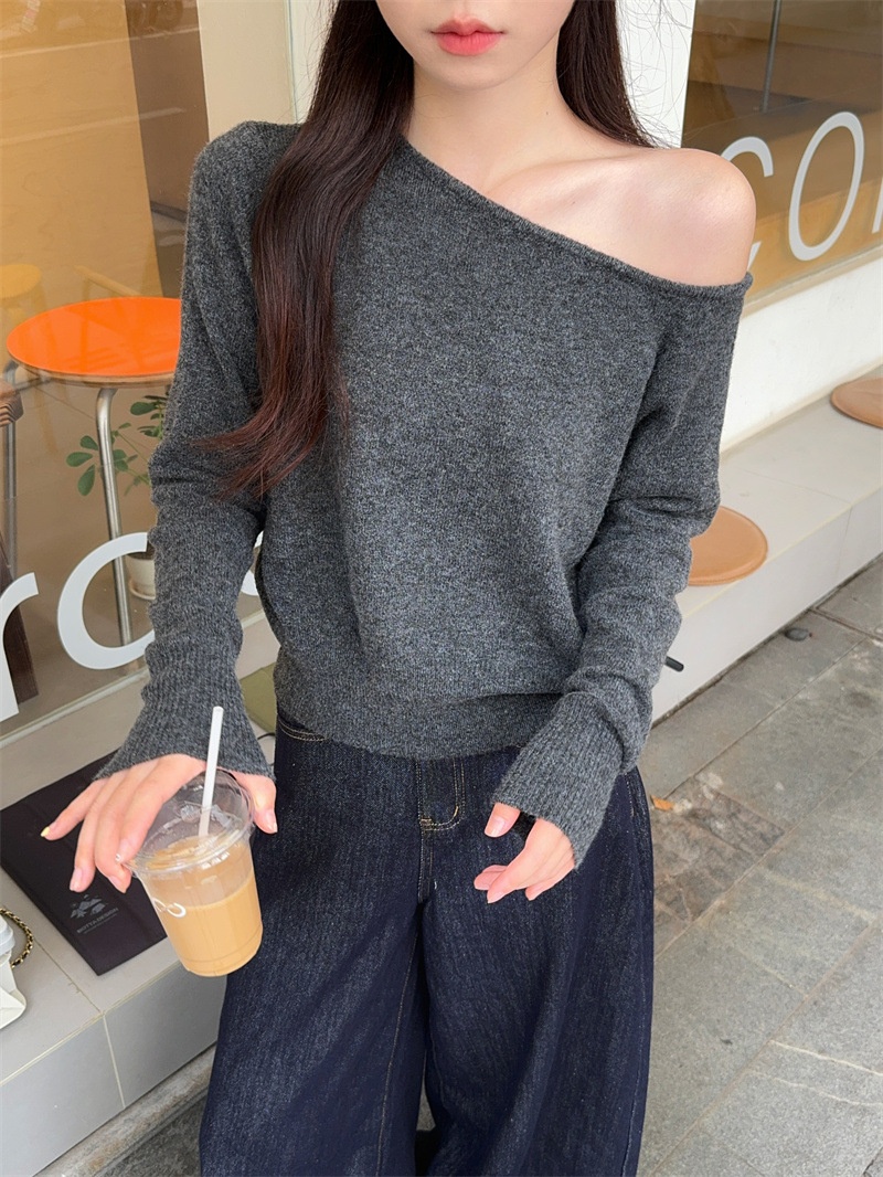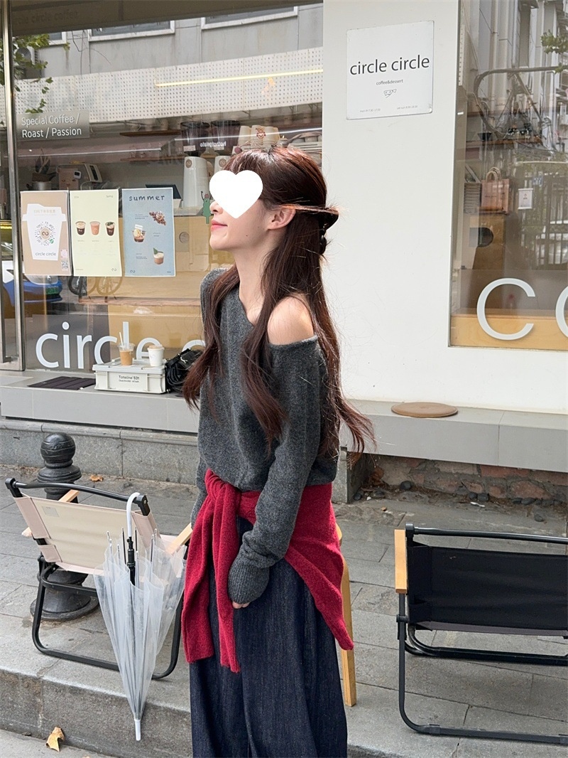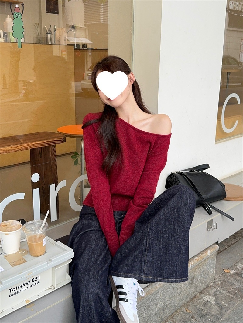 2024春秋季新款甜美清新小众减龄气质百搭设计感款式露肩短款上衣