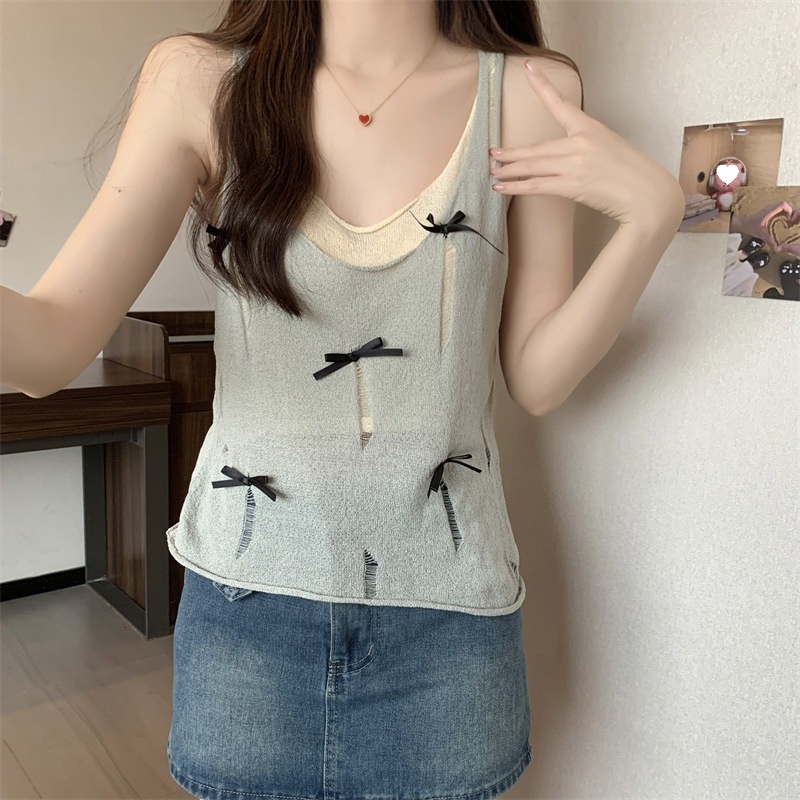 夏季新款设计感薄款蝴蝶结短款内搭外穿上衣辣妹针织bm吊带背心女
