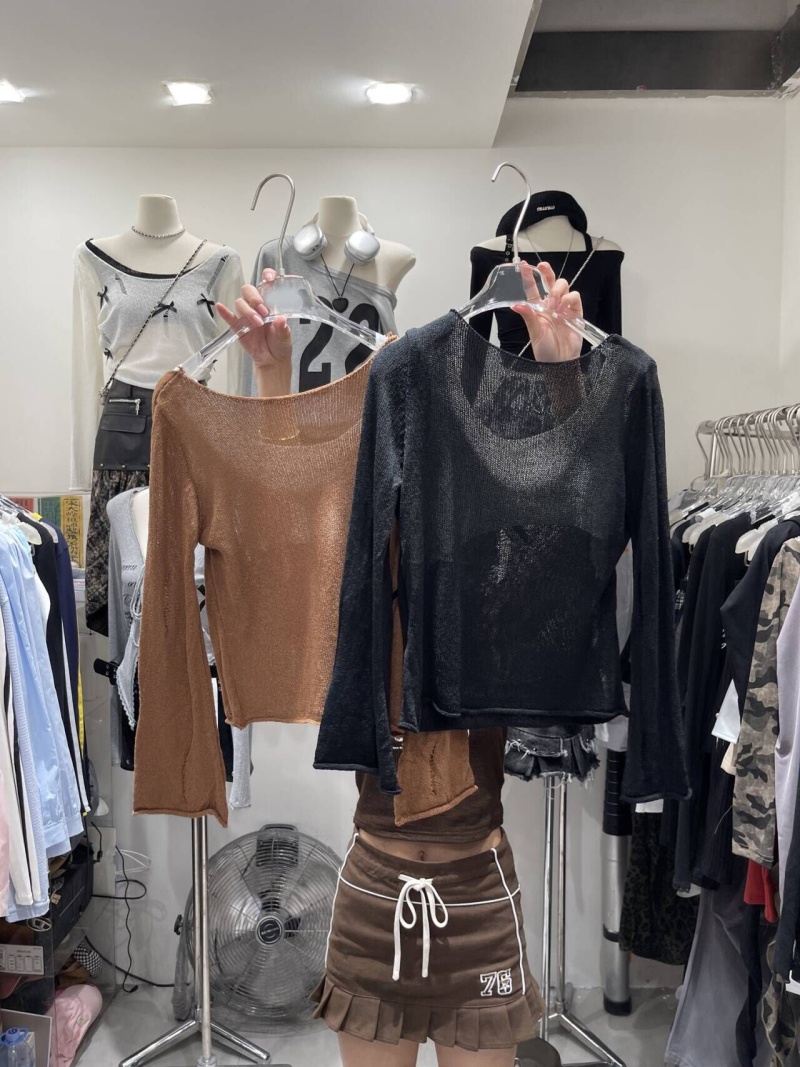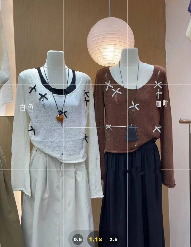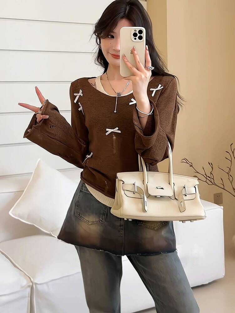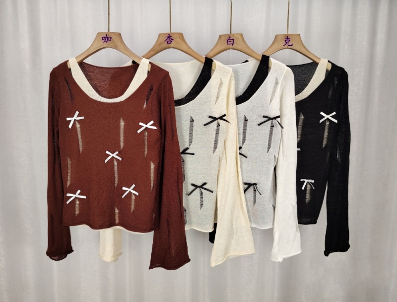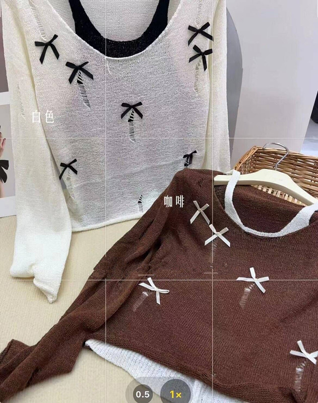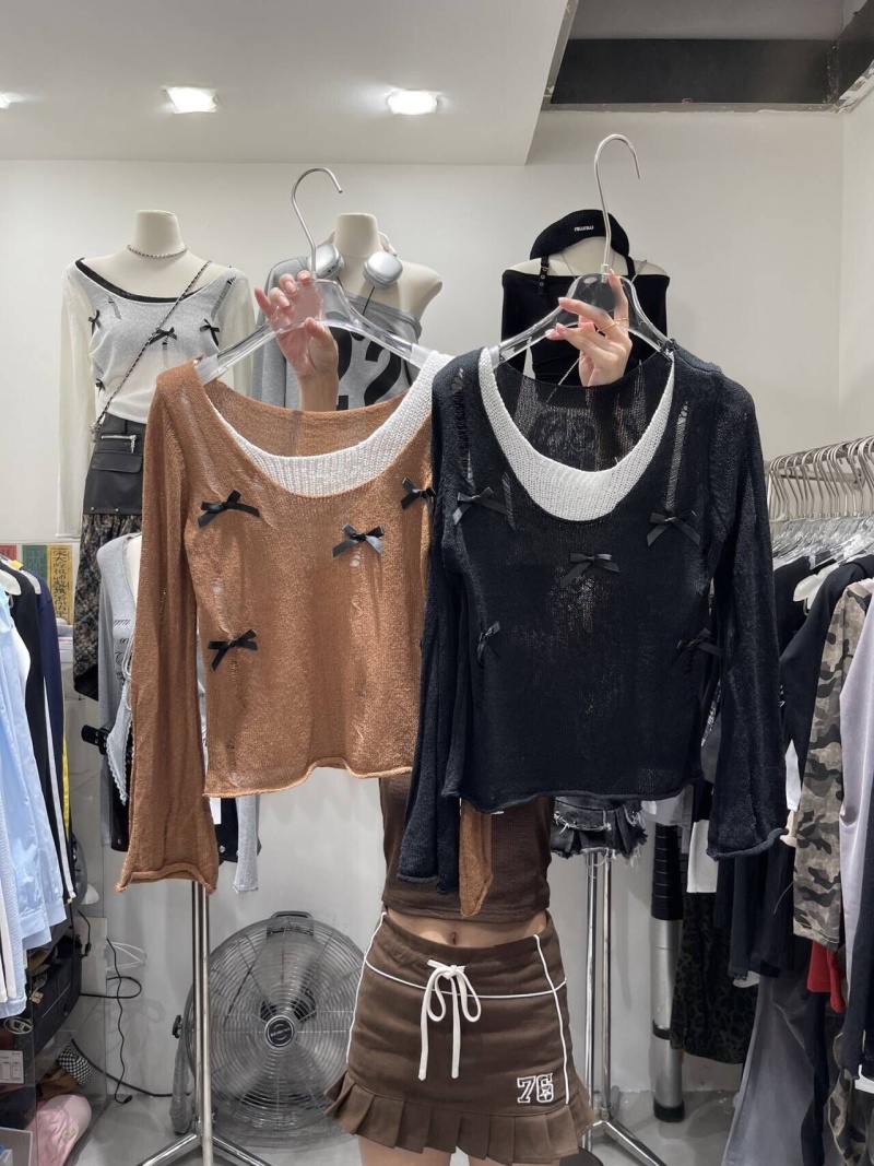 纯欲辣妹假两件破洞撞色针织修身蝴蝶结防晒上衣2024秋季新款小衫