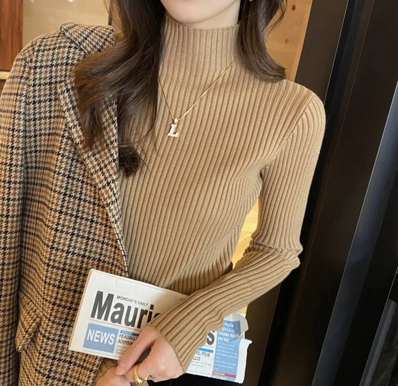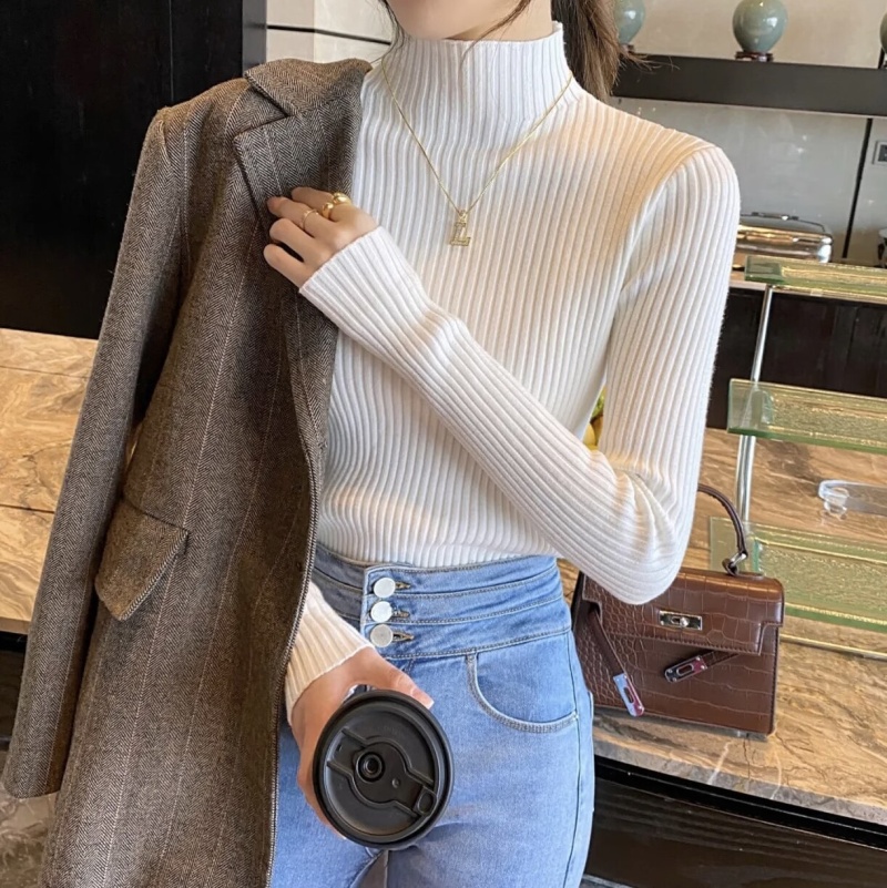 半高领针织打底衫女韩版秋冬洋气西装内搭2024新款长袖套头上衣潮
