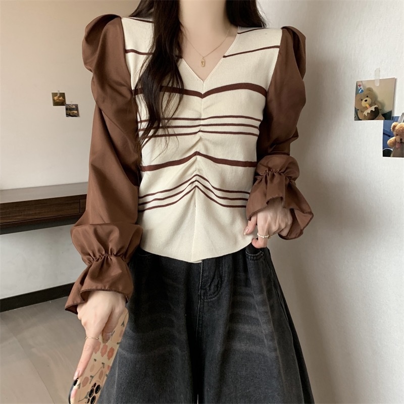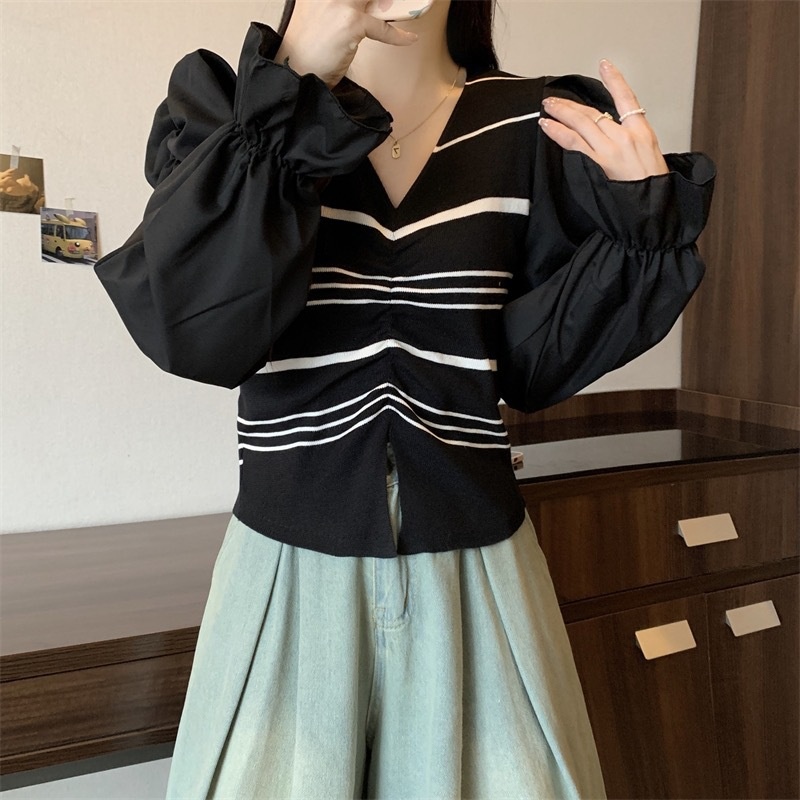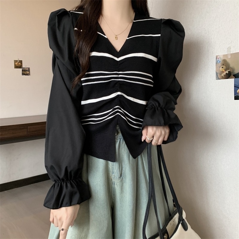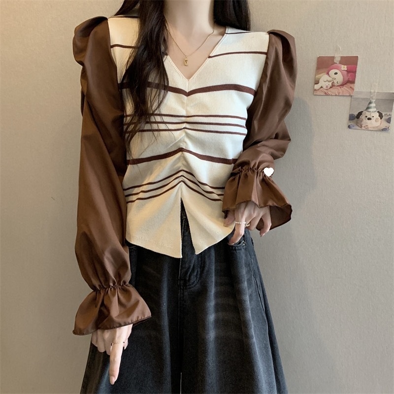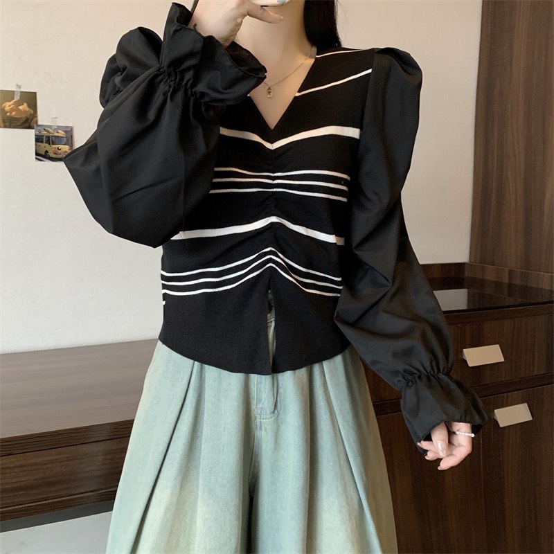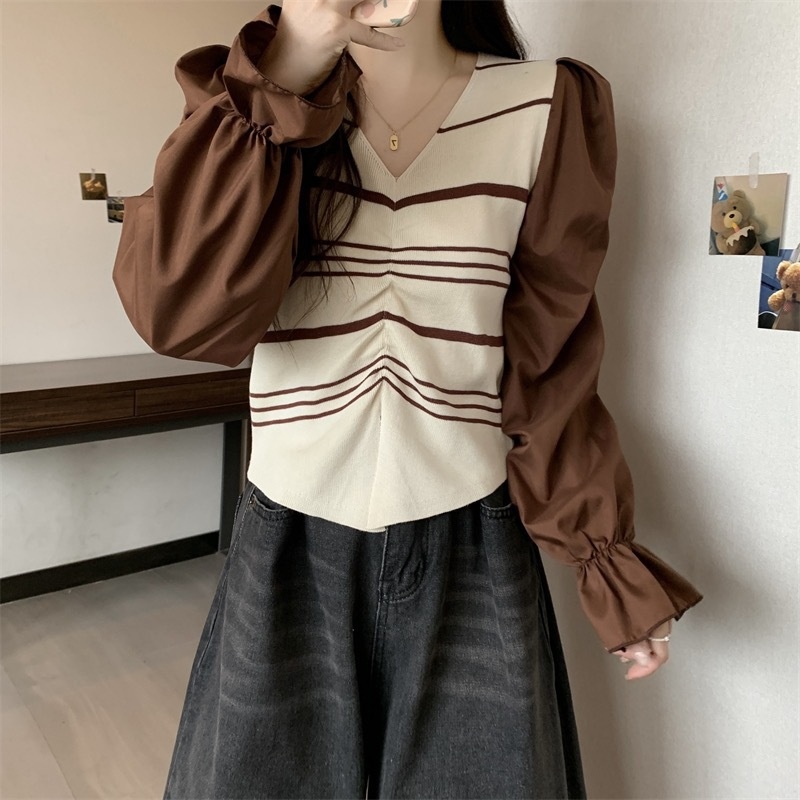 法式拼接假两件衬衫女2024早秋季新款设计感叠穿小众针织开衫上衣
