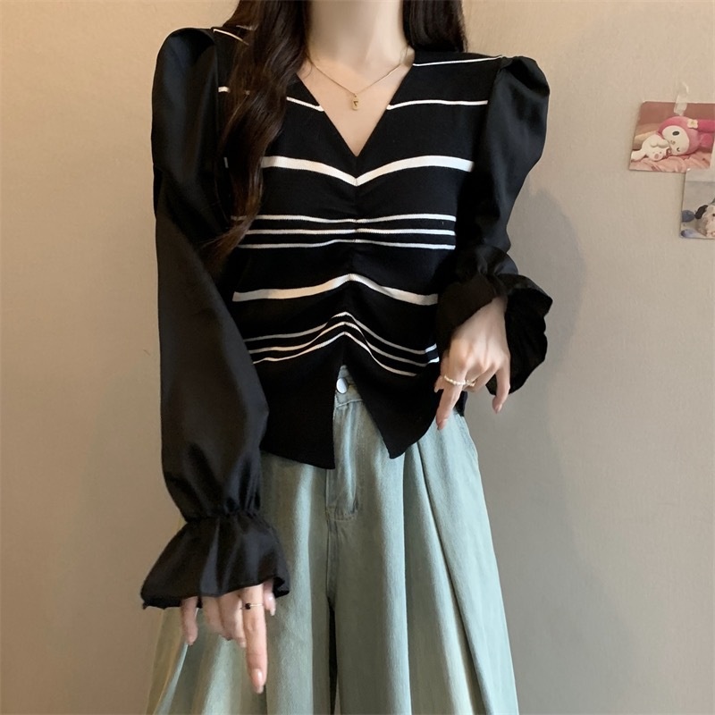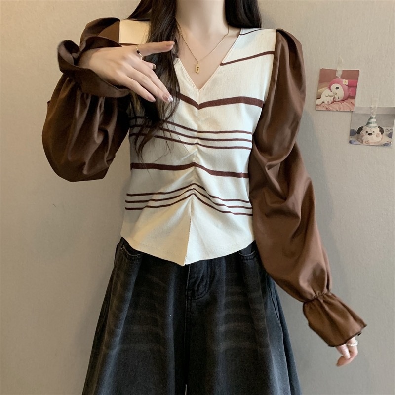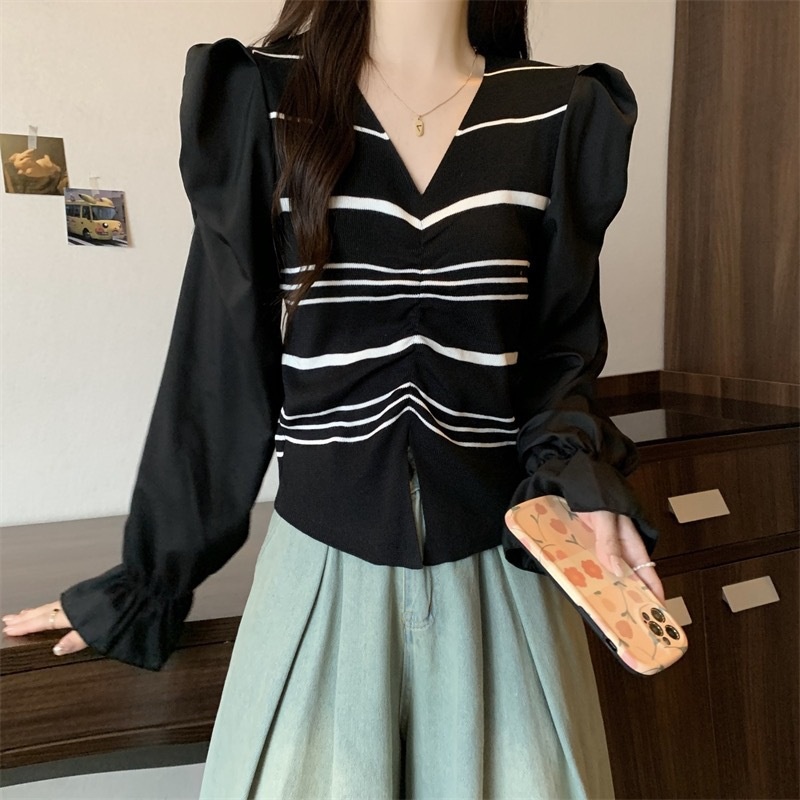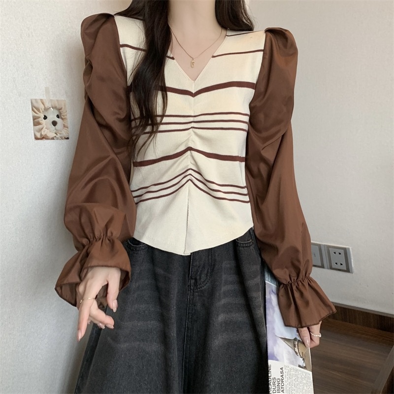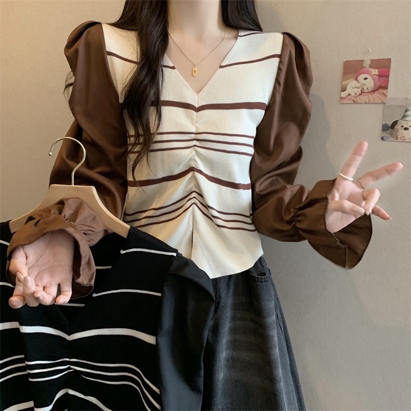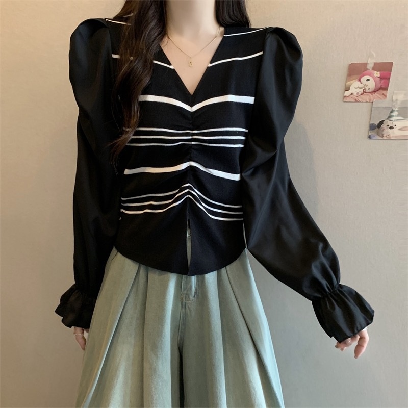 法式拼接假两件衬衫女2024早秋季新款设计感叠穿小众针织开衫上衣