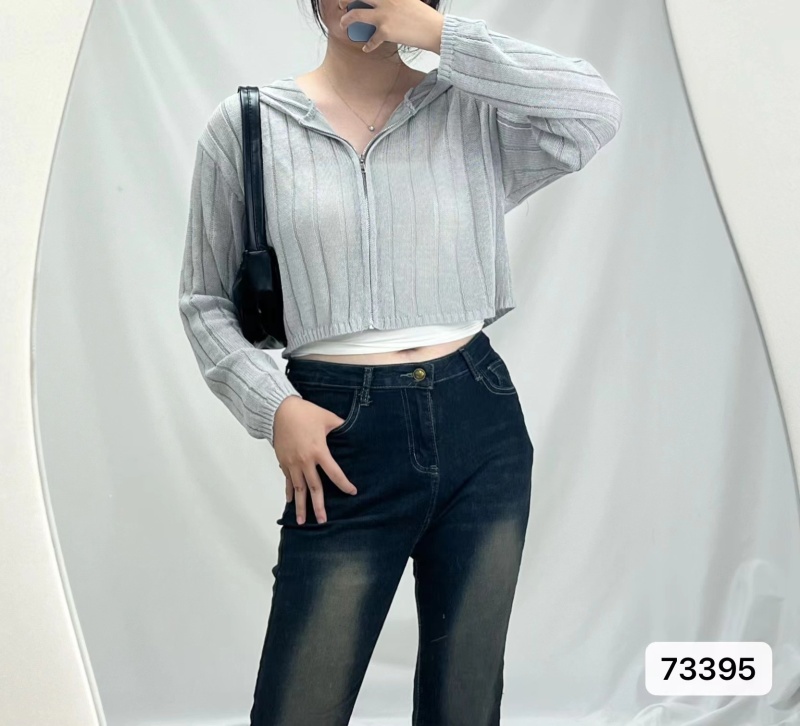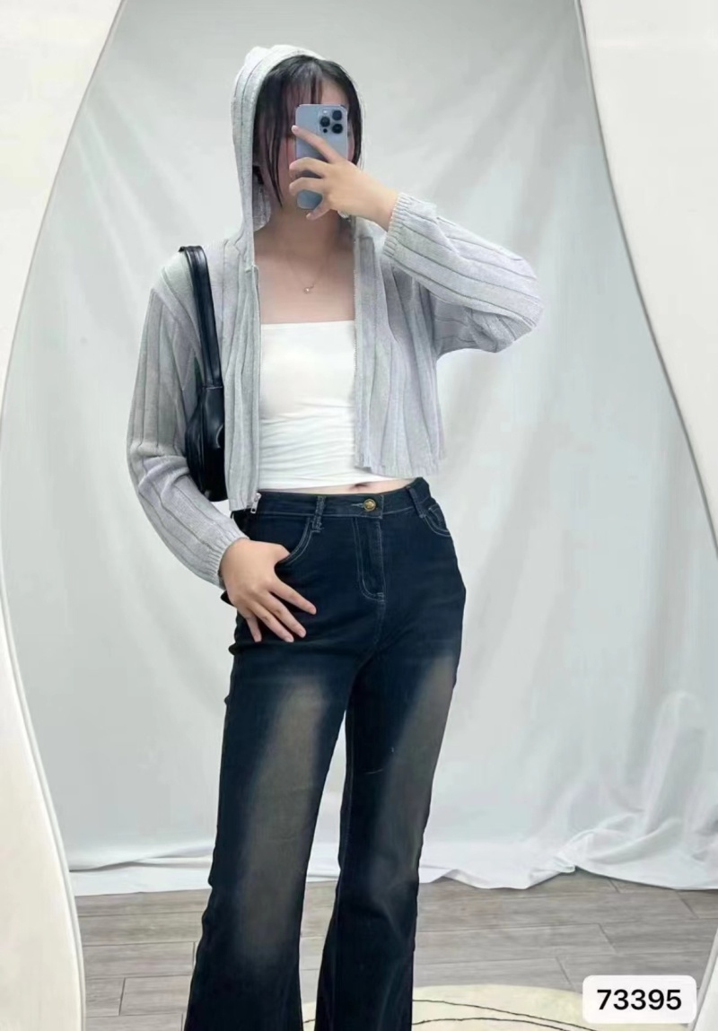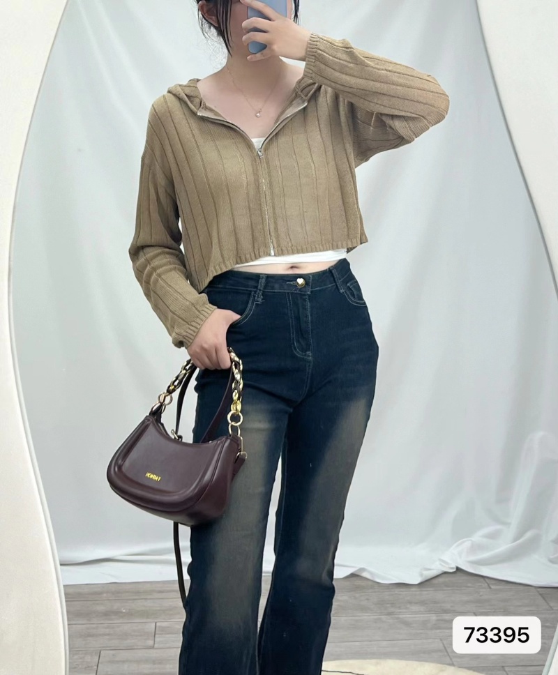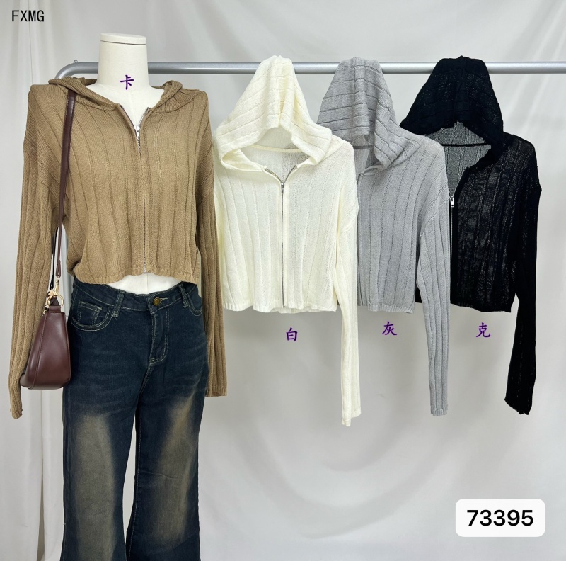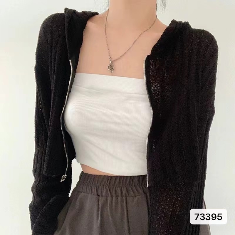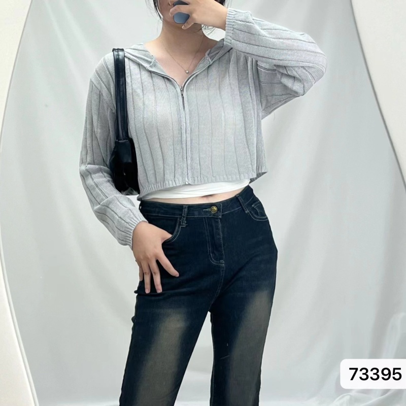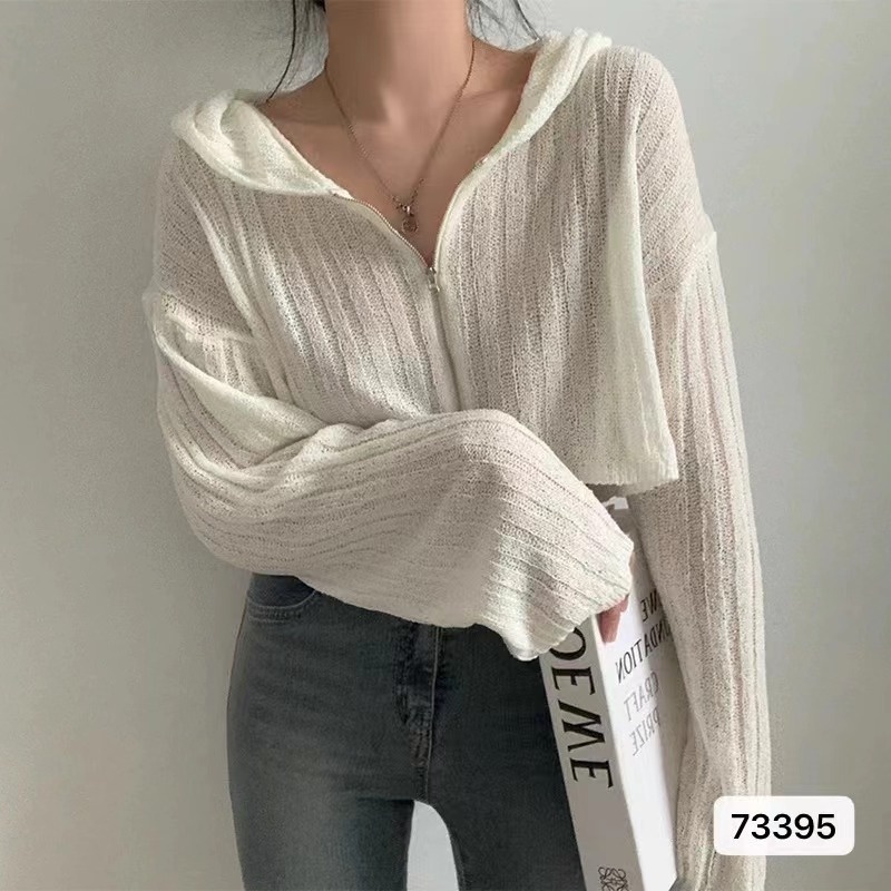 韩国chic早秋辣妹风条纹质感短款长袖拉链连帽式纯色针织衫外套女