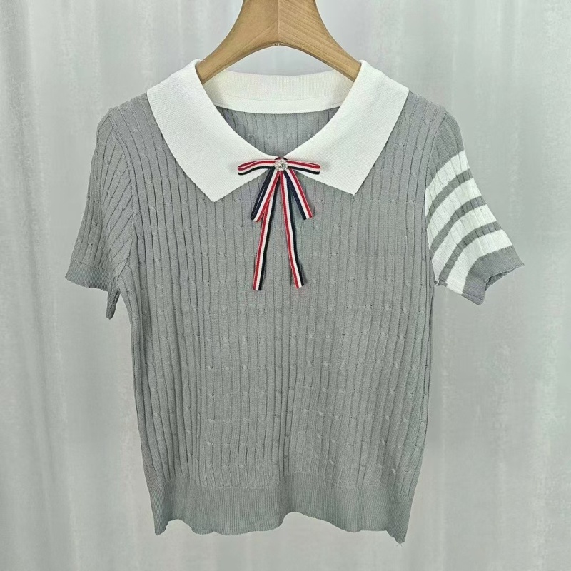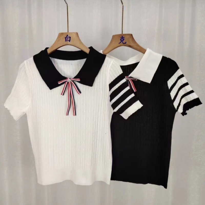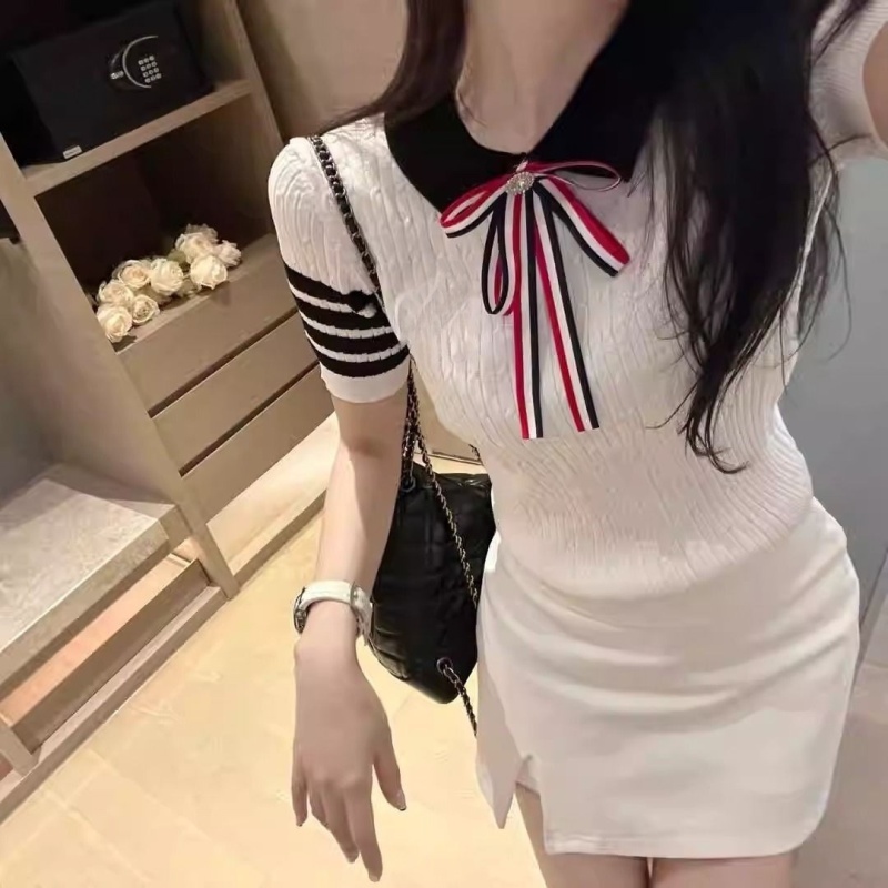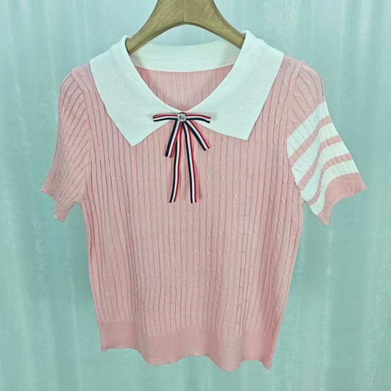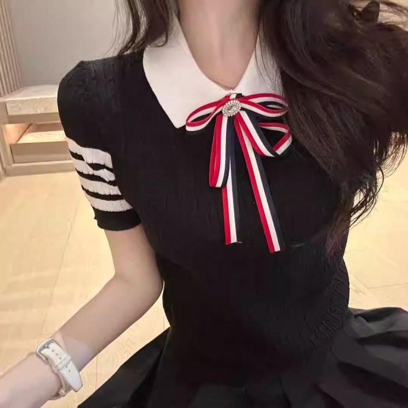 韩版针织夏季学院风新款时尚百搭网红气质减龄设计感款短袖上衣女