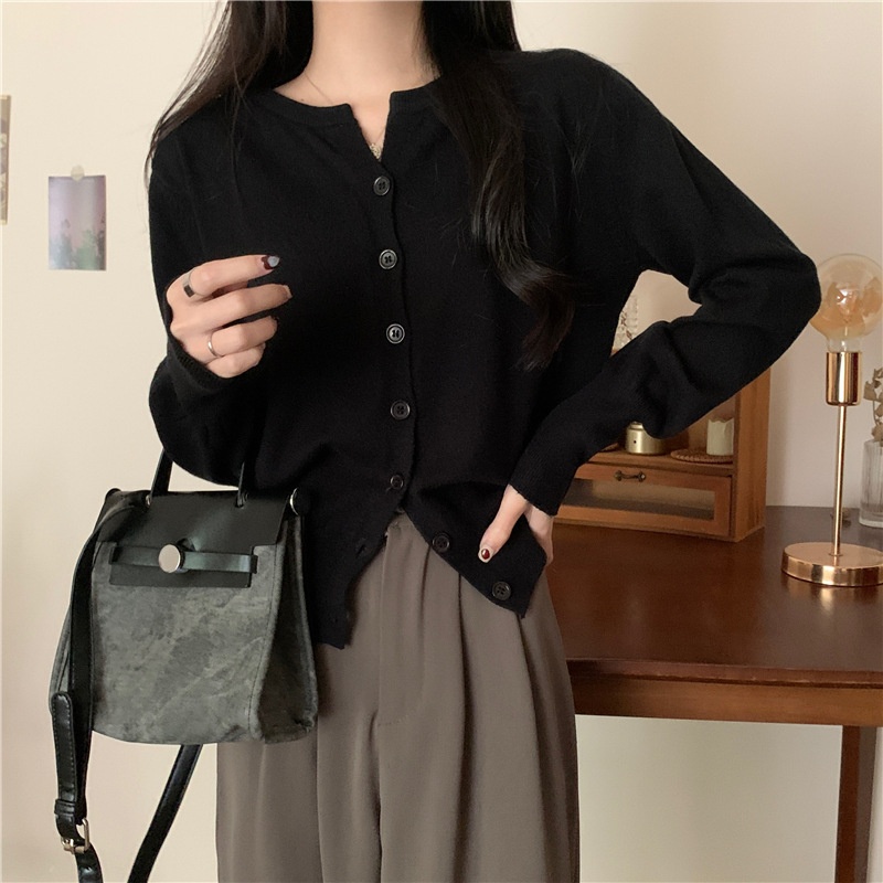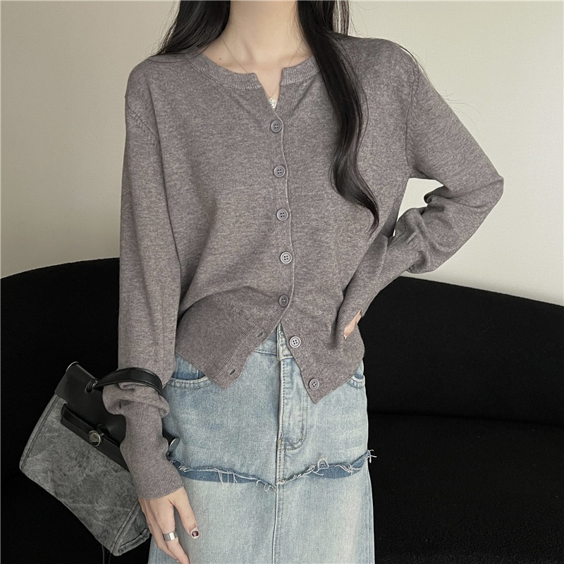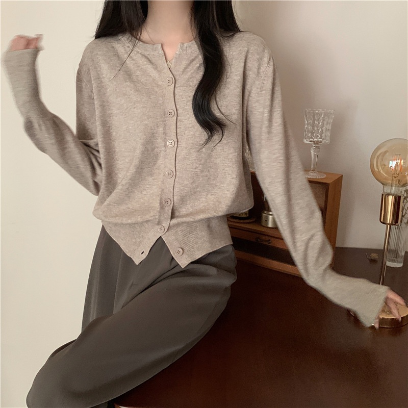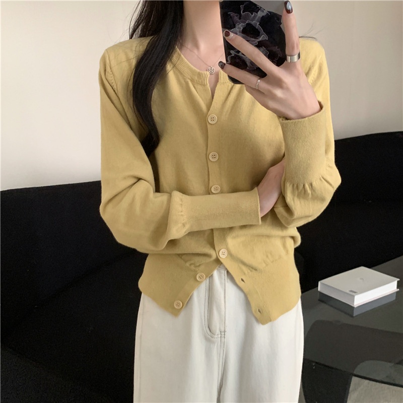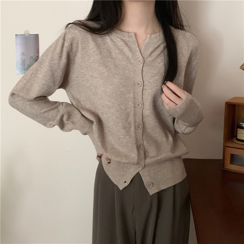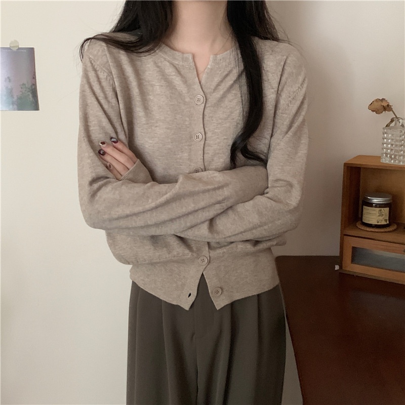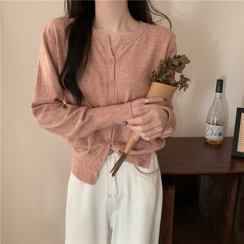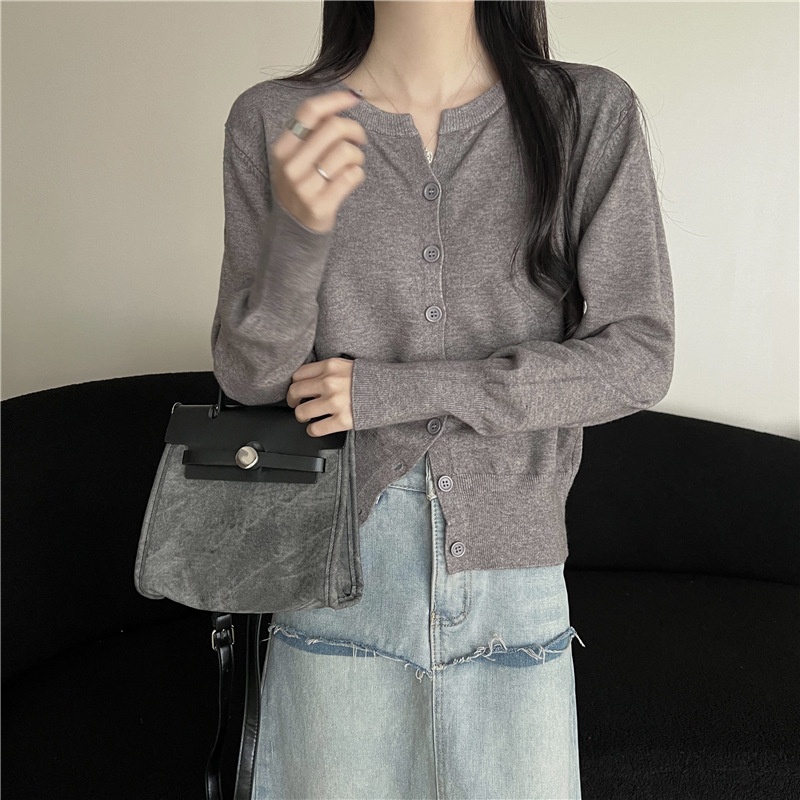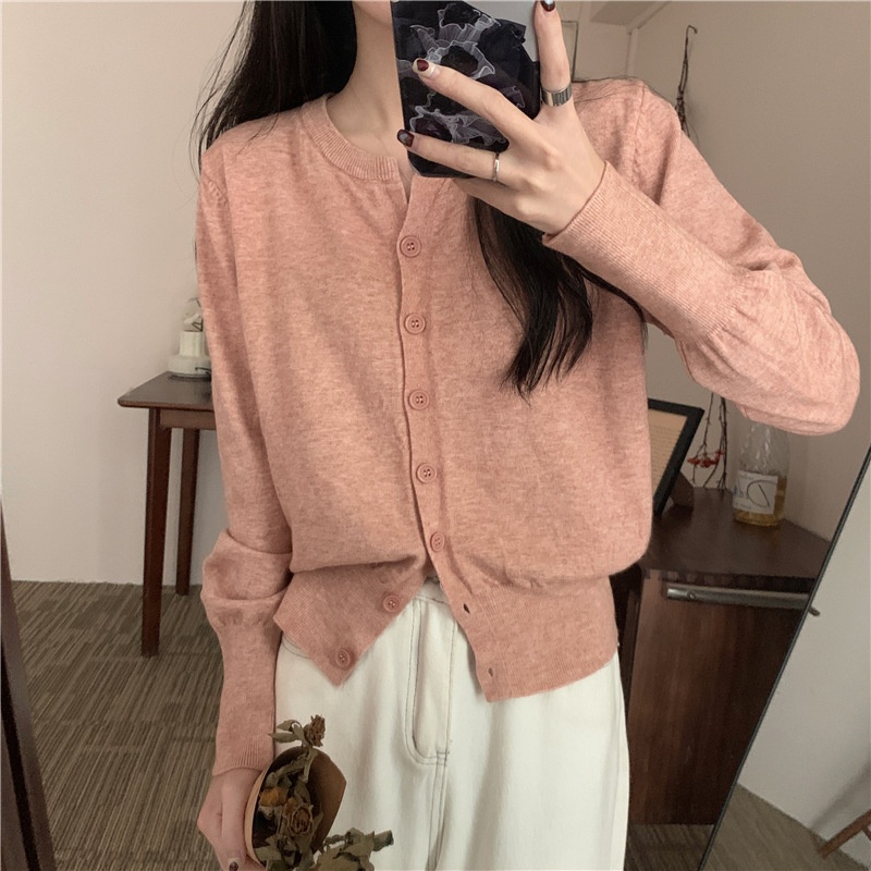 2024春秋季新款圆领甜美清新修身针织开衫外套女毛衣外套短款上衣