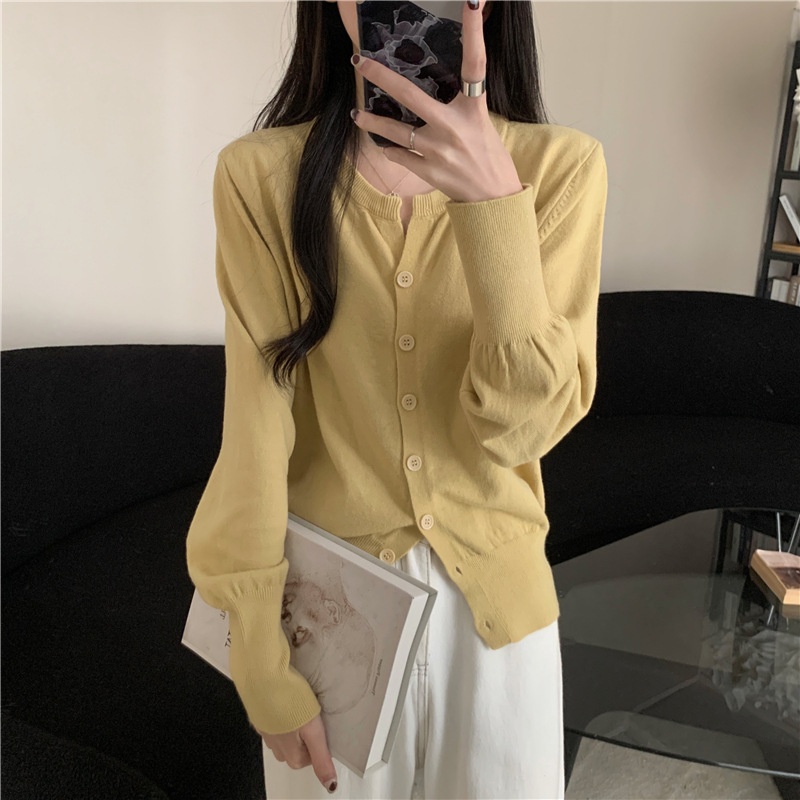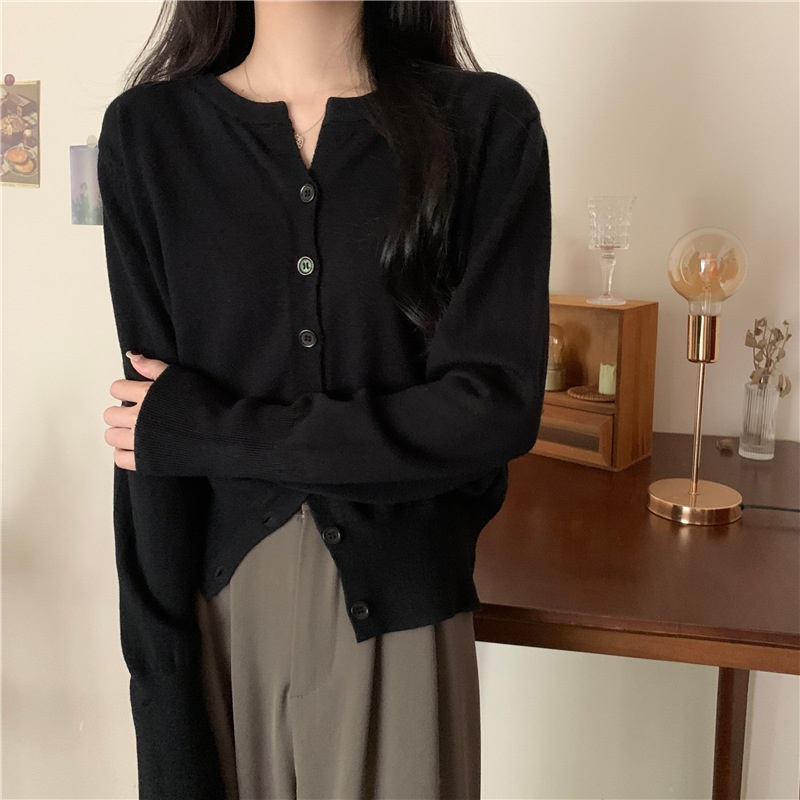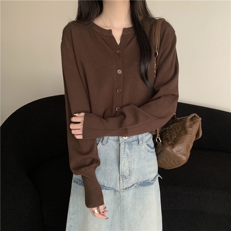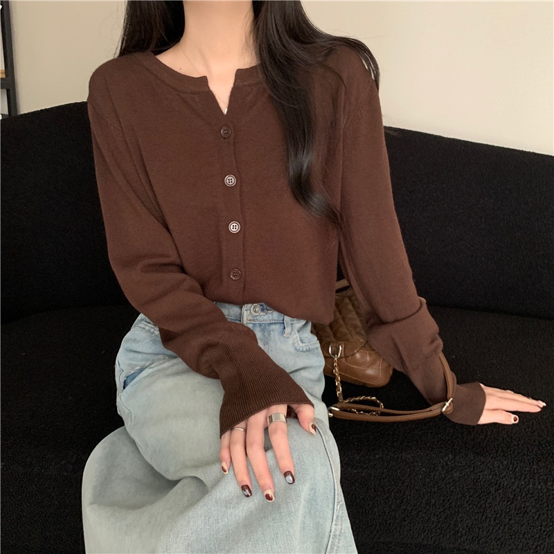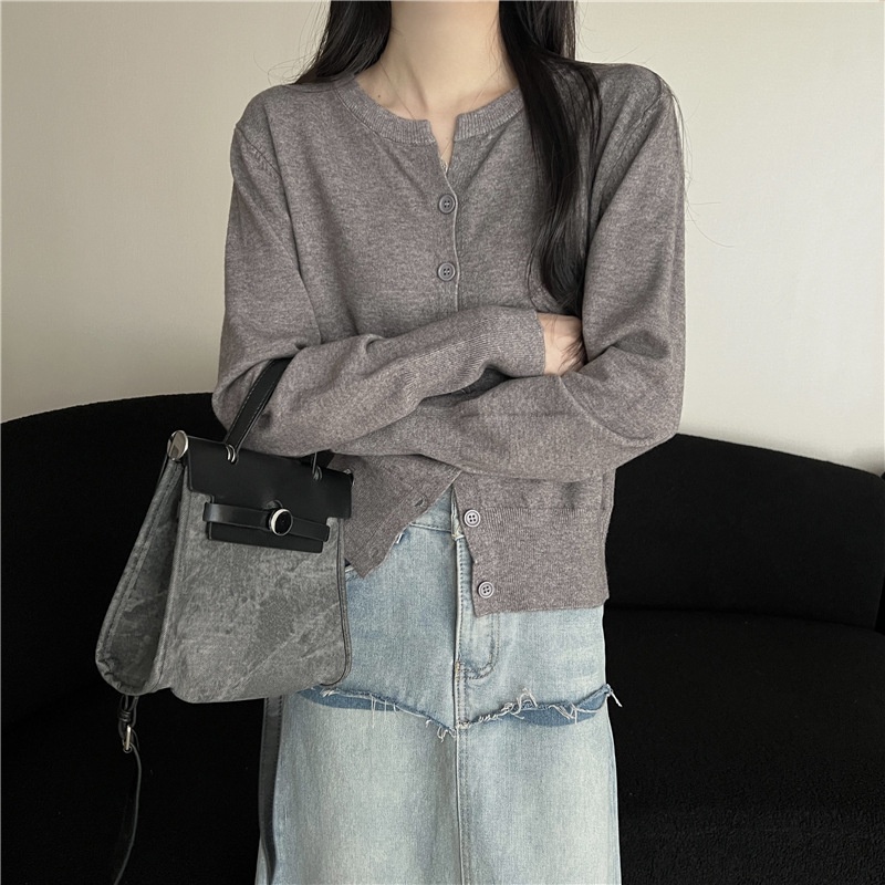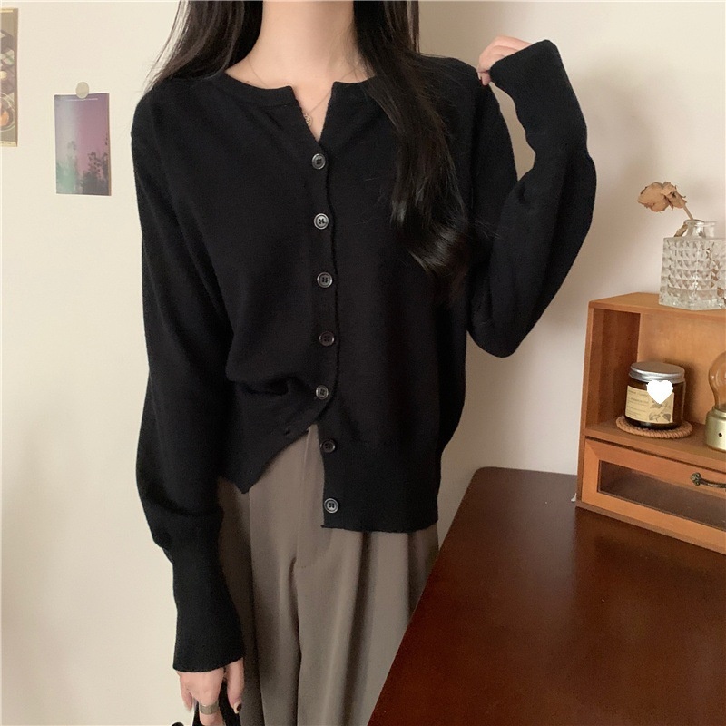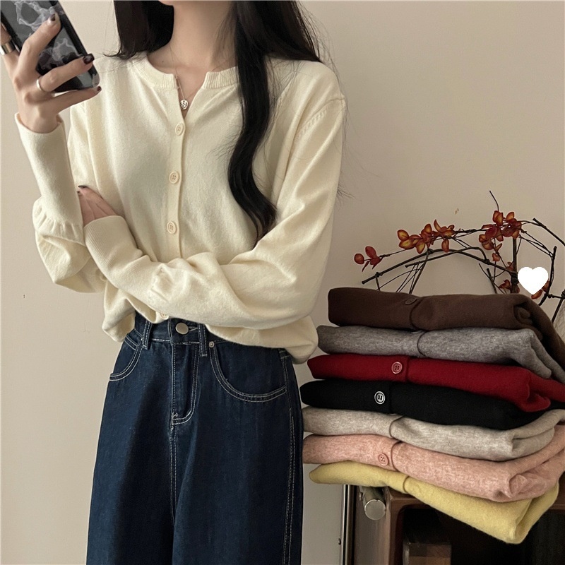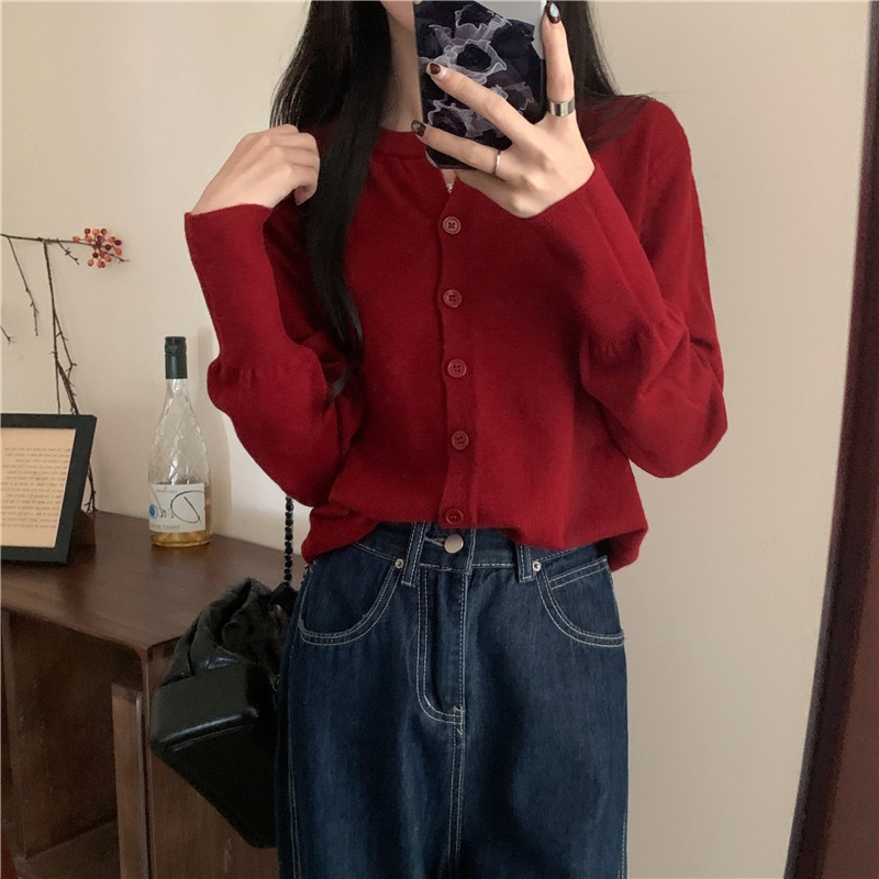 2024春秋季新款圆领甜美清新修身针织开衫外套女毛衣外套短款上衣