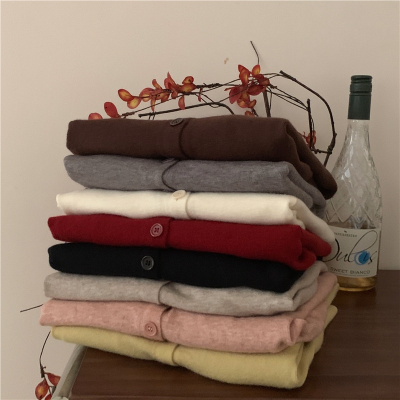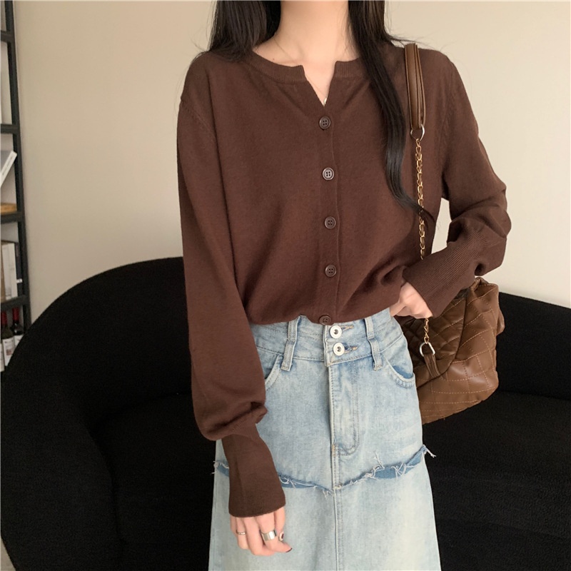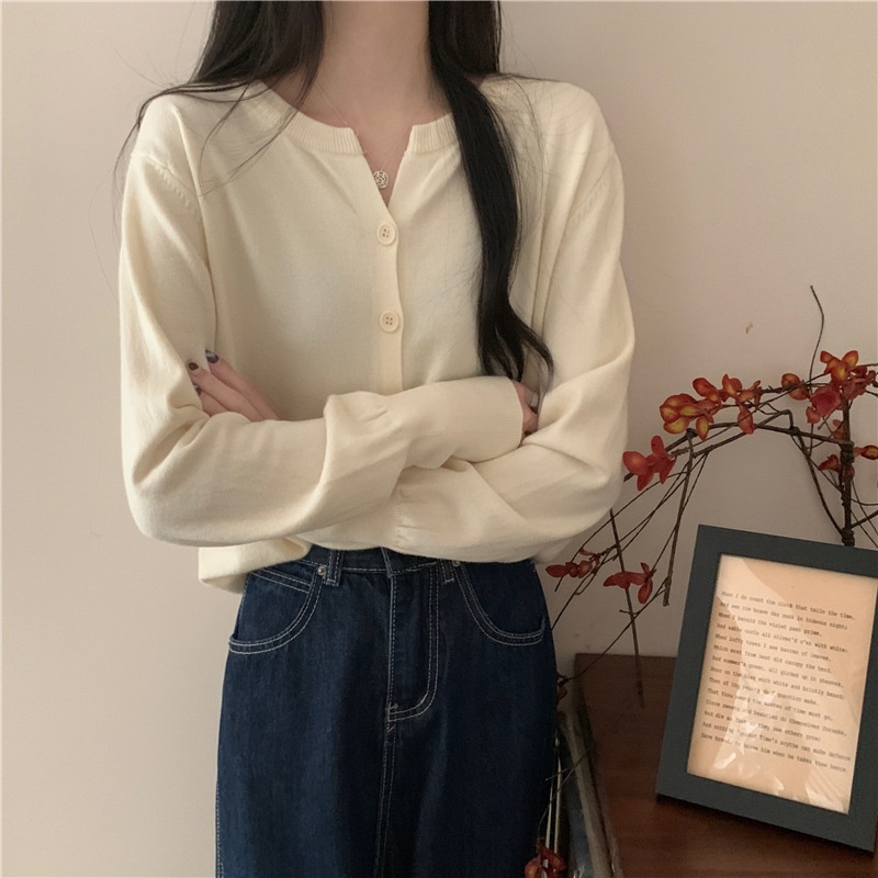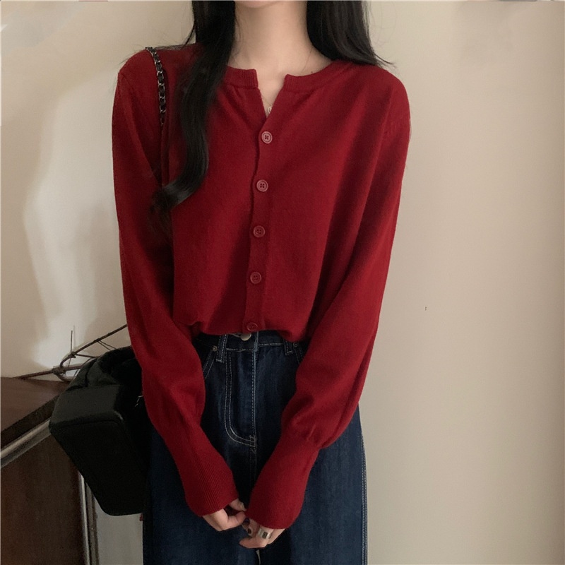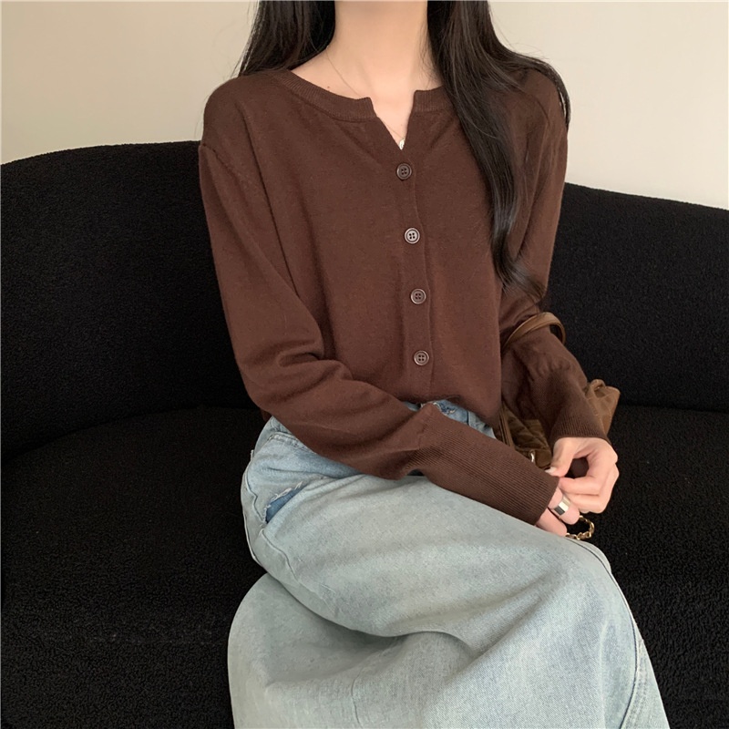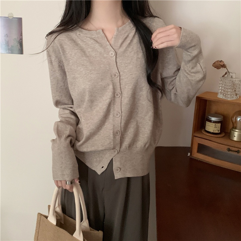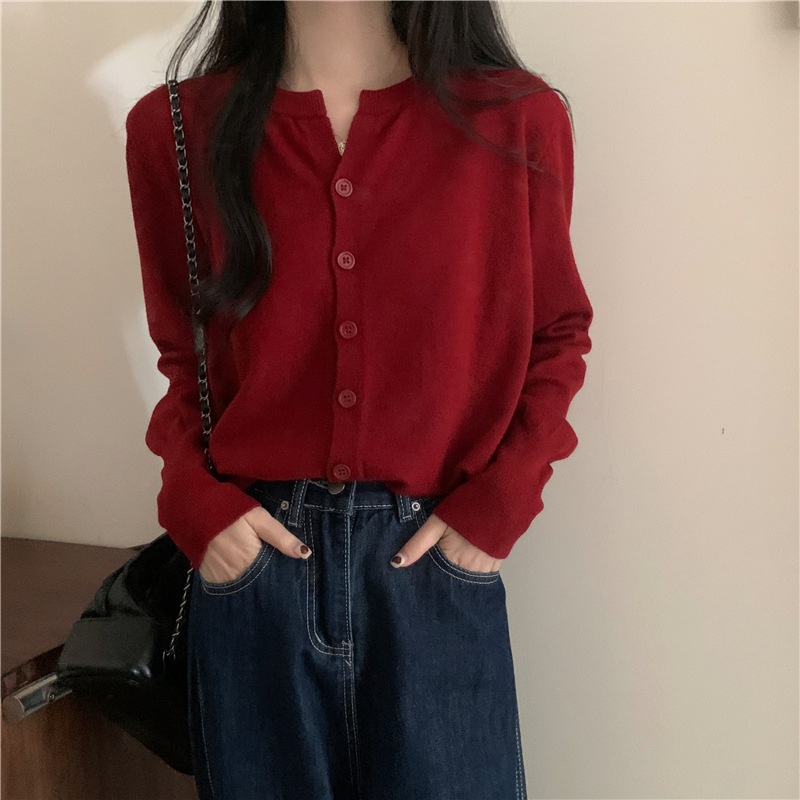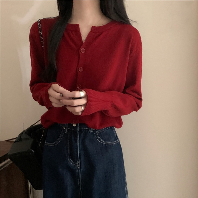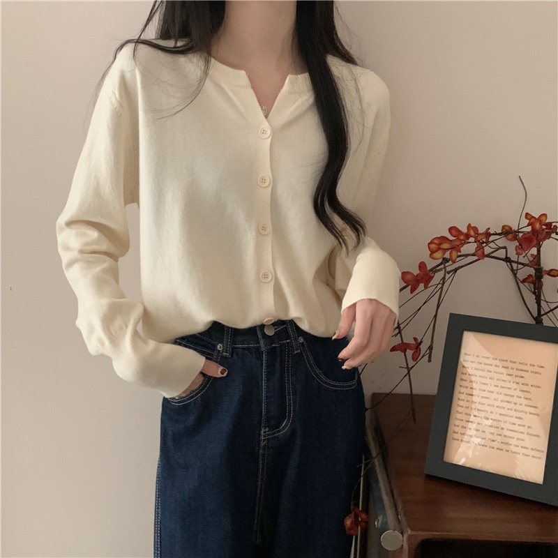 2024春秋季新款圆领甜美清新修身针织开衫外套女毛衣外套短款上衣