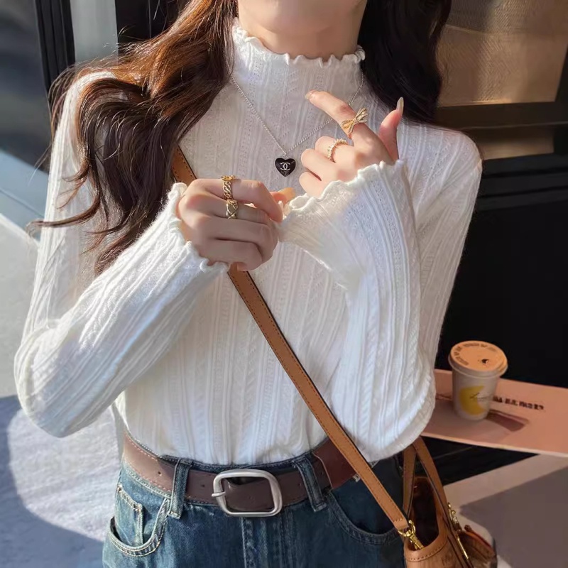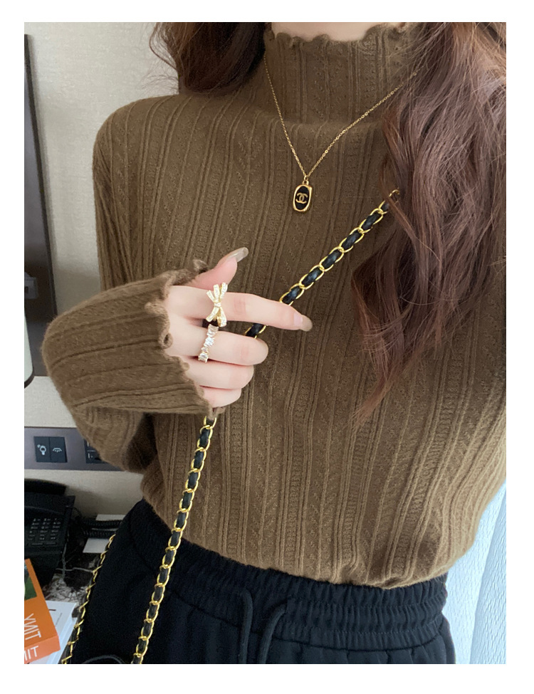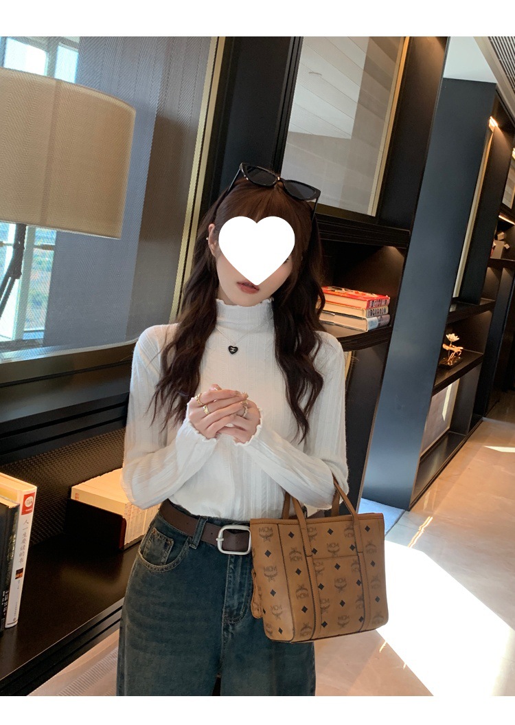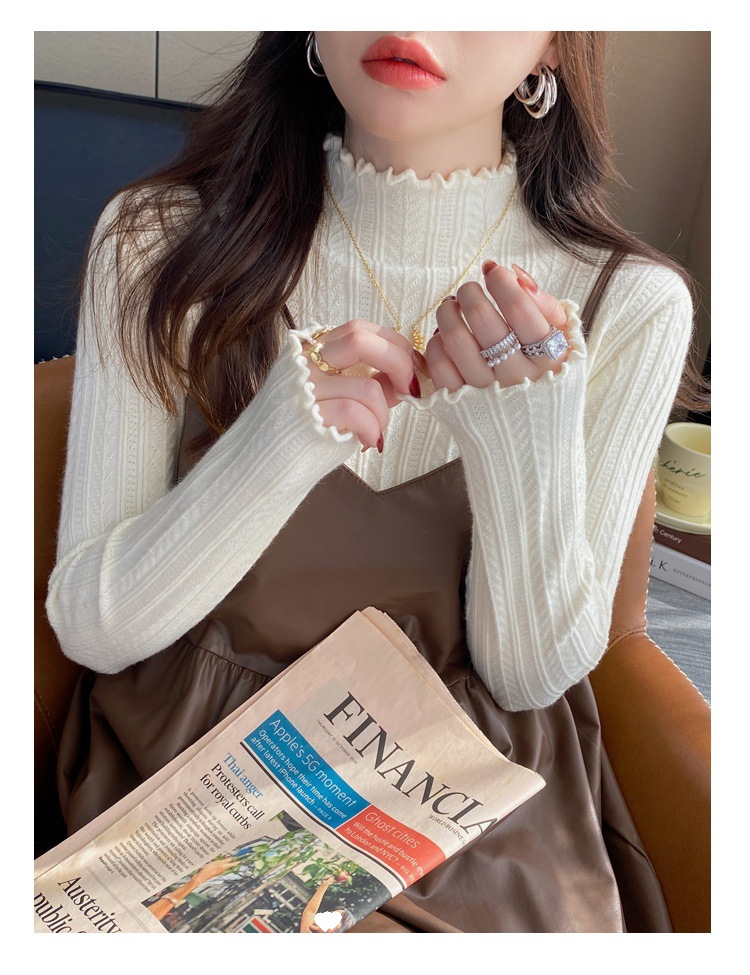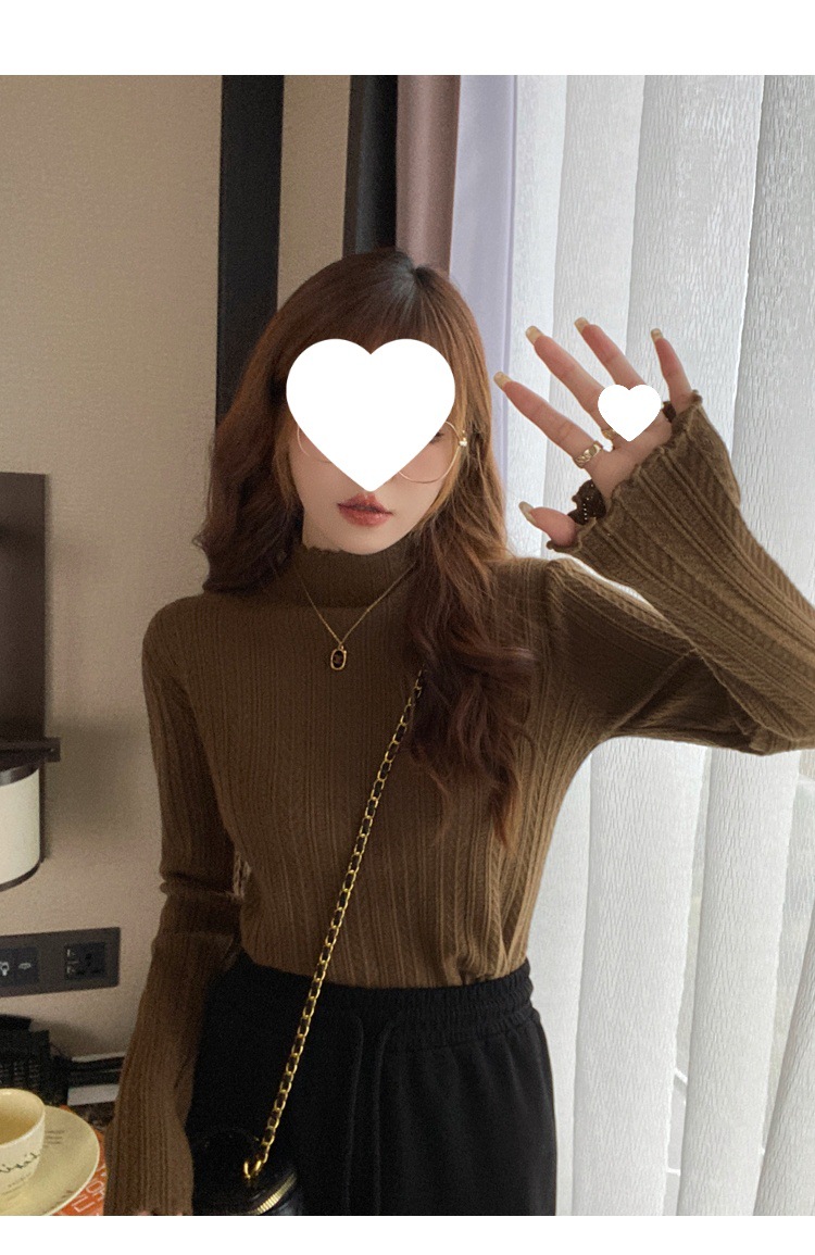 打底衫女2024新款秋冬内搭高级感半高领毛衣木耳边针织衫短款上衣