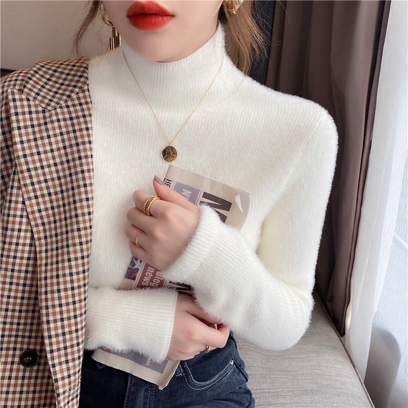 加绒打底毛衣女秋冬2024新款加厚水貂绒半高领打底衫洋气保暖内搭