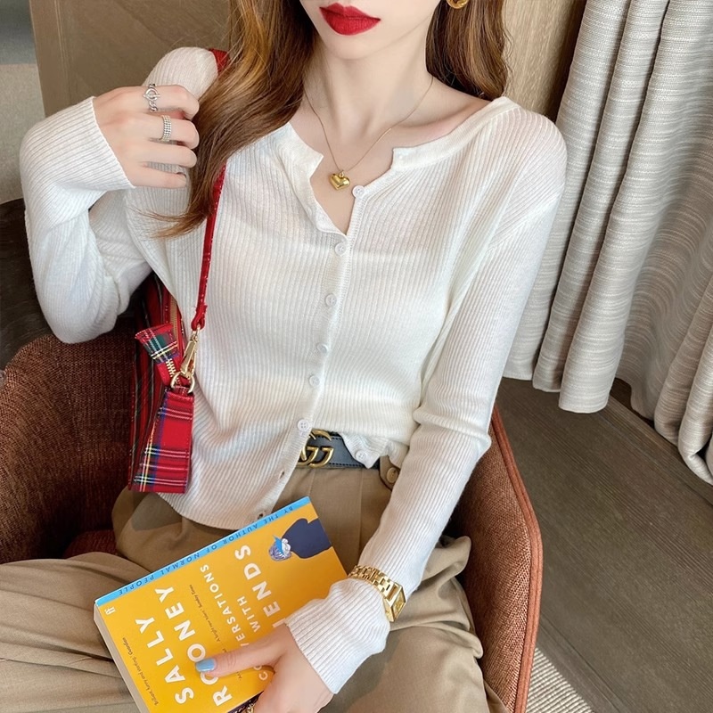 针织衫女短款白色内穿外搭百搭小开衫外套2024秋冬新款保暖上衣女