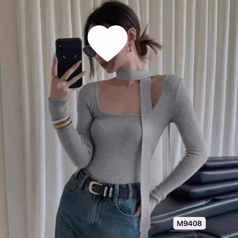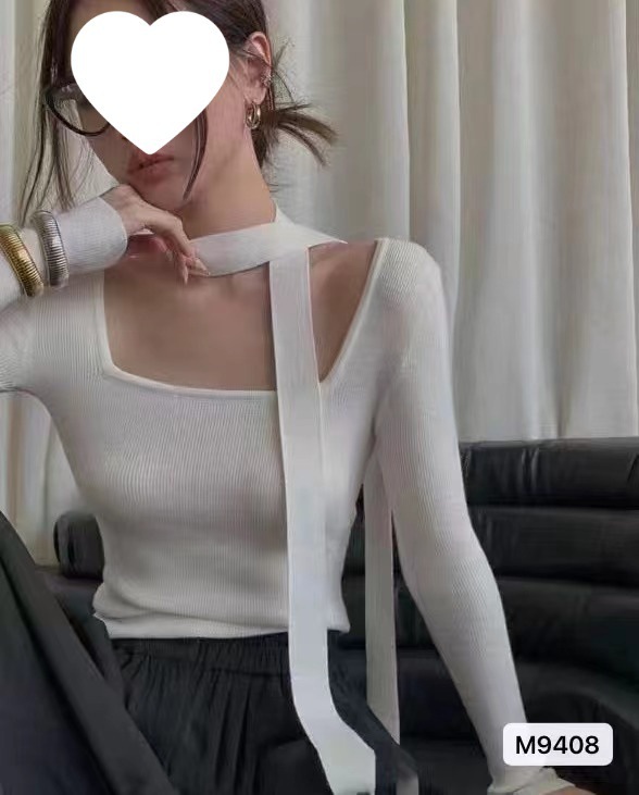 2024秋季新款设计感气质方领挂脖领带显瘦纯色长袖短款上衣女乙鸟