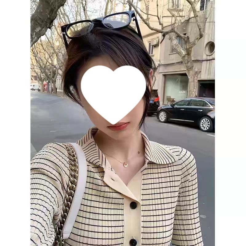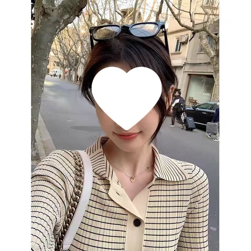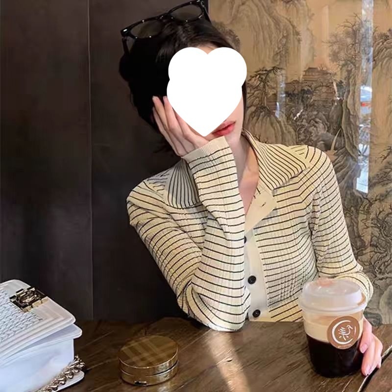 2024春秋新款polo领条纹针织开衫外套女打底衫设计感小众长袖乙鸟