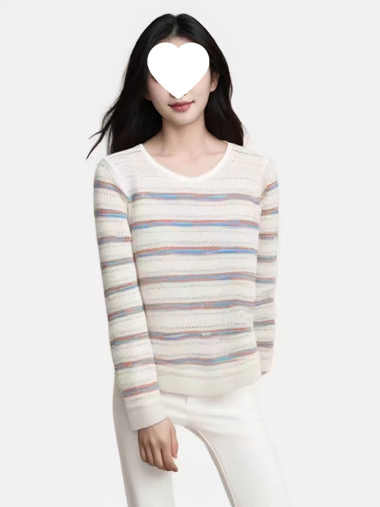 2024秋新款设计感慵懒风宽松减龄显瘦波浪条纹套头针织衫毛衣乙鸟