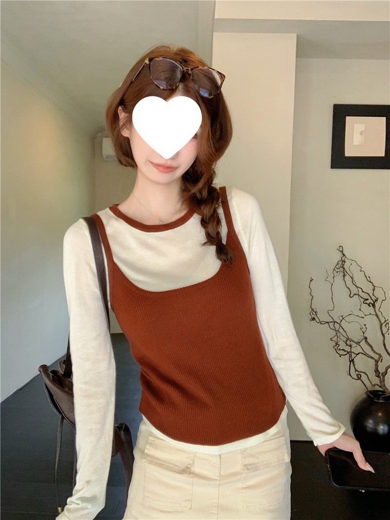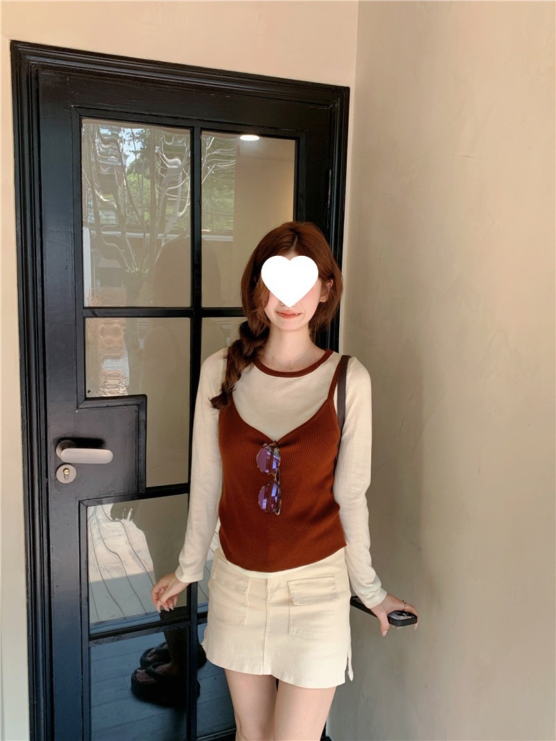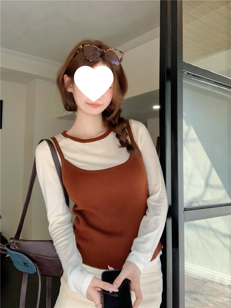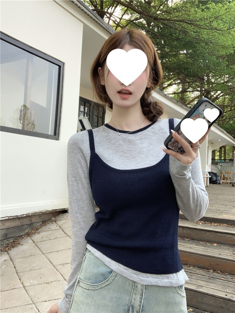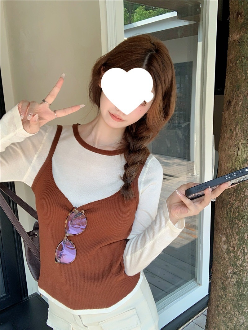 韩版网红辣妹穿搭上衣马甲纯欲气质小个子拼接棋盘针织背心上衣女