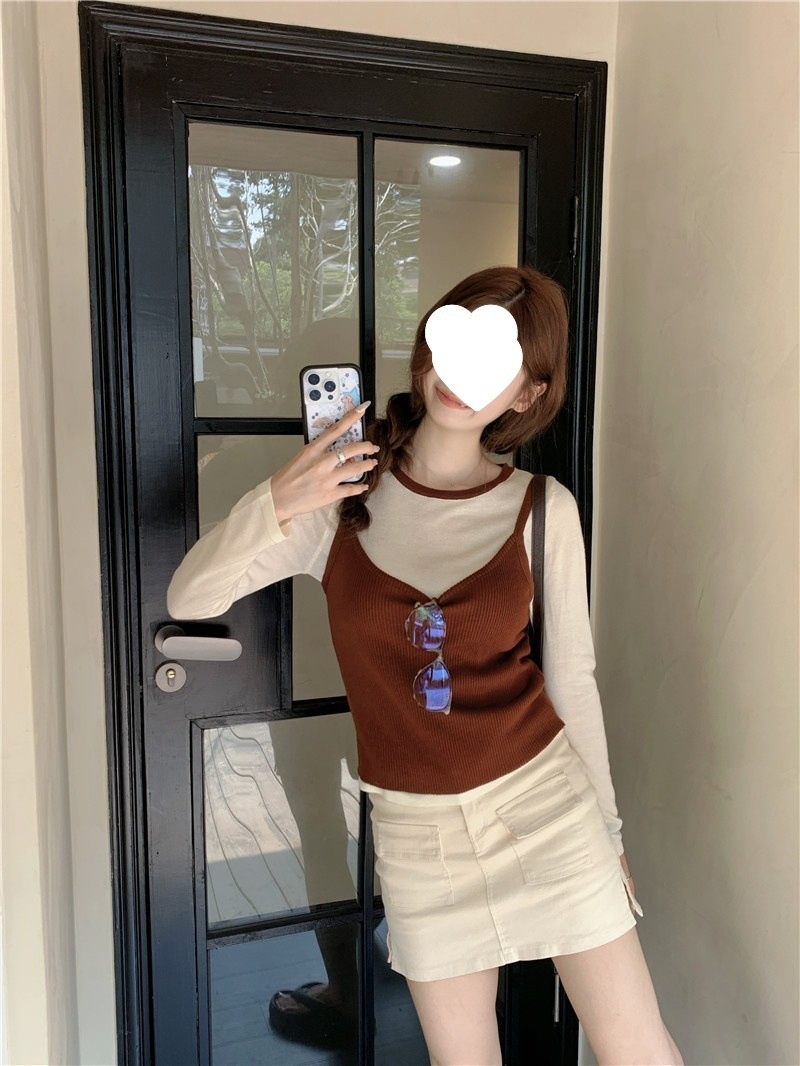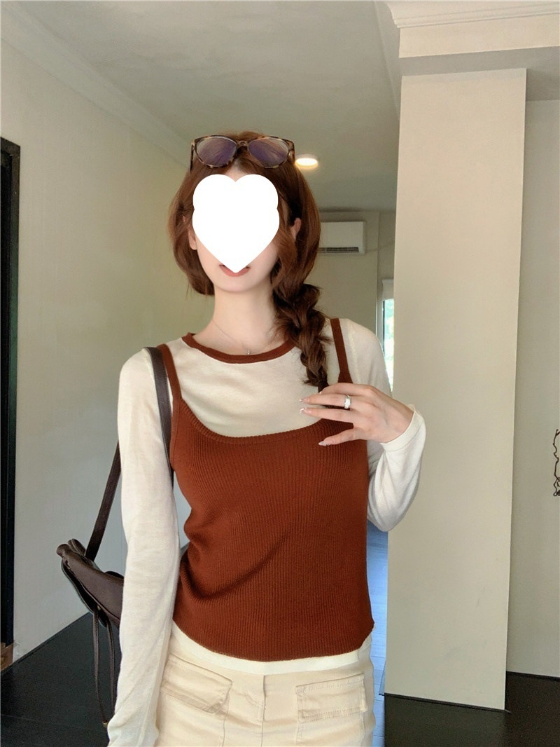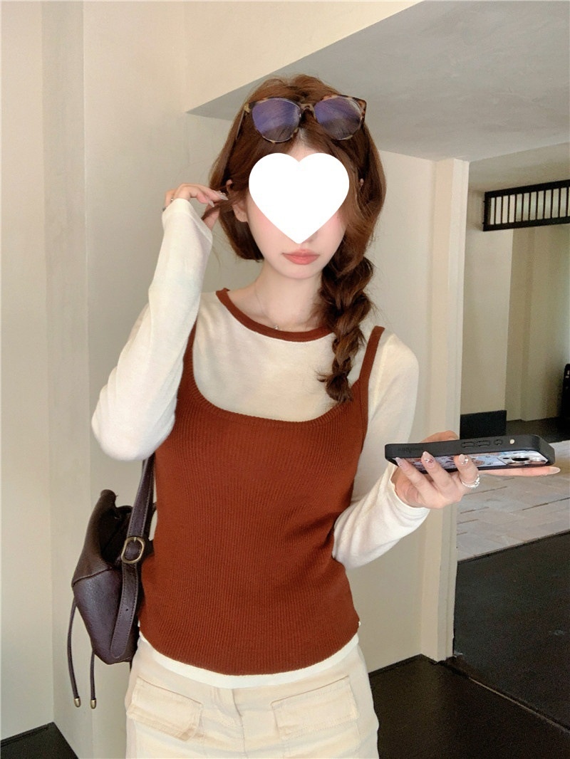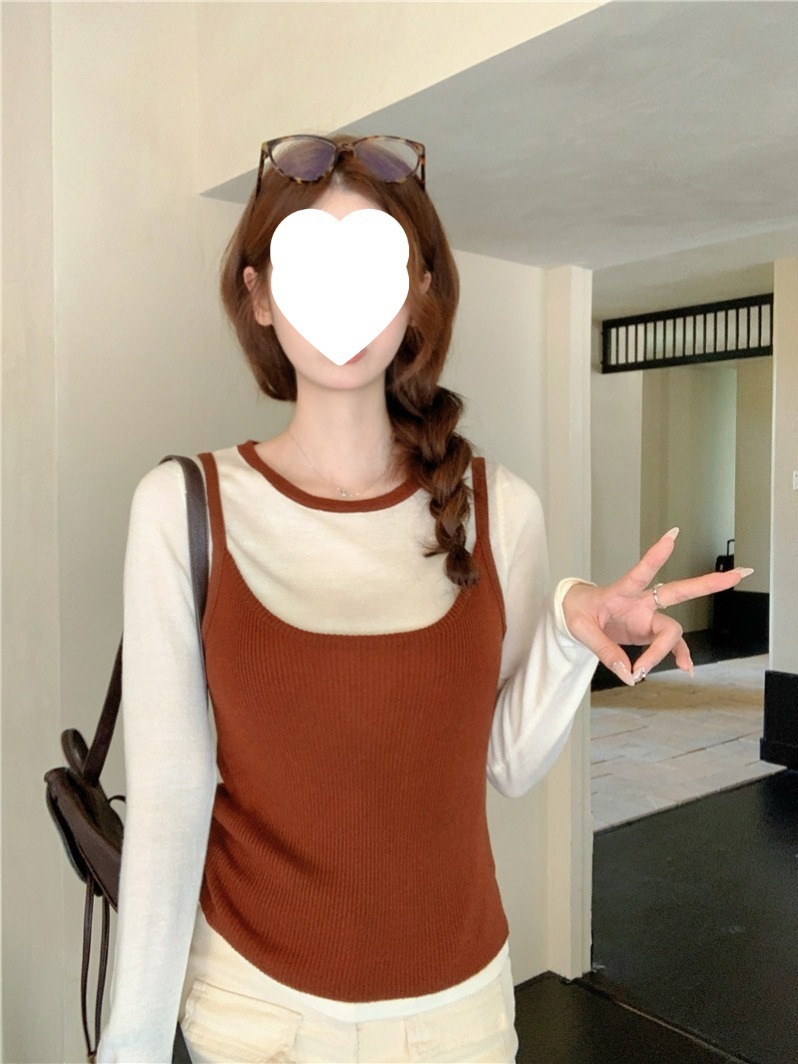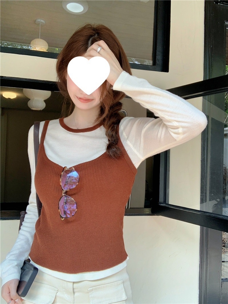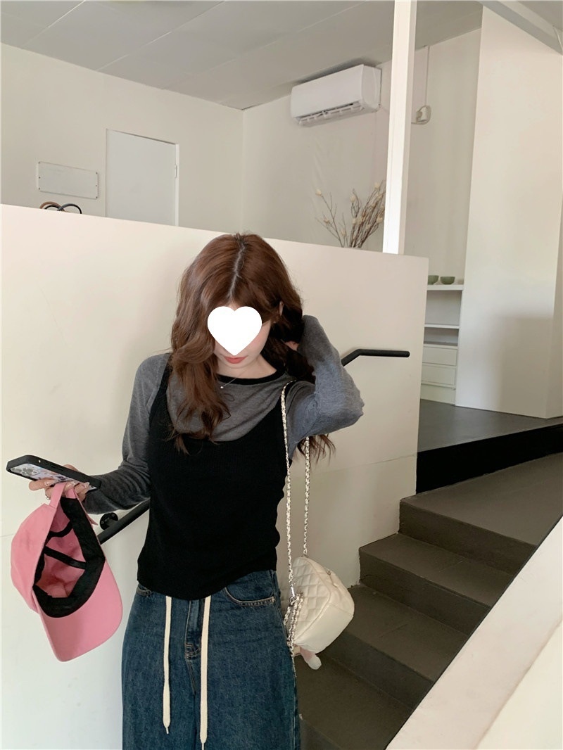 韩版网红辣妹穿搭上衣马甲纯欲气质小个子拼接棋盘针织背心上衣女