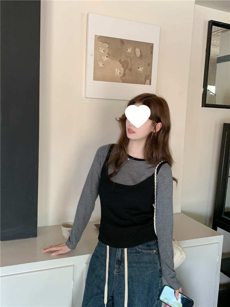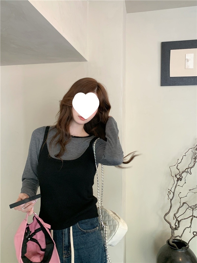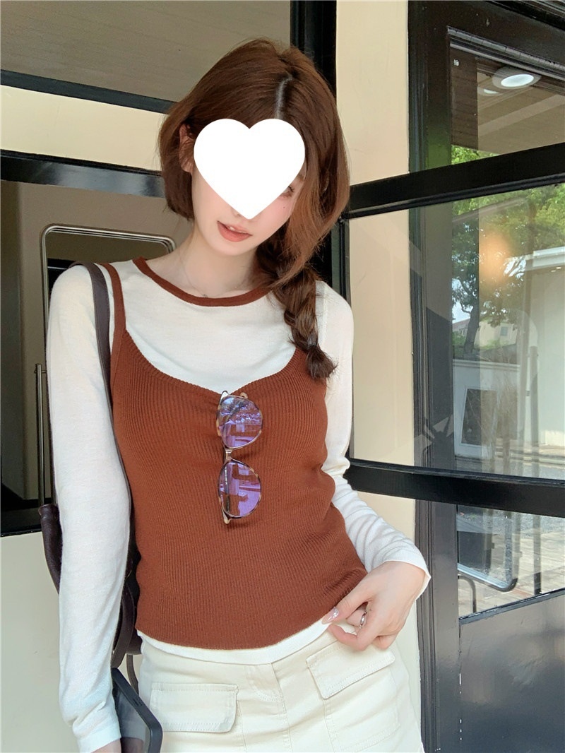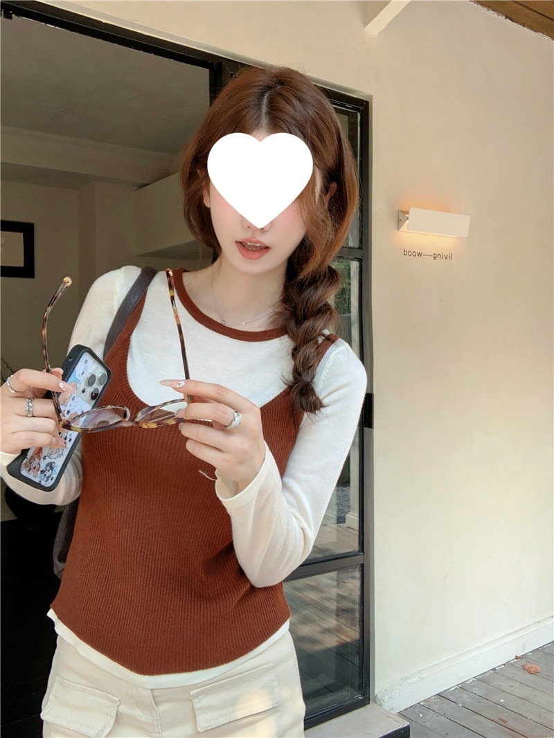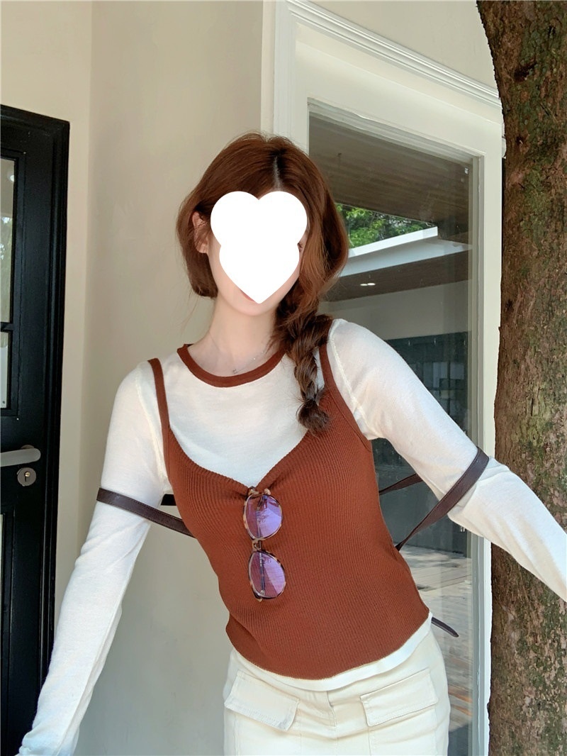 韩版网红辣妹穿搭上衣马甲纯欲气质小个子拼接棋盘针织背心上衣女