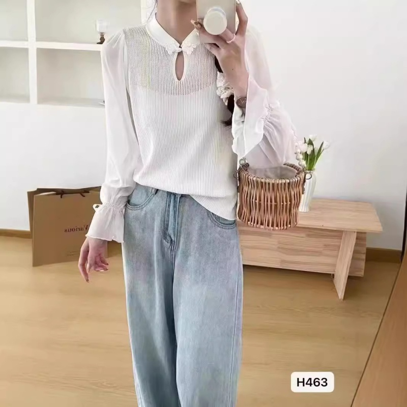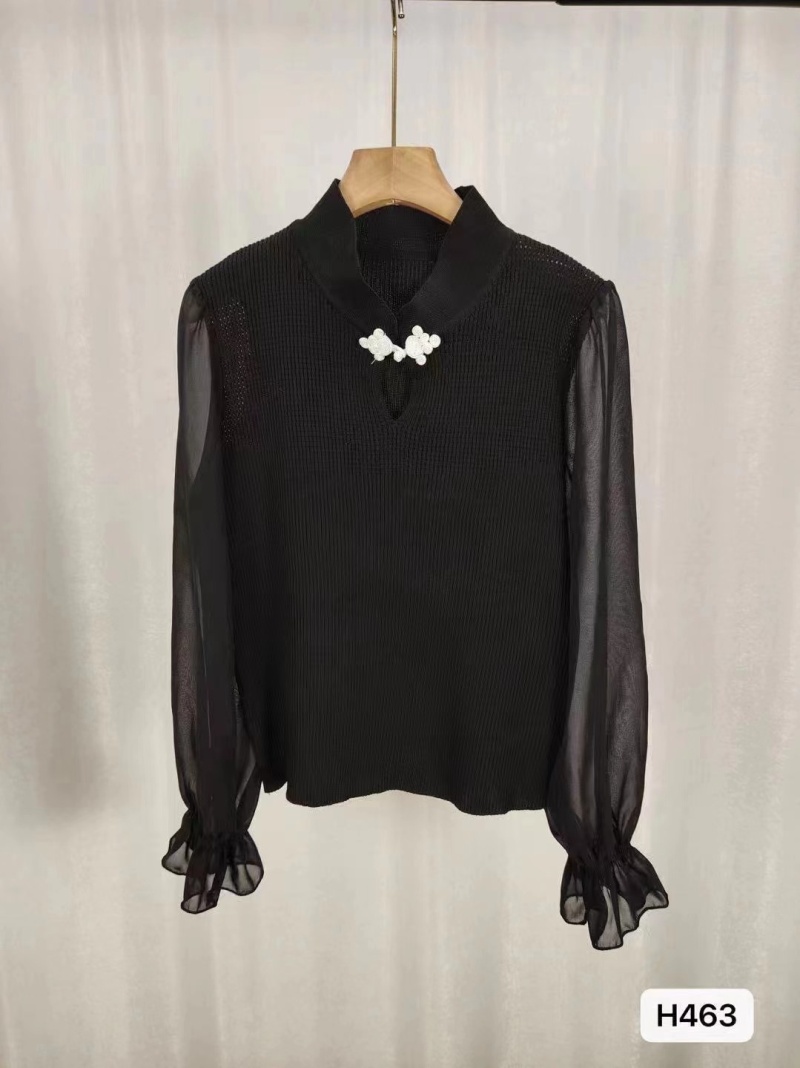 2024秋季新款新中式镂空立领针织衫别致气质国风长袖短款上衣女潮