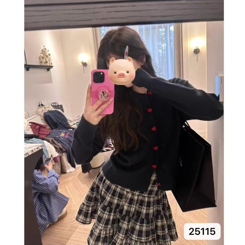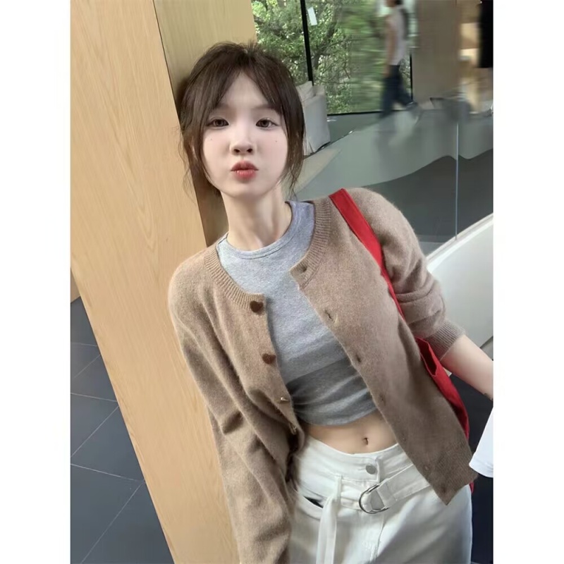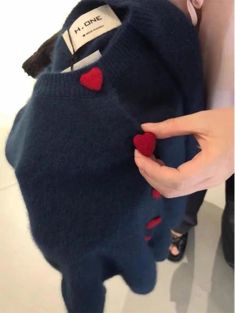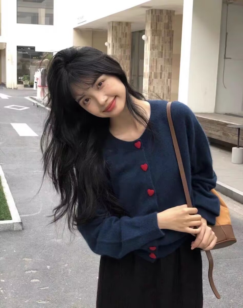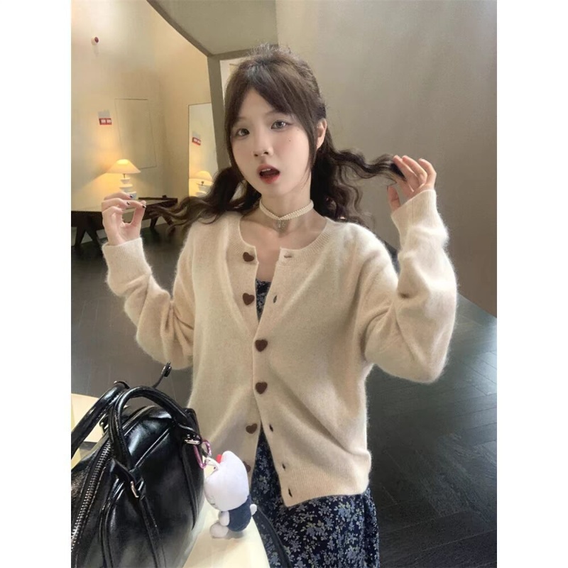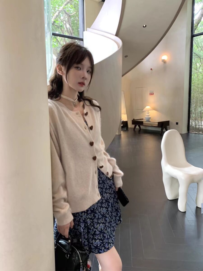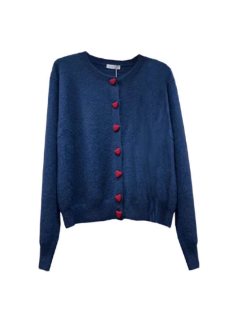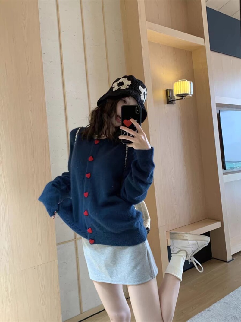 设计感爱心纽扣针织衫毛衣女早秋慵懒风显瘦开衫外套蓝色韩系上衣