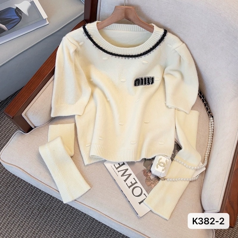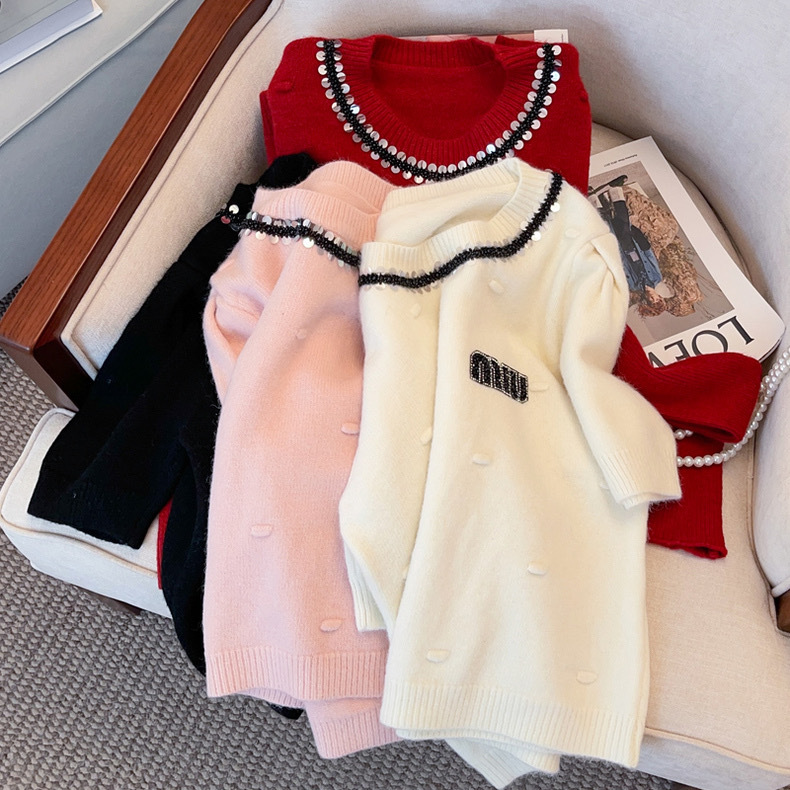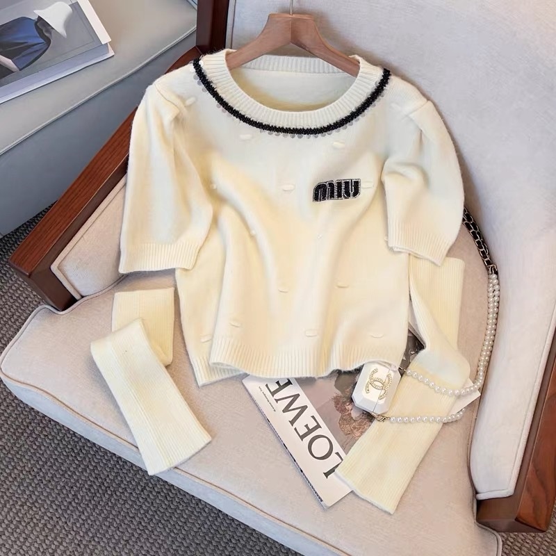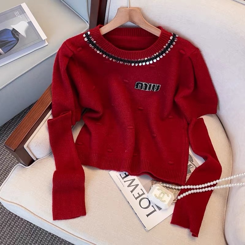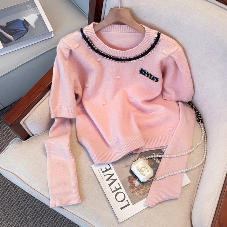 2024春秋季韩系针织衫短款毛衣烫钻甜美百搭气质简约短款上衣女潮