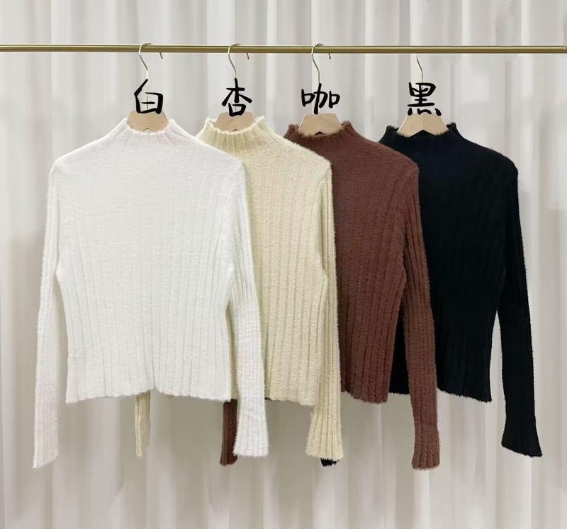 软糯温柔毛衣女秋冬水貂绒针织半高领加绒加厚打底衫