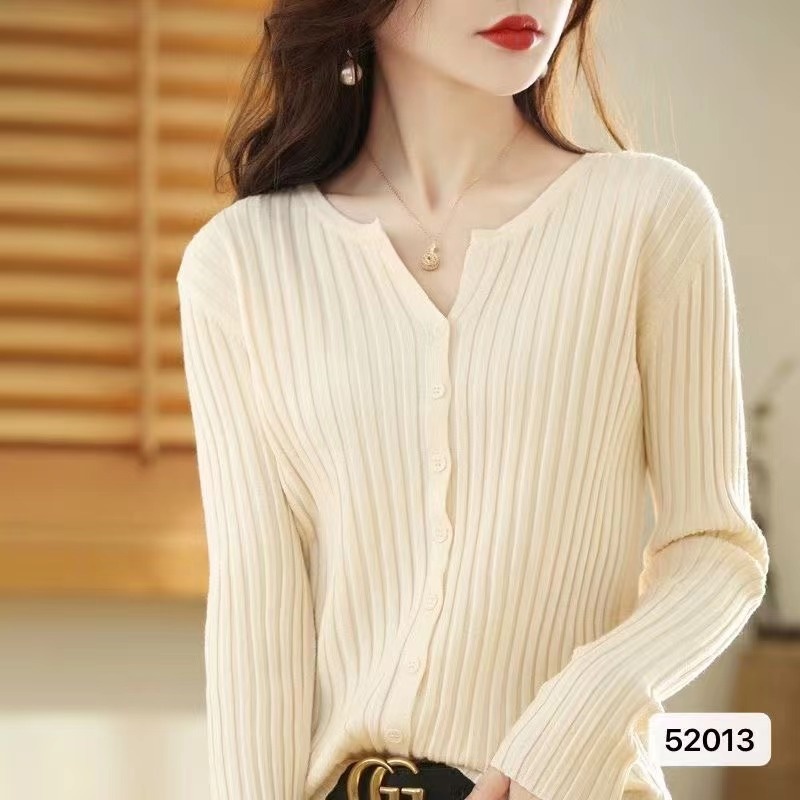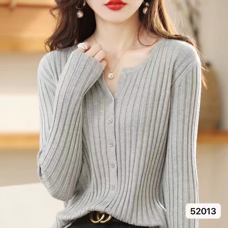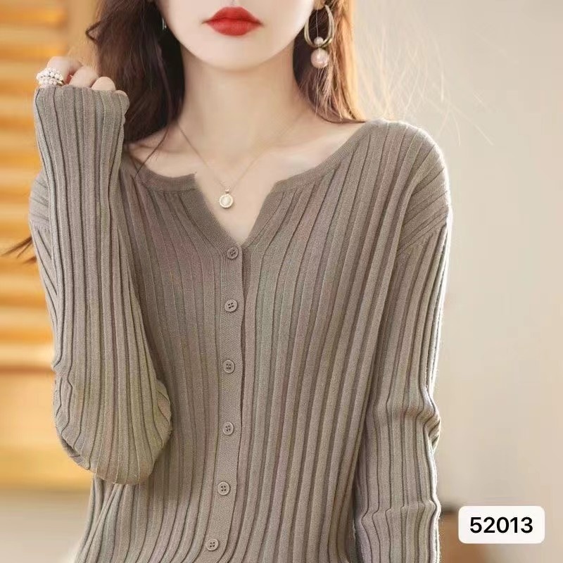 2024秋冬坑条修身外穿百搭休闲羊毛开衫外套女毛衣女针织打底衫潮