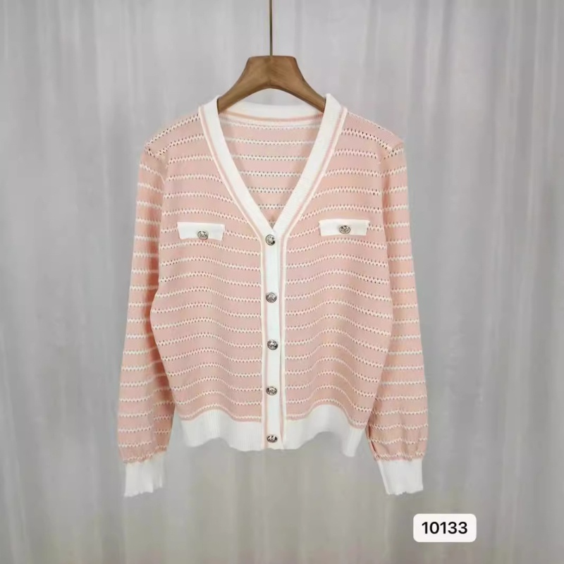 2024年春秋季新款甜美小香风V领条纹镂空宽松长袖外套百搭上衣女