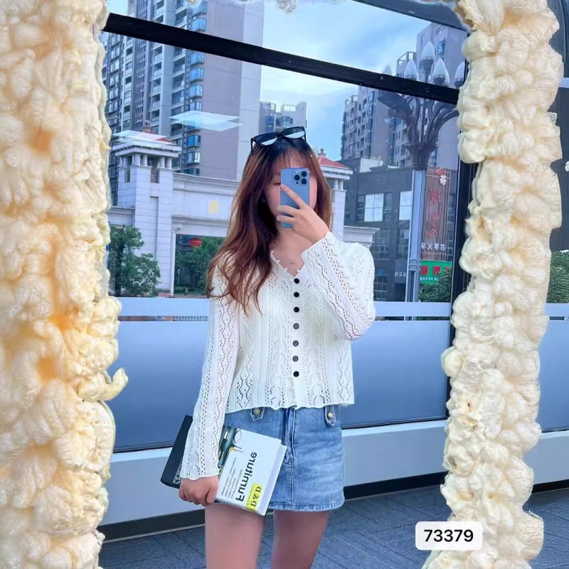 2024秋季新款韩版百搭显瘦修身镂空防晒v领 针织长袖宽松开衫外套
