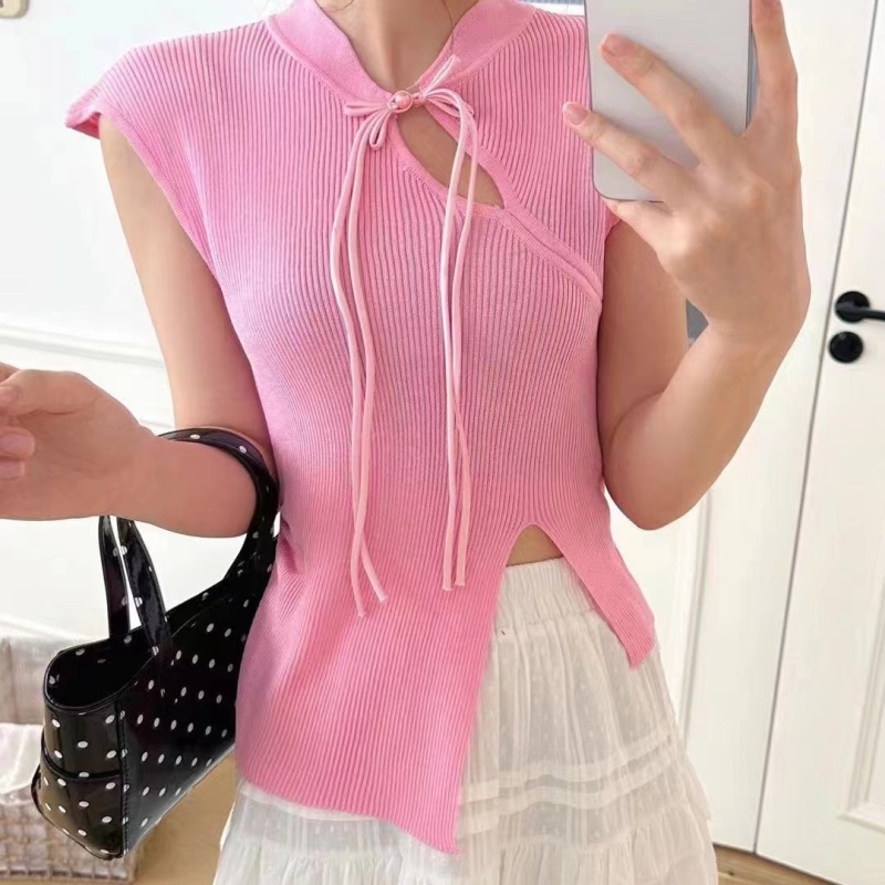 夏季新款针织吊带背心短款上衣镂空无袖设计感衫辣妹性感外穿内搭