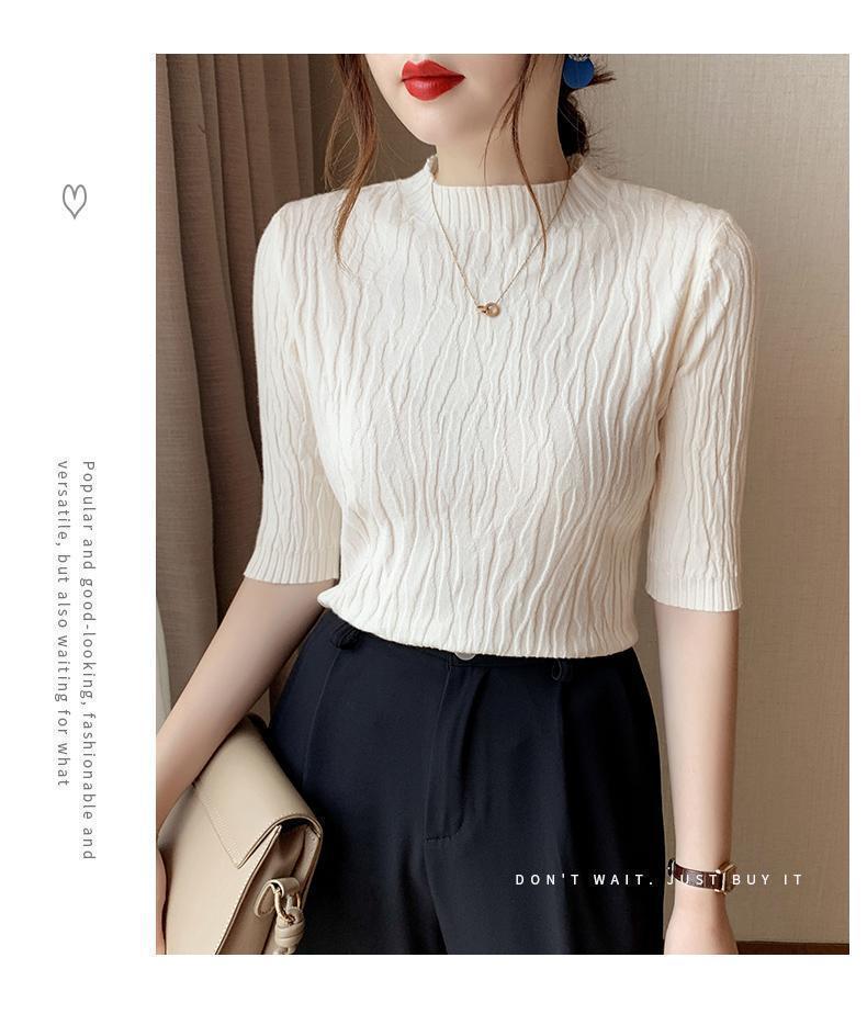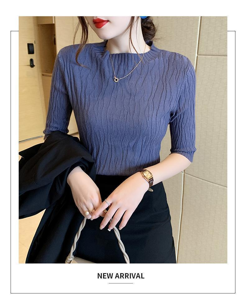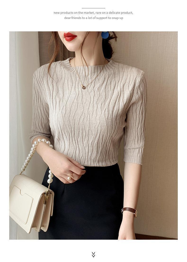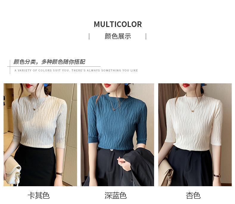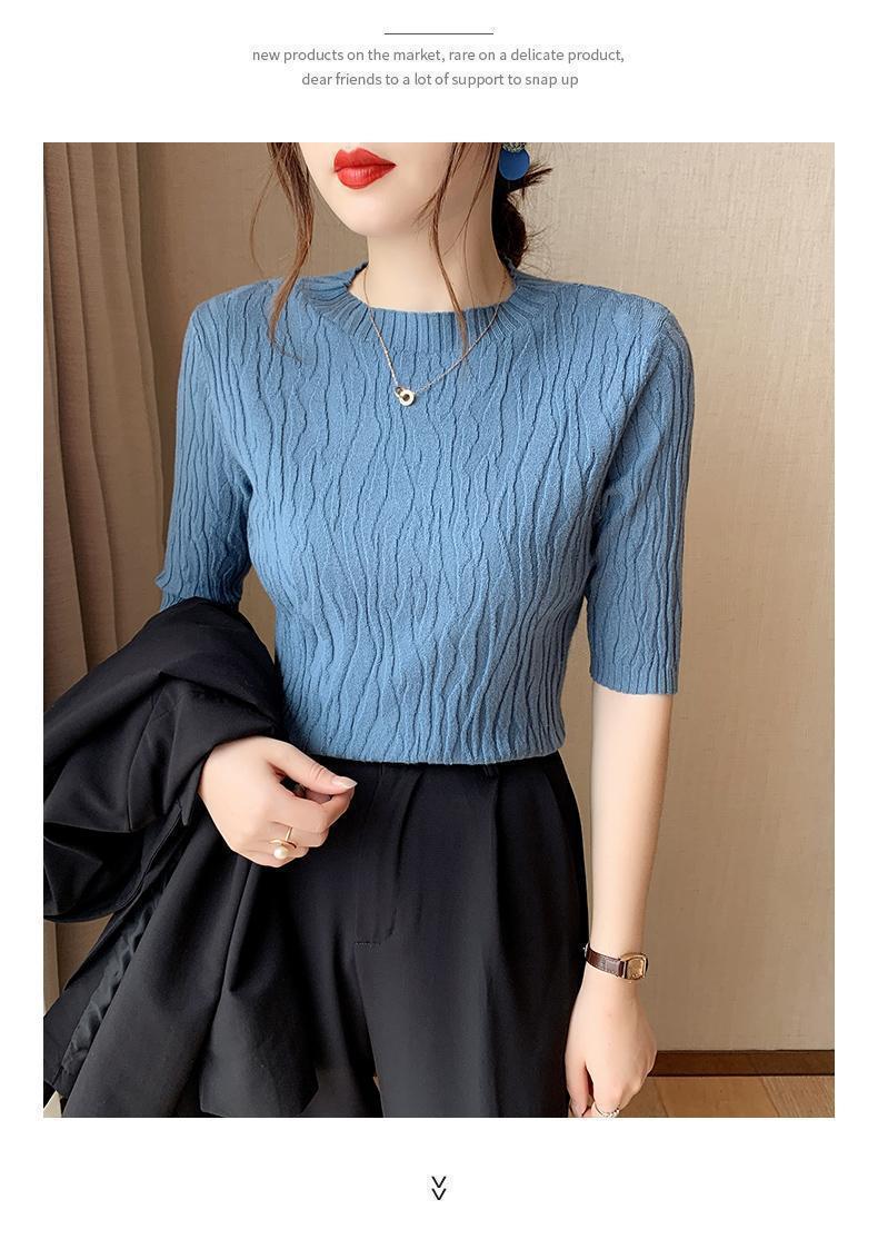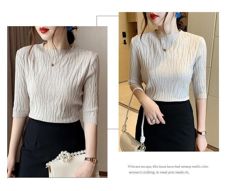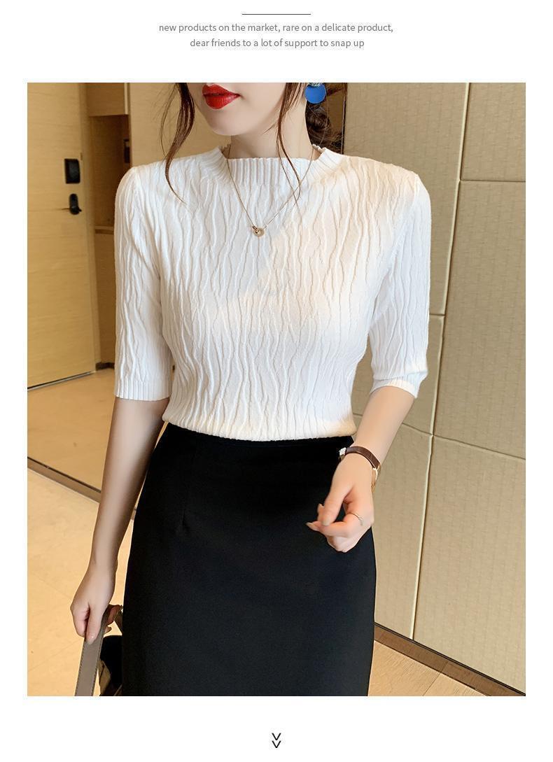新款洋气圆领打底衫女薄款2023年春夏内搭短款针织衫毛衣白色上衣
