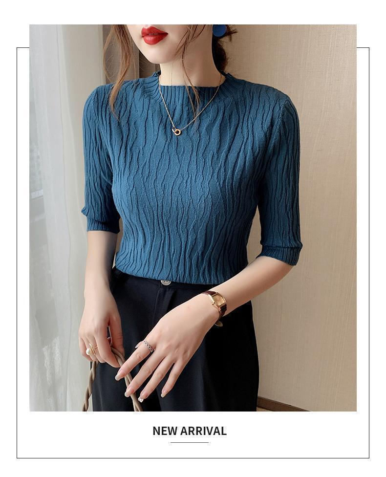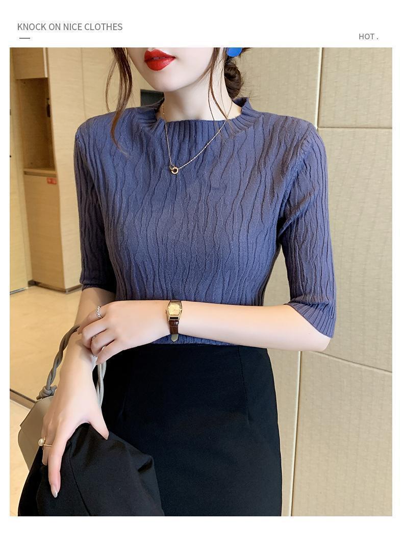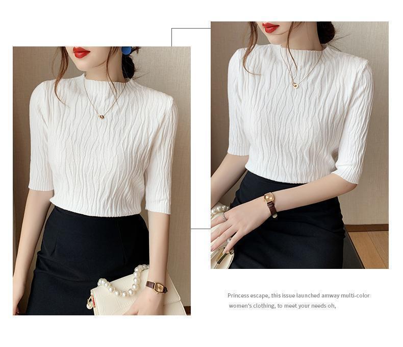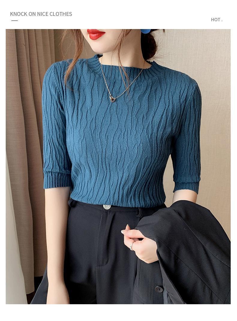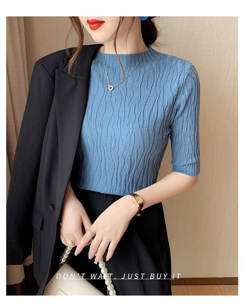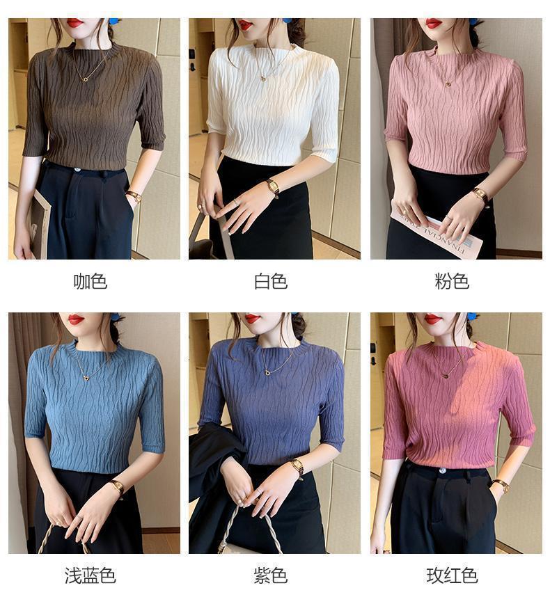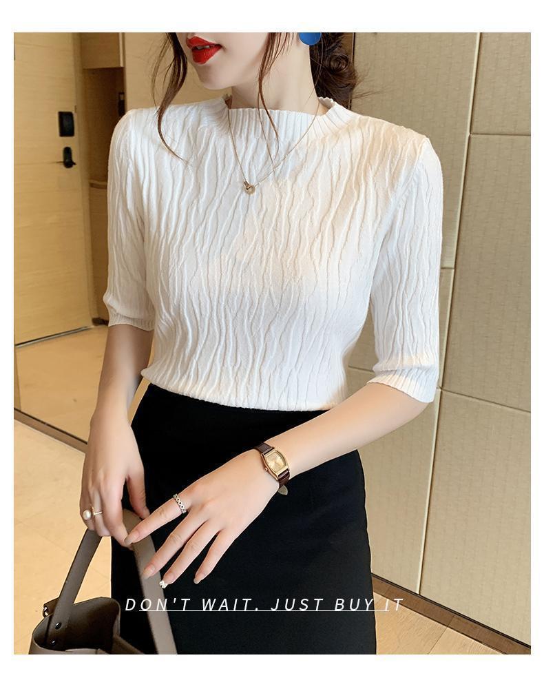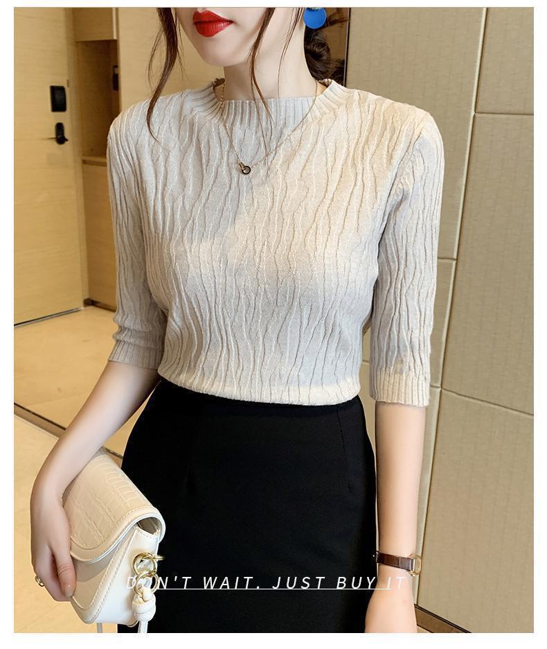 新款洋气圆领打底衫女薄款2023年春夏内搭短款针织衫毛衣白色上衣