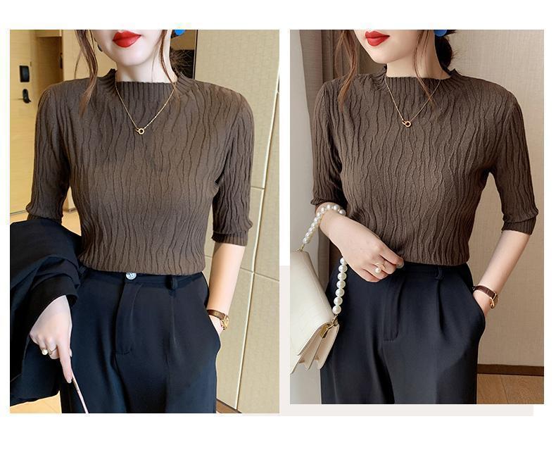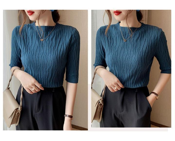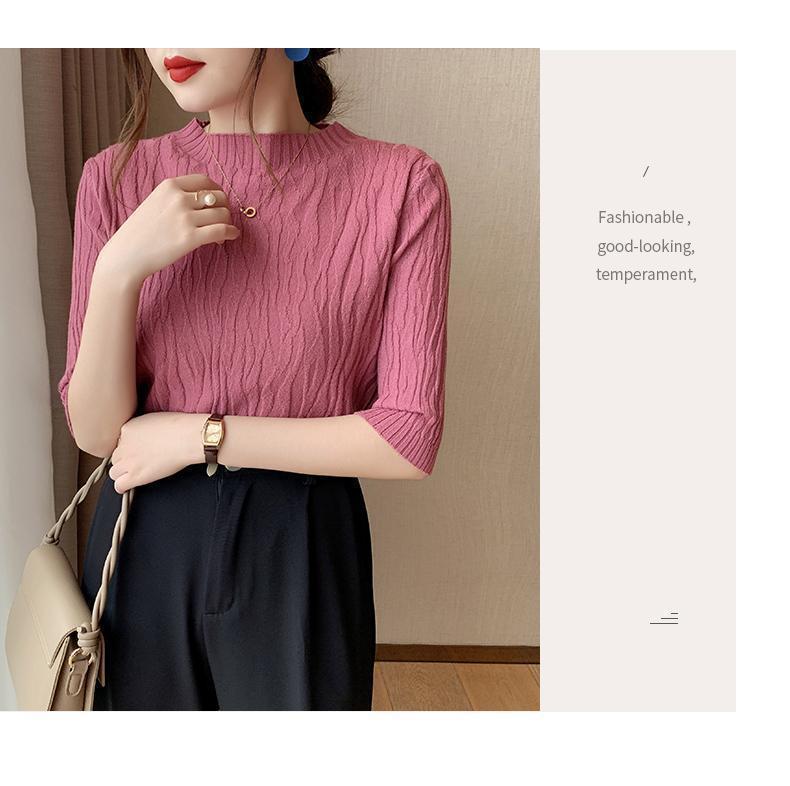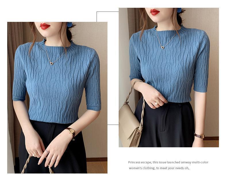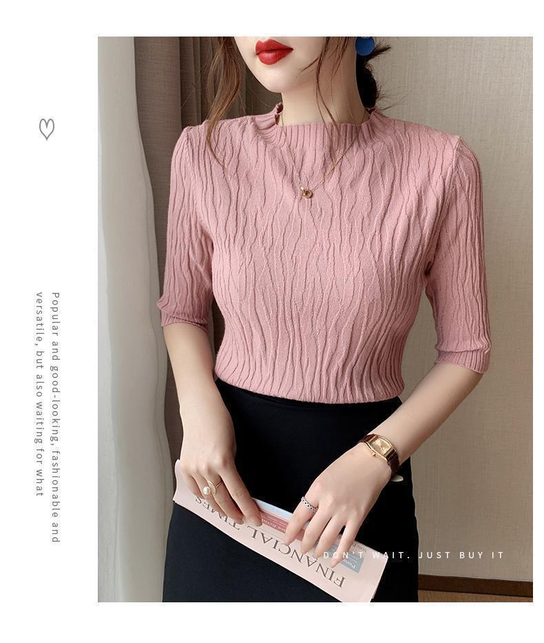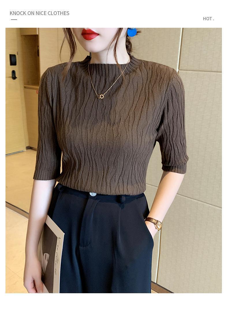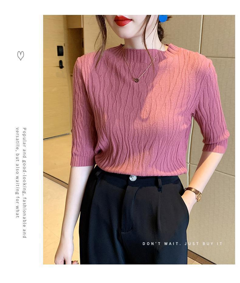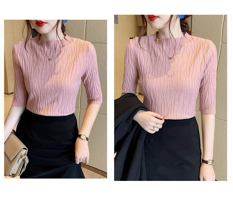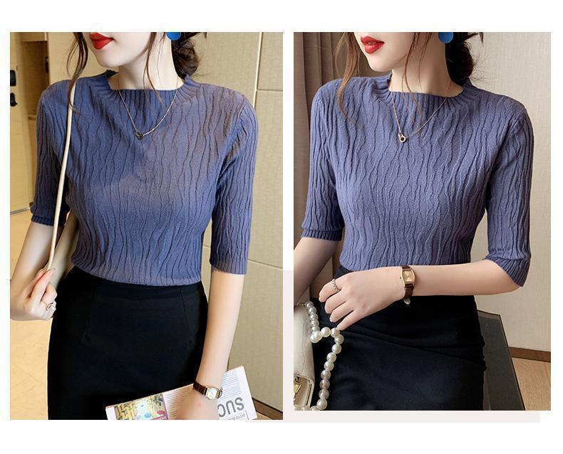 新款洋气圆领打底衫女薄款2023年春夏内搭短款针织衫毛衣白色上衣