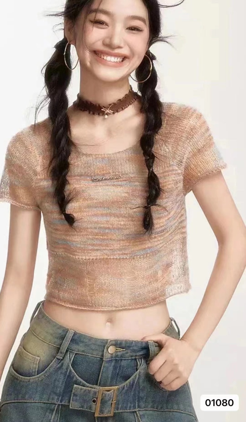 夏季短款纯色法式针织薄款挂脖吊带性感辣妹外穿露背加工定制上衣