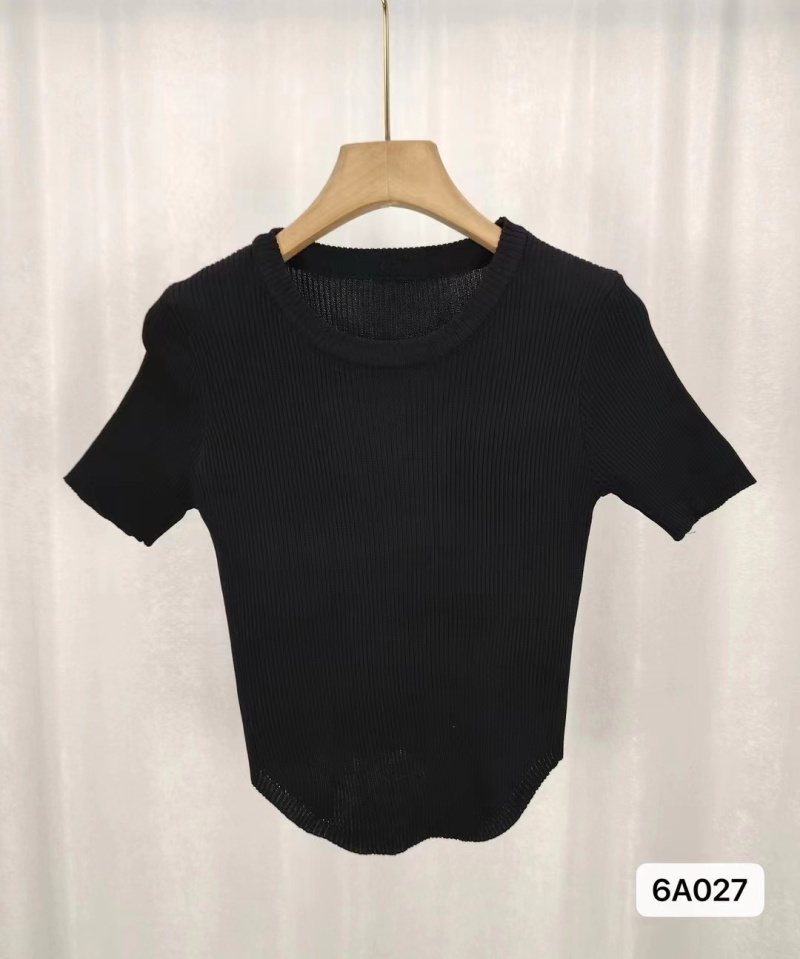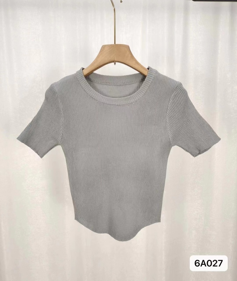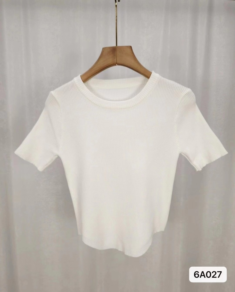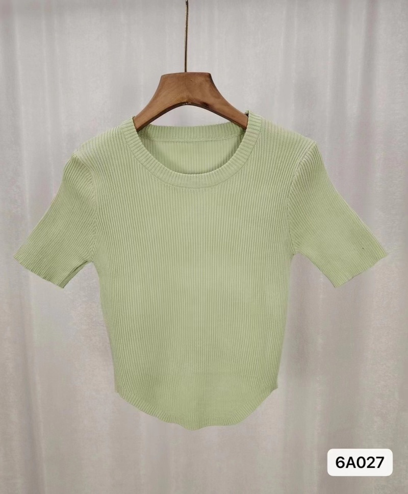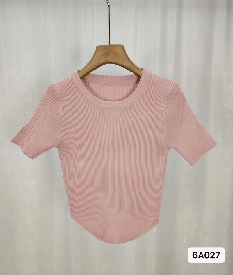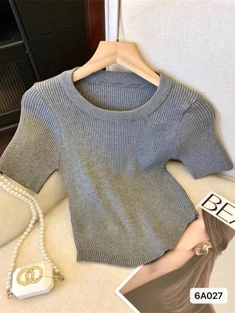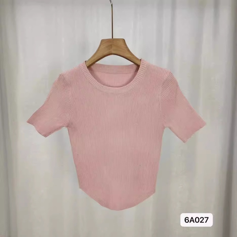 短袖冰丝针织衫女夏季2024新款设计感显瘦正肩短款粉色修身上衣