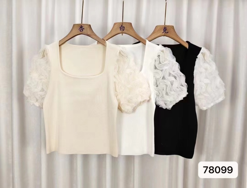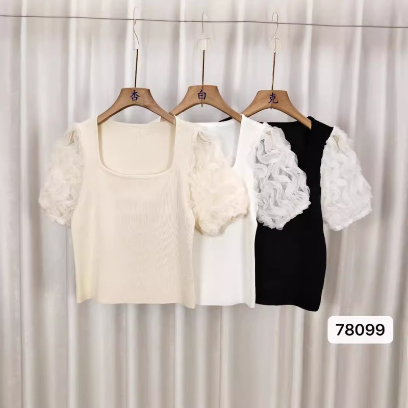 2024年夏季新款韩版设计感泡泡袖洋气方领衬衫女小众修身百搭上衣